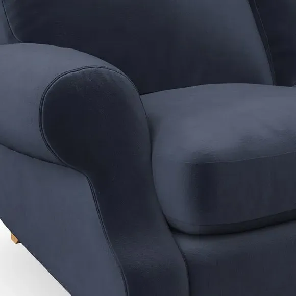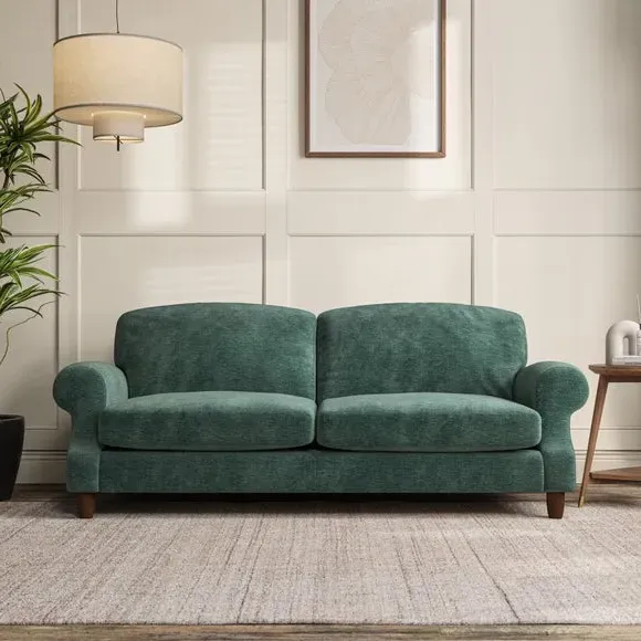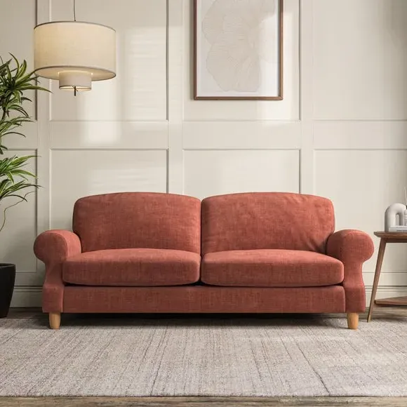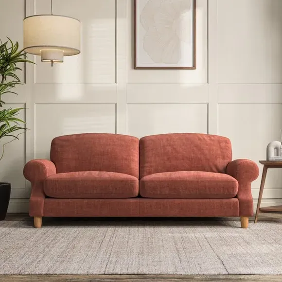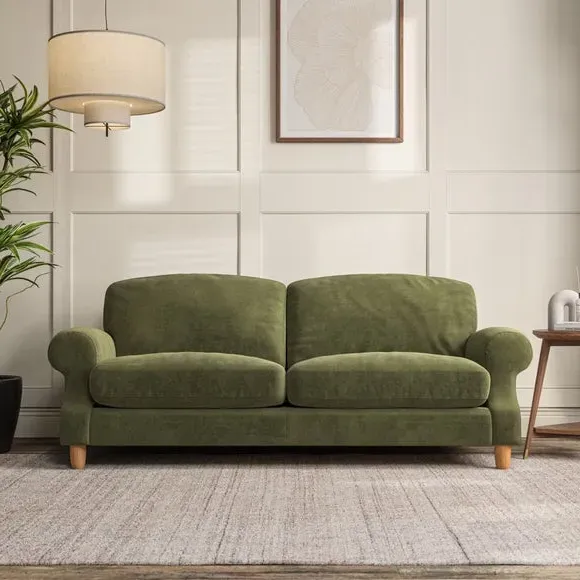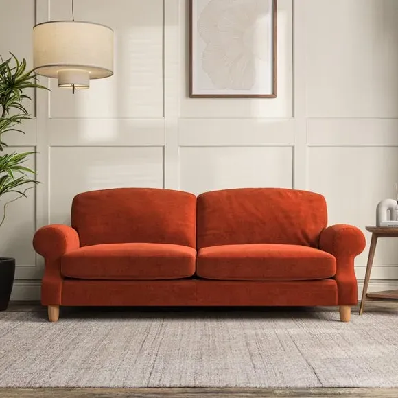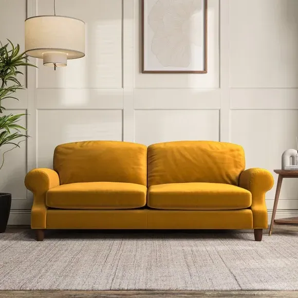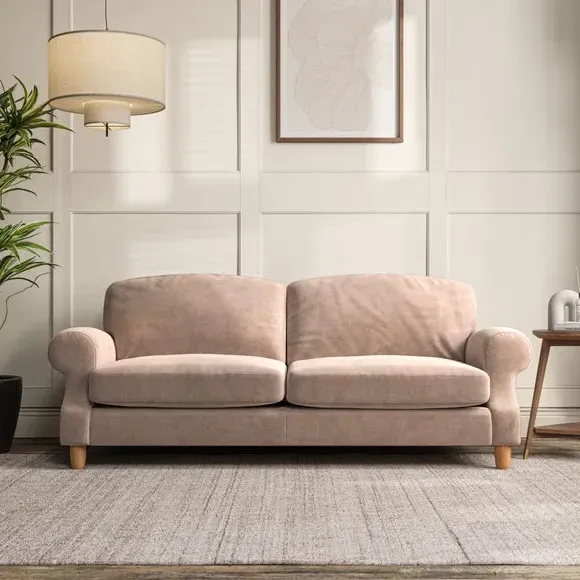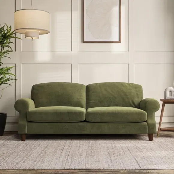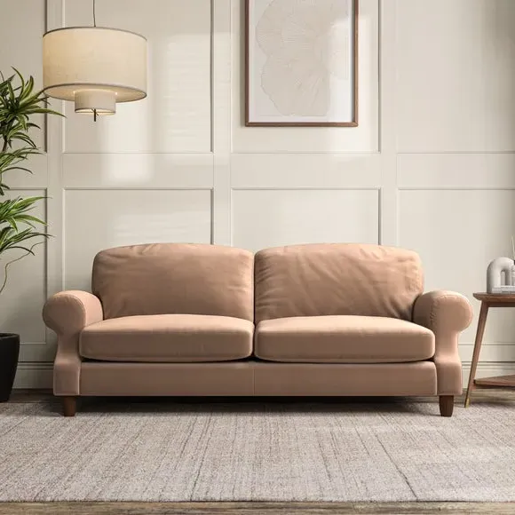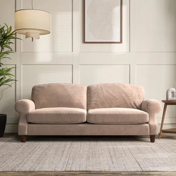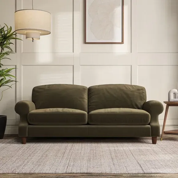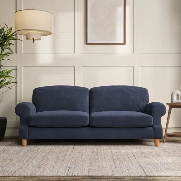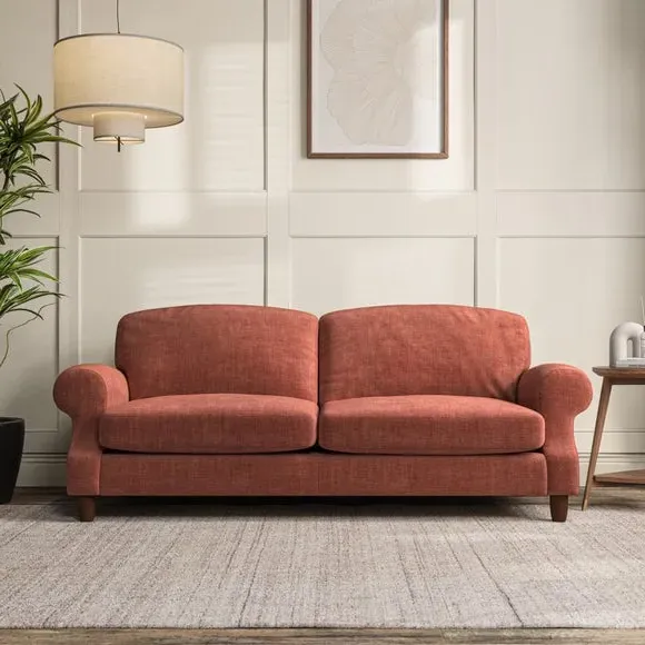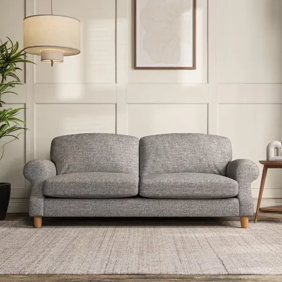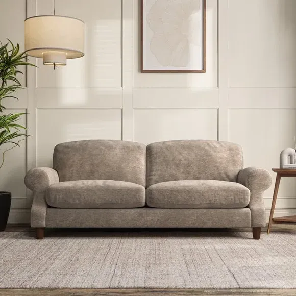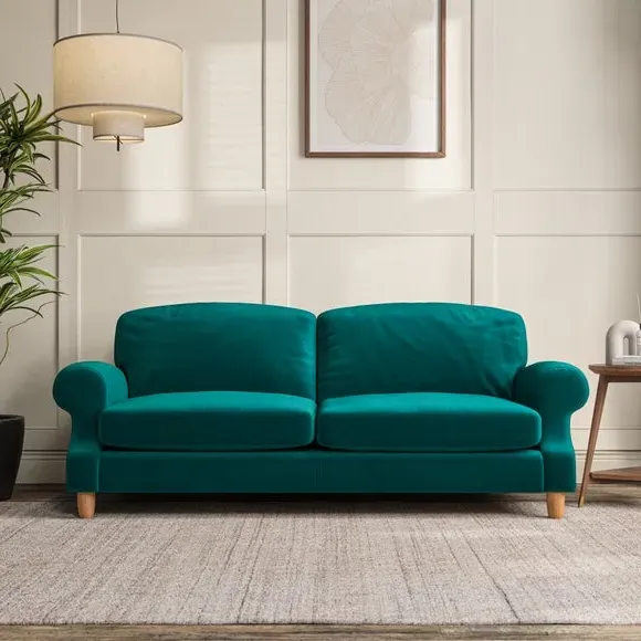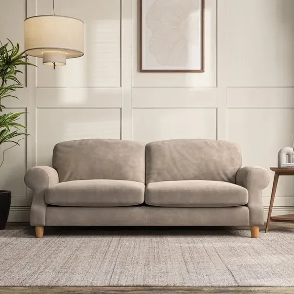 * Elegant style* Top stitched detail* High back cushions* Serpentine seat springs* Choose your support, fabric and leg colour This sofa features a cut back scroll arm and elegant, gently arched back cushions, providing both style and comfort. The top-stitched detail on the arm front adds a touch of sophistication. Higher back cushions with generous fibre filling offer excellent support for your back and shoulders. Customise your comfort by choosing between a low-maintenance foam seat or the inviting ‘Qualofill Blue’ fibre seat, made from 100% recycled polyester. Built for longevity, it includes serpentine seat springs for added comfort. The turned hardwood legs, available in two finishes, are easy to fit.