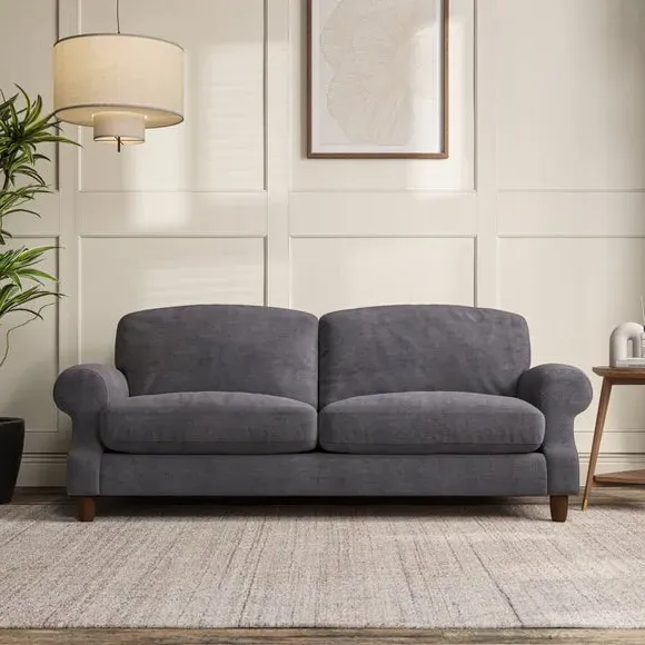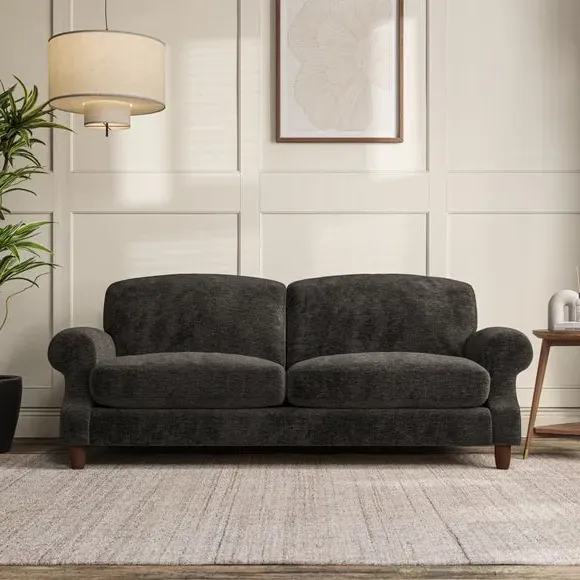 Home  /  Living Room  /  3-Seater Sofa with Scroll Arms - Charcoal, Velvet