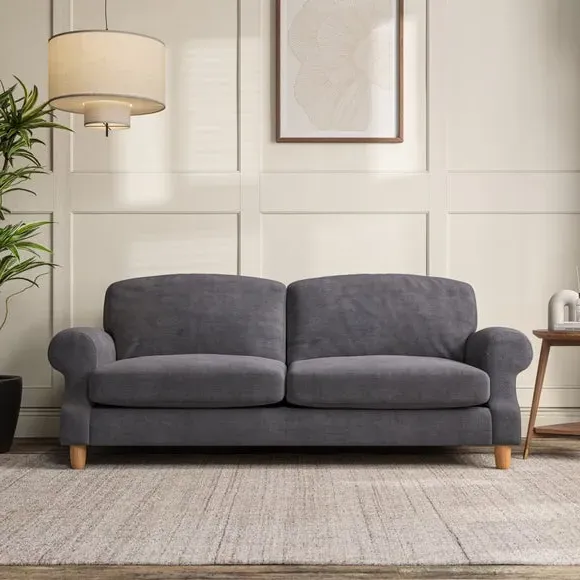 3-Seater Sofa with Scroll Arms - Charcoal, Velvet