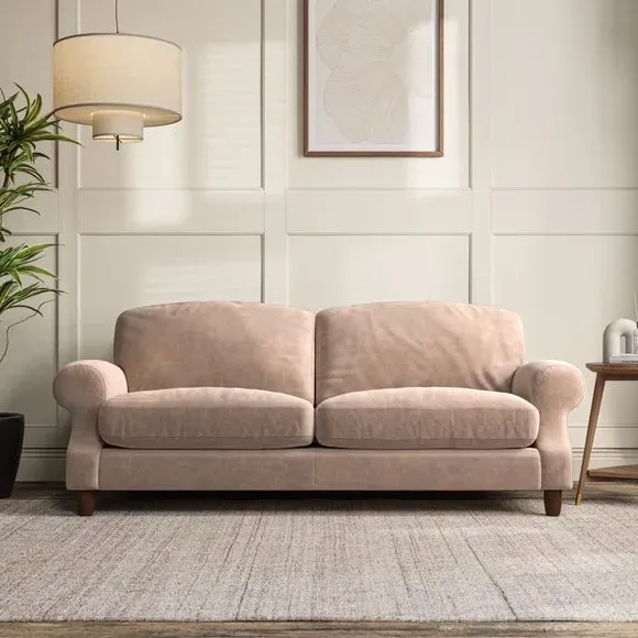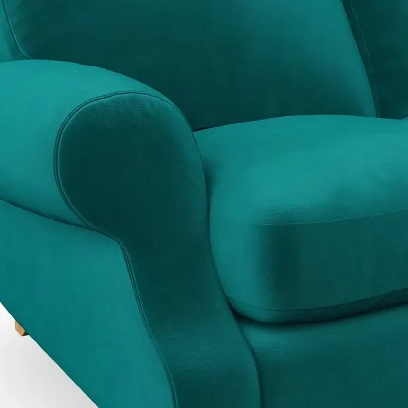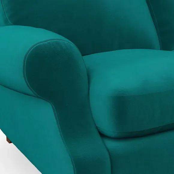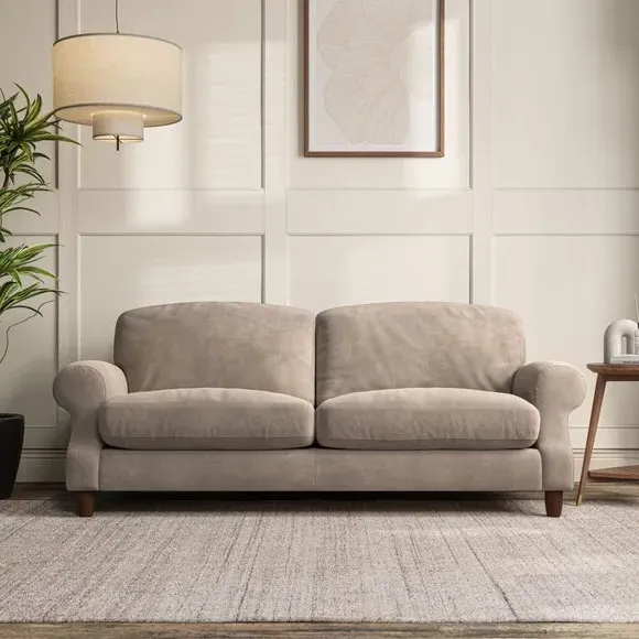 The sofa combines comfort with its cut back scroll arms and gently arched back cushions. Its top-stitched detail on the arm front adds sophistication, while the high back cushions with generous fibre filling provide excellent support for your back and shoulders. The serpentine seat springs offer added comfort, and the turned hardwood legs ensure durability with easy fitting.