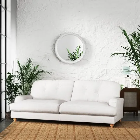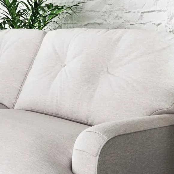 * Soft Faux Linen Upholstery* Chesterfield style* Part of the Martha family This 4-seater sofa transcends mere furniture; it's an open invitation to indulge in moments of relaxation, unwinding in the lap of luxury within the comfort of your own home. The luxurious faux linen fabric, available in a range of colours, coupled with its timeless design, transforms it into a striking focal point that elevates any interior decor. This product has fibre filled seat cushions. This means they require vigorous plumped by shaking and redistributing the fibres daily. This will add air back into the fibres and preventing clumping, flattening and the seat dipping.