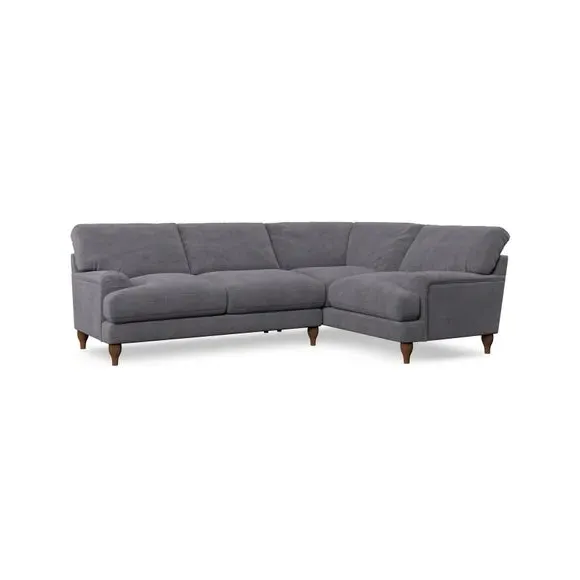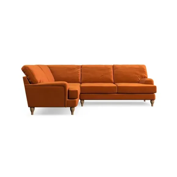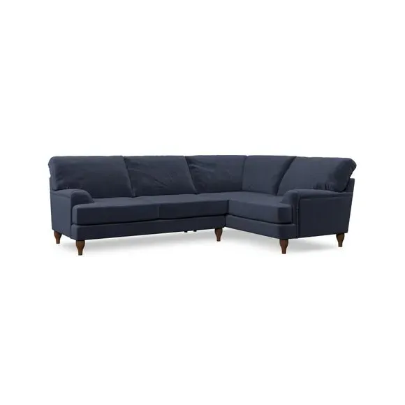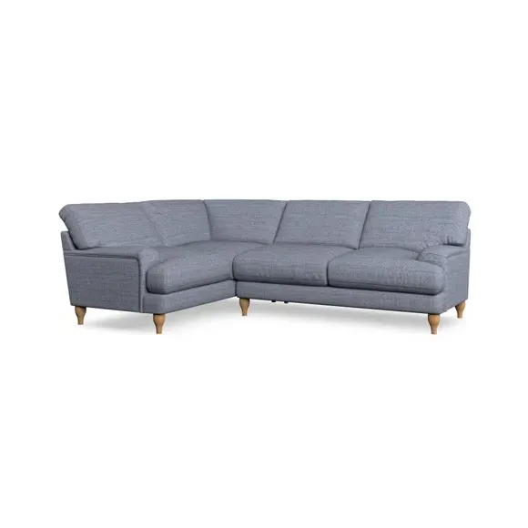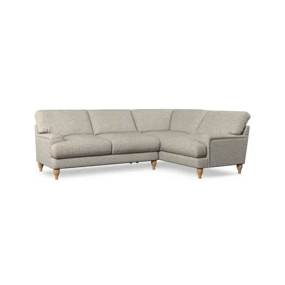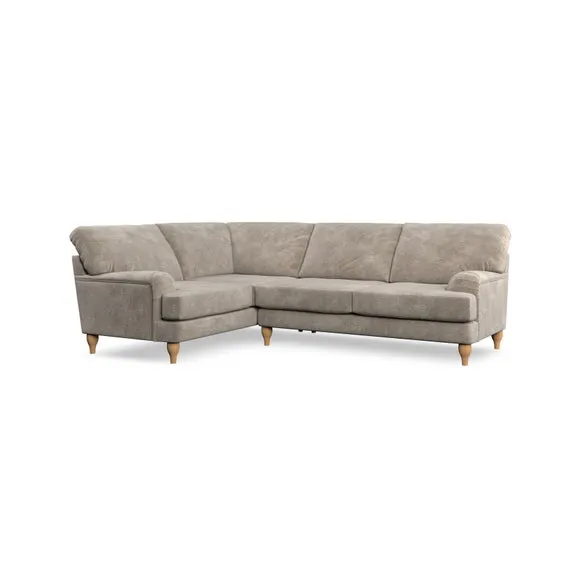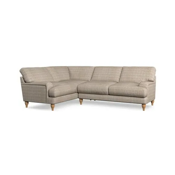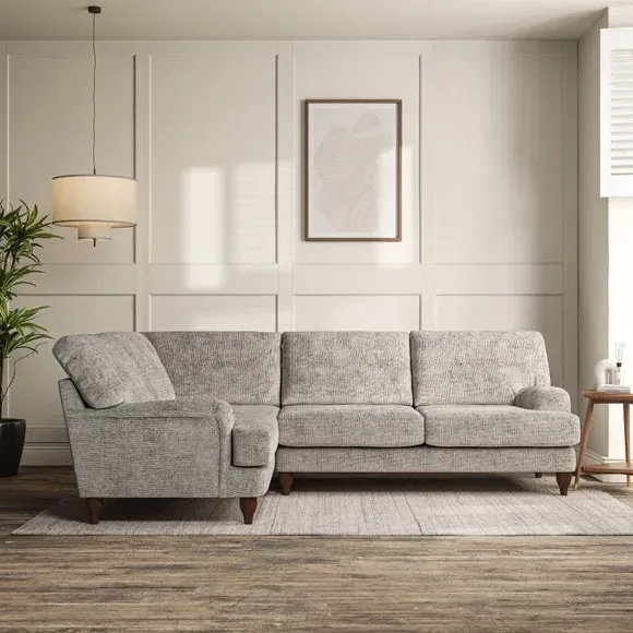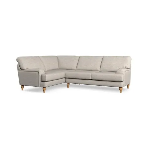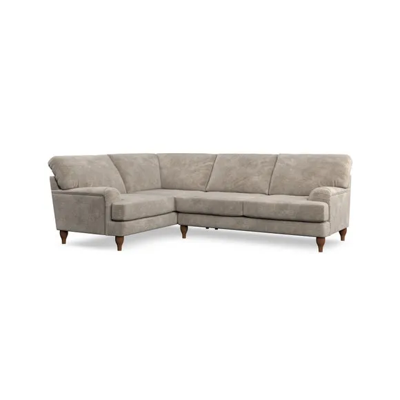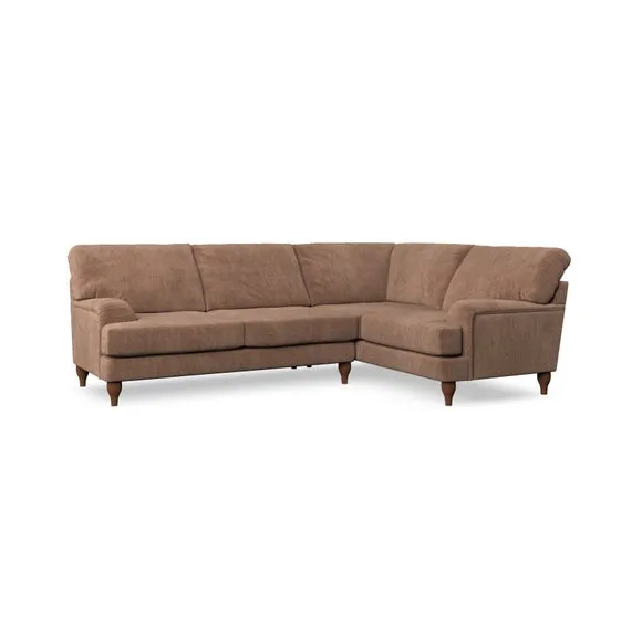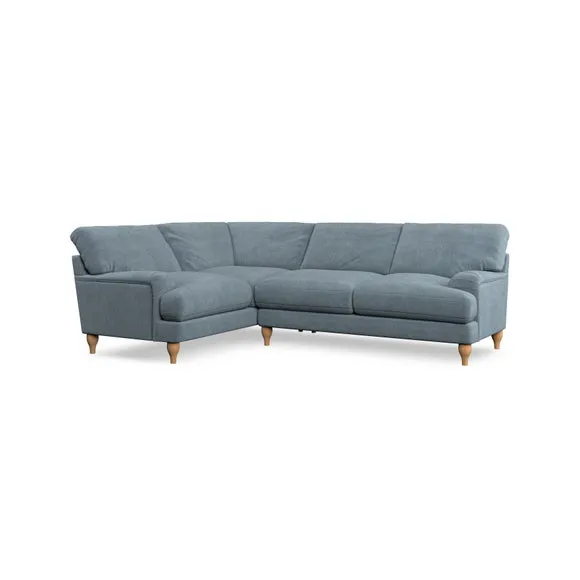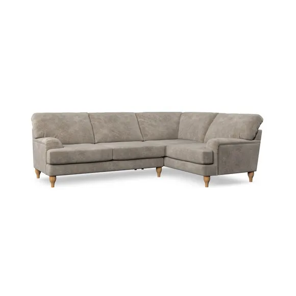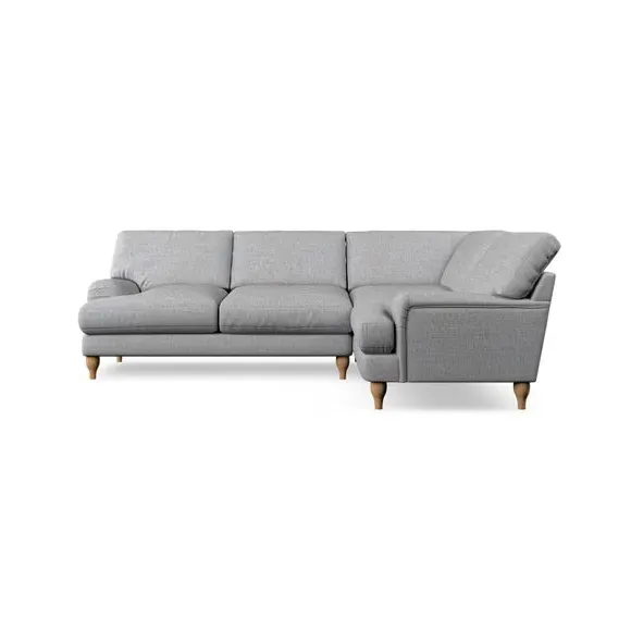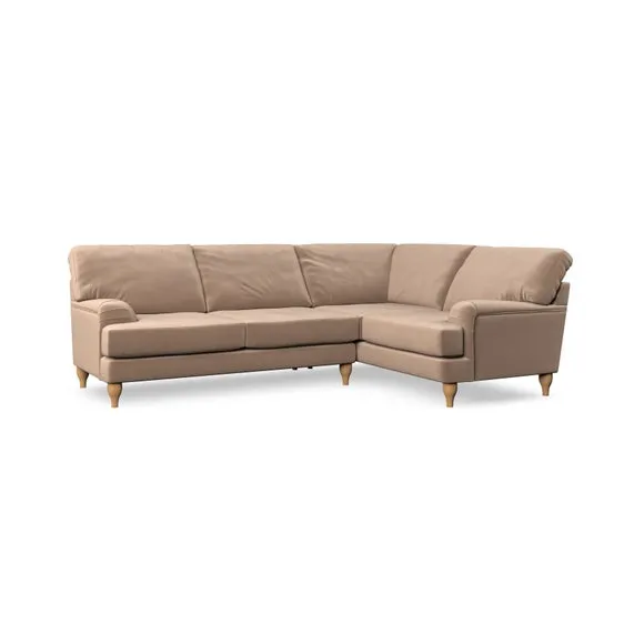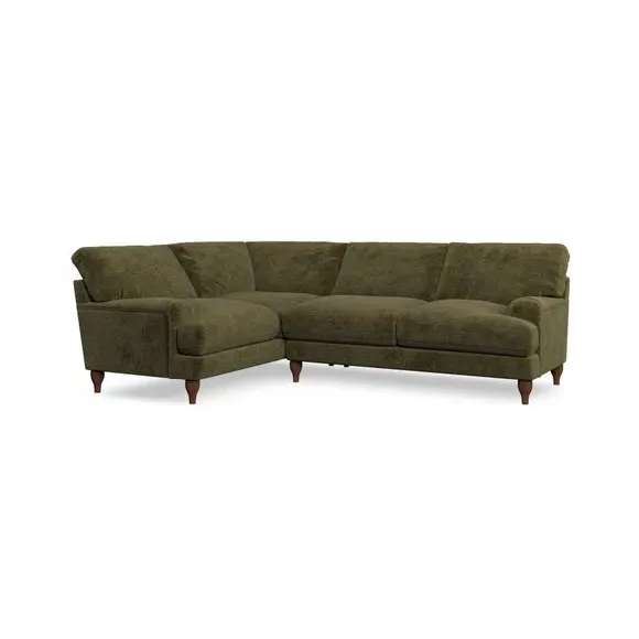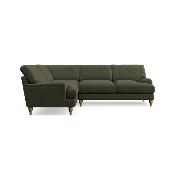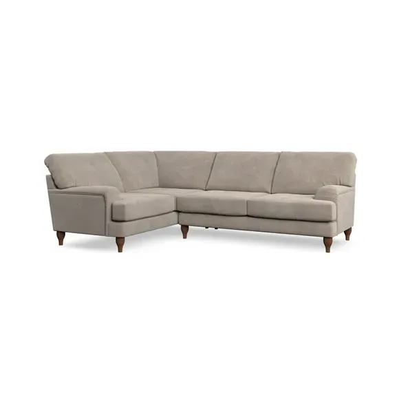 * Classic style* Bandaged Arms* Pleated details* Serpentine seat springs* Choose your orientation, support, fabric and leg colour This sofa features bandaged arms with pleat details and a lugged seat, offering a unique and stylish look. Built for longevity and comfort, it includes serpentine seat springs and deep fibre-filled back cushions for excellent support. You can customise your comfort by choosing between a low-maintenance foam seat or the inviting ‘Qualofill Blue’ fibre seat, made from 100% recycled polyester. The ‘T’ cushion seat and arm design ensure a compact and contemporary feel, complemented by self-sewn seat and back cushions. Choose from a right hand or left hand facing corner to fit your space perfectly. Additionally, you can select your preferred fabric and leg colour to perfectly match your living space.