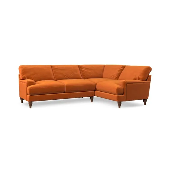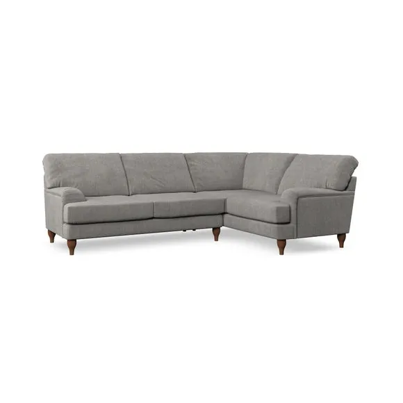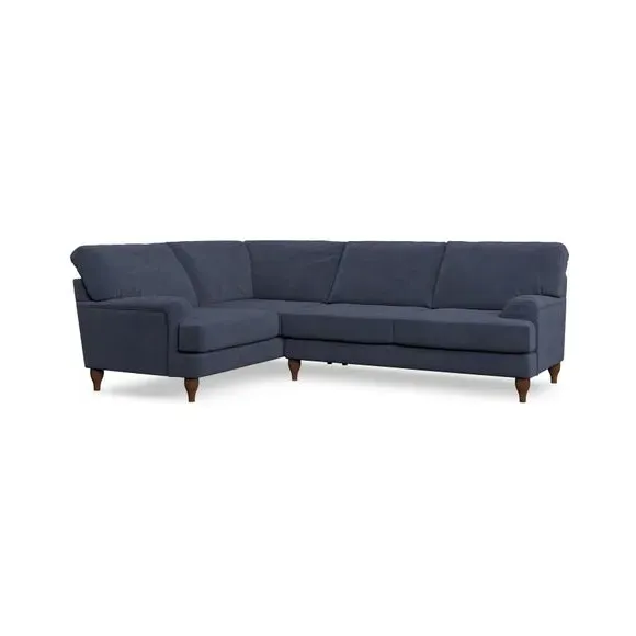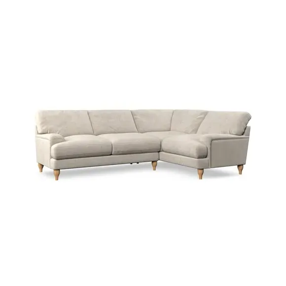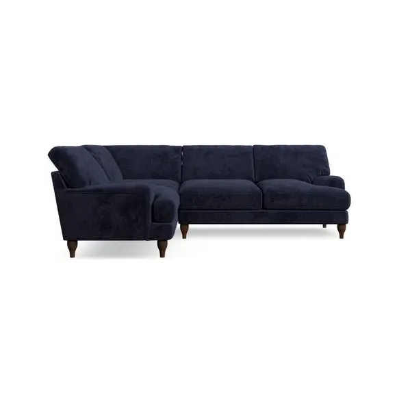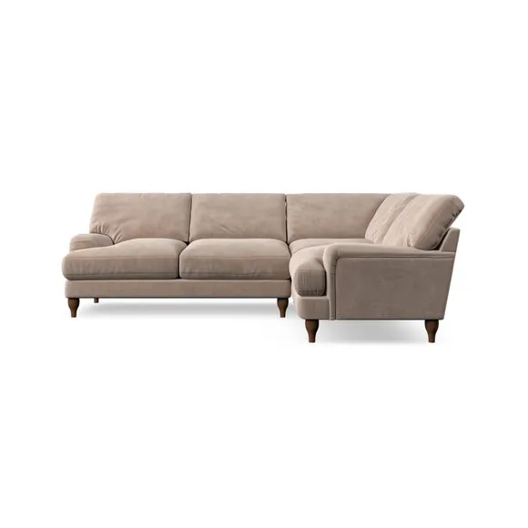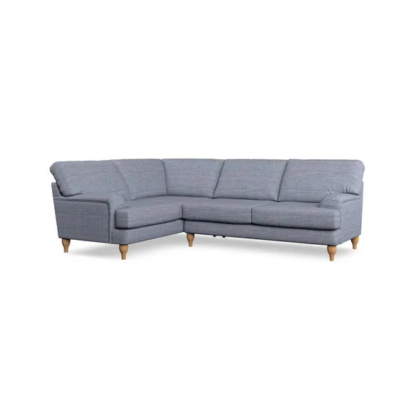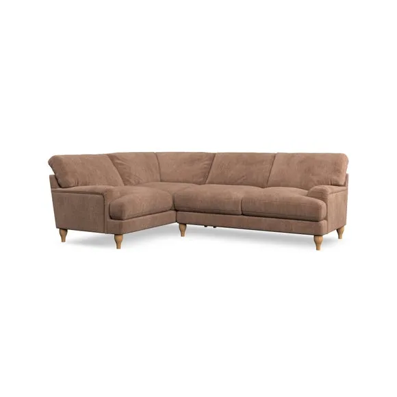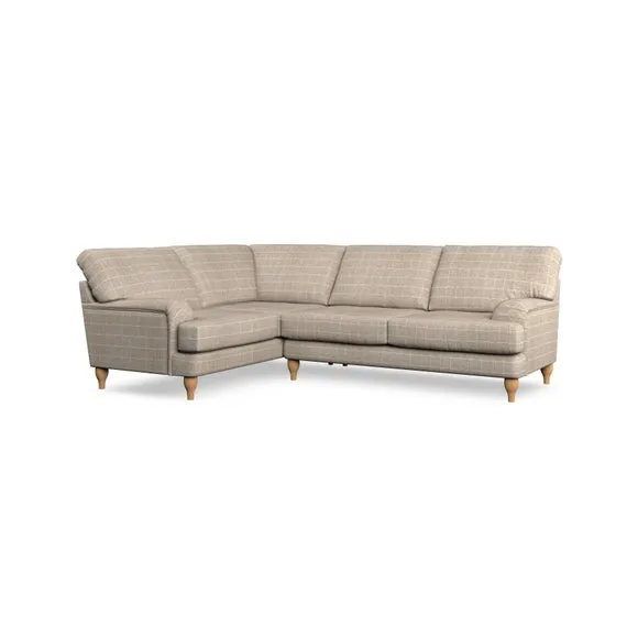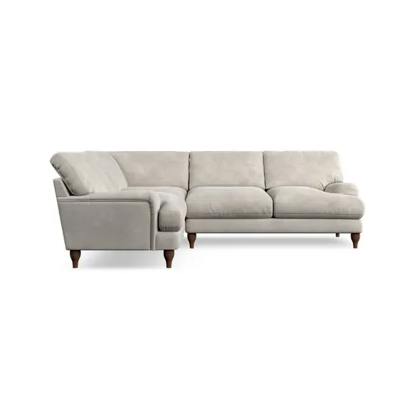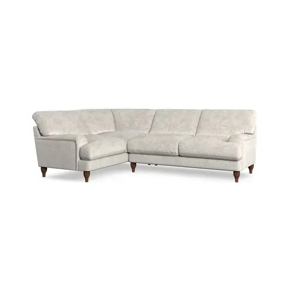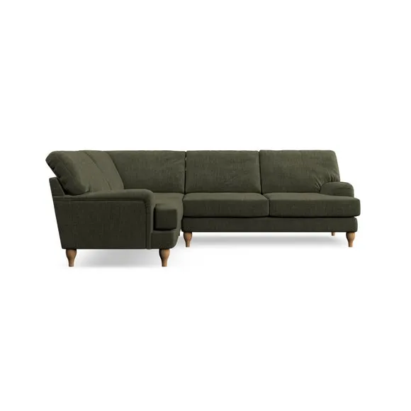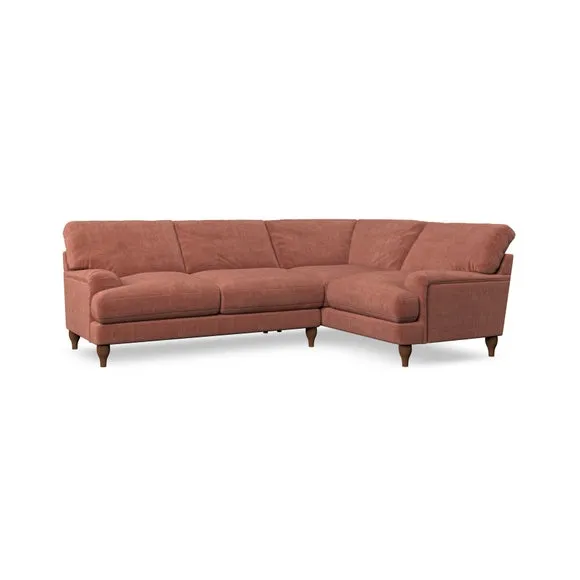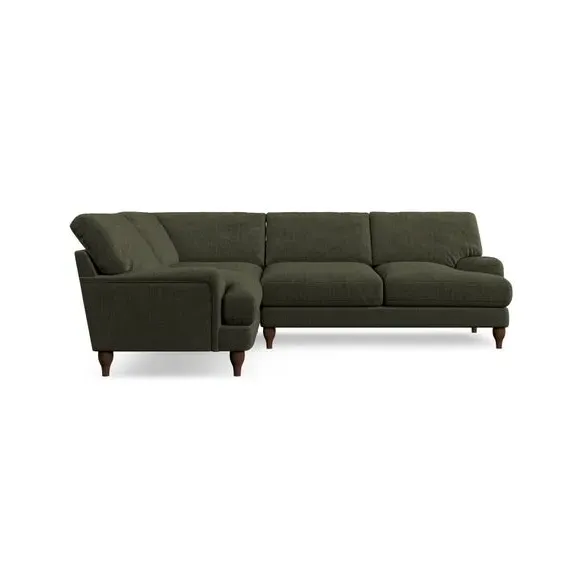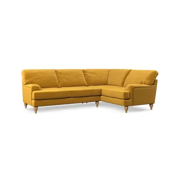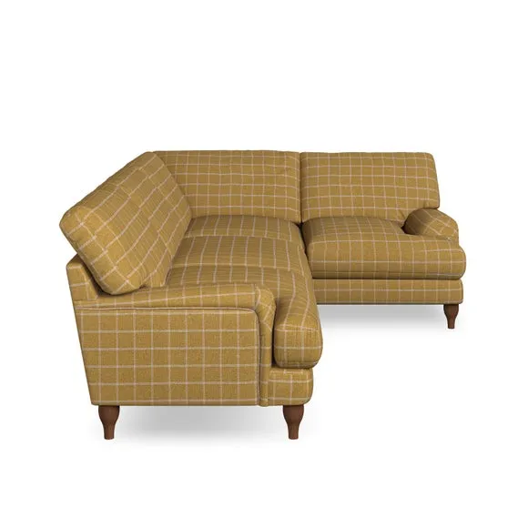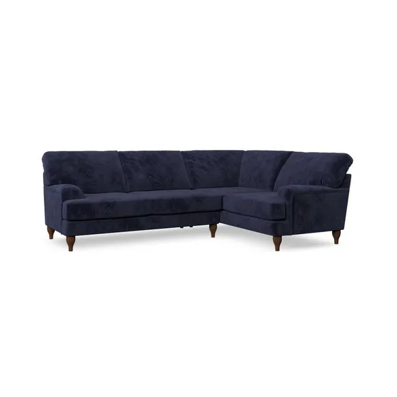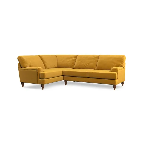 * Classic style* Bandaged Arms* Pleated details* Serpentine seat springs* Choose your orientation, support, fabric and leg colour This sofa features bandaged arms with pleat details and a lugged seat, offering a unique and stylish look. Built for longevity and comfort, it includes serpentine seat springs and deep fibre-filled back cushions for excellent support. You can customise your comfort by choosing between a low-maintenance foam seat or the inviting ‘Qualofill Blue’ fibre seat, made from 100% recycled polyester. The ‘T’ cushion seat and arm design ensure a compact and contemporary feel, complemented by self-sewn seat and back cushions. Choose from a right hand or left hand facing corner to fit your space perfectly. Additionally, you can select your preferred fabric and leg colour to perfectly match your living space.