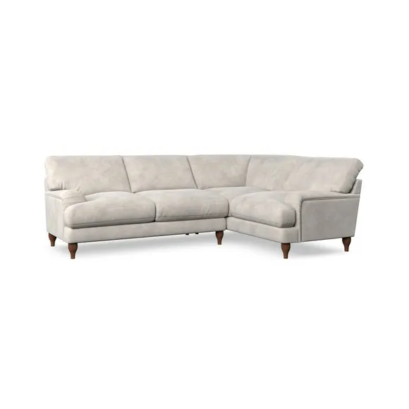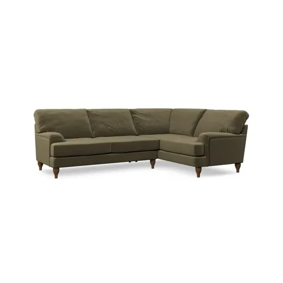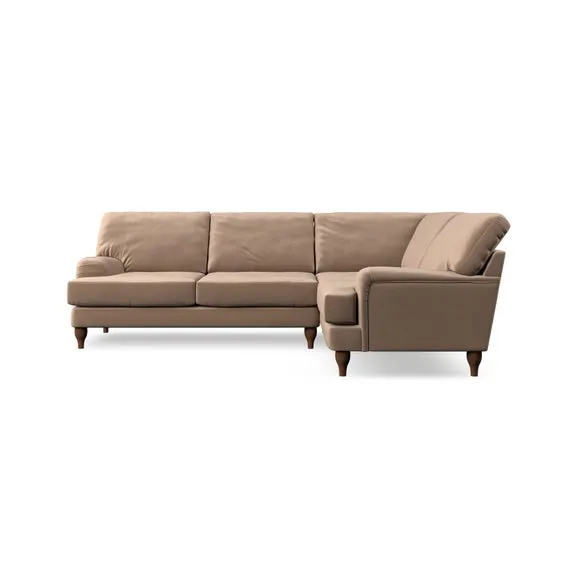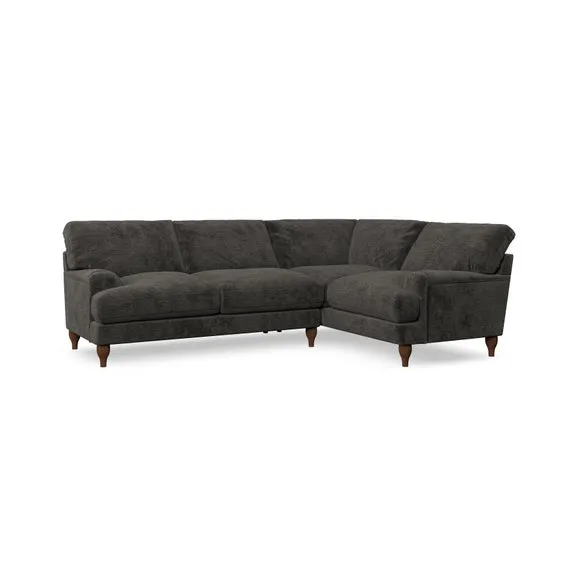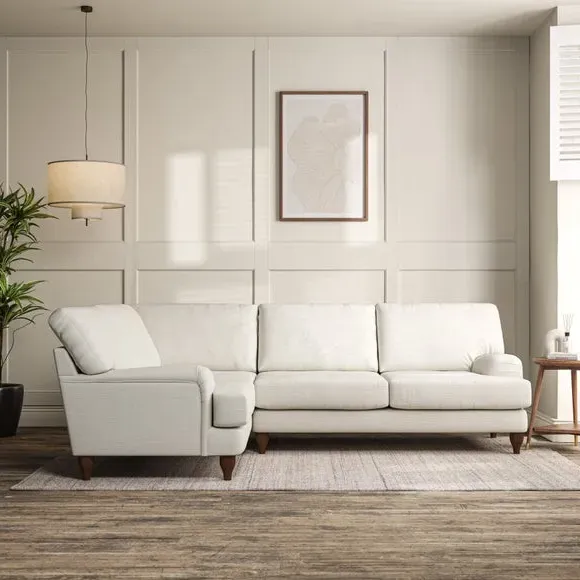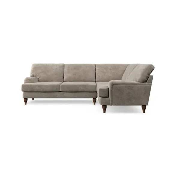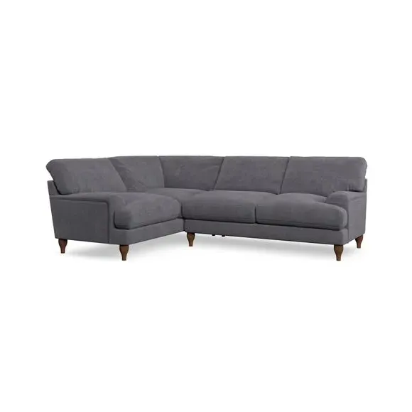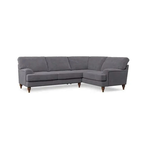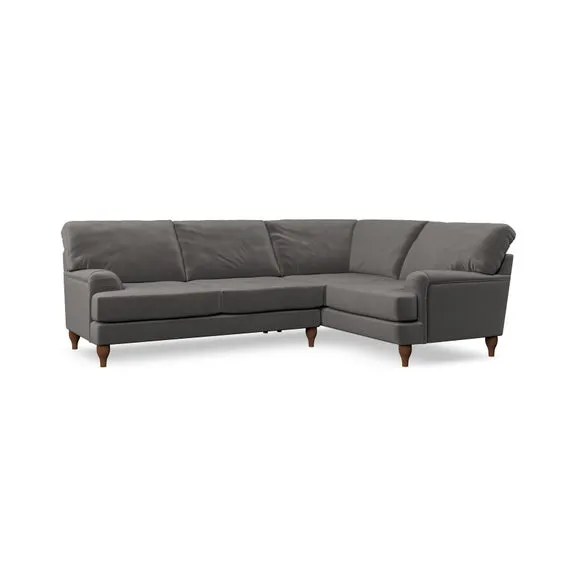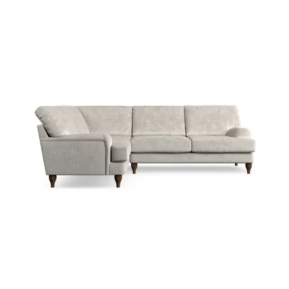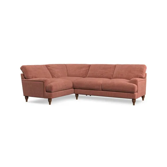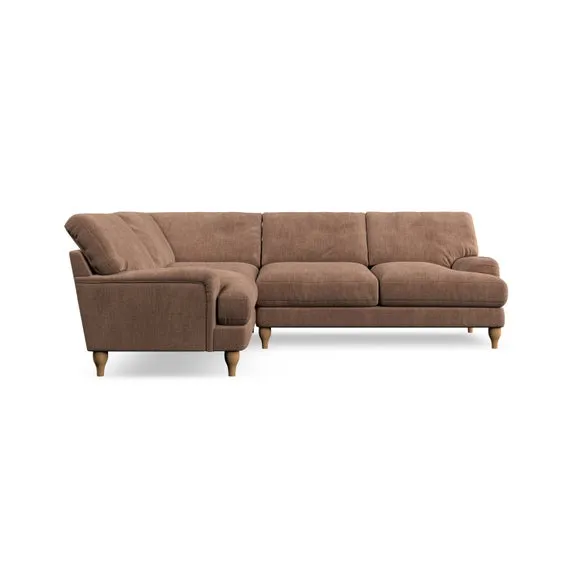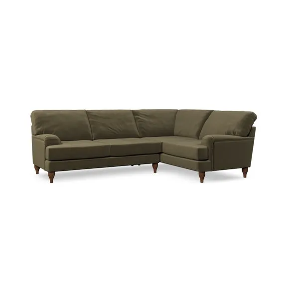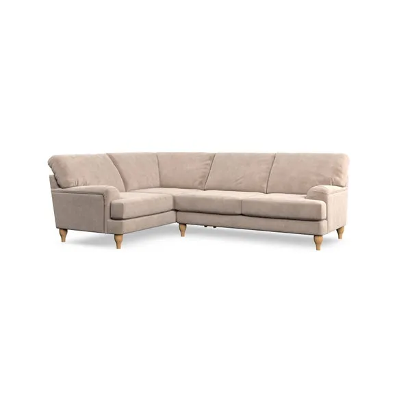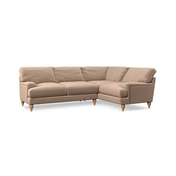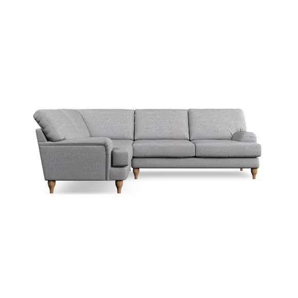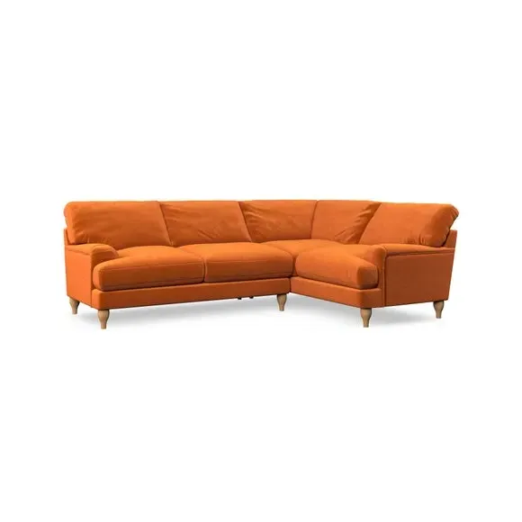 * Classic style* Bandaged Arms* Pleated details* Serpentine seat springs* Choose your orientation, support, fabric and leg colour This sofa features bandaged arms with pleat details and a lugged seat, offering a unique and stylish look. Built for longevity and comfort, it includes serpentine seat springs and deep fibre-filled back cushions for excellent support. You can customise your comfort by choosing between a low-maintenance foam seat or the inviting ‘Qualofill Blue’ fibre seat, made from 100% recycled polyester. The ‘T’ cushion seat and arm design ensure a compact and contemporary feel, complemented by self-sewn seat and back cushions. Choose from a right hand or left hand facing corner to fit your space perfectly. Additionally, you can select your preferred fabric and leg colour to perfectly match your living space.