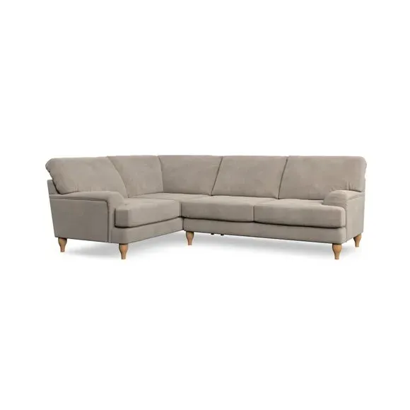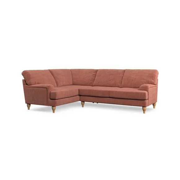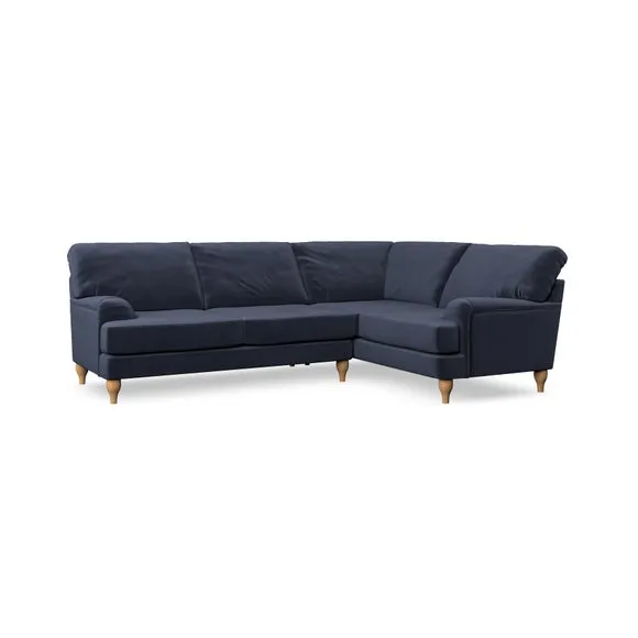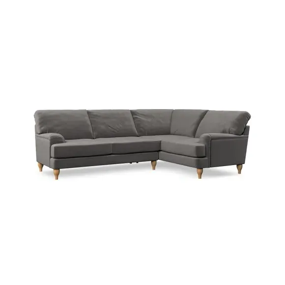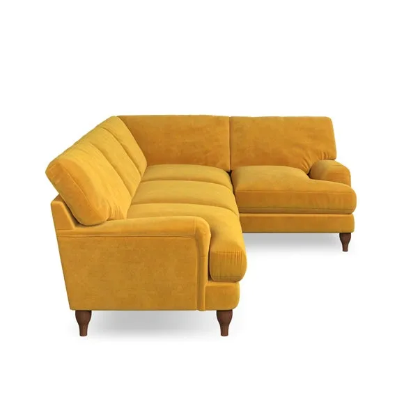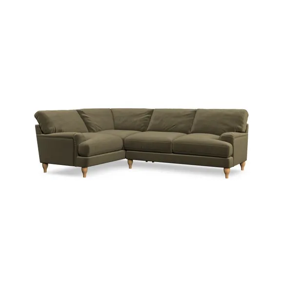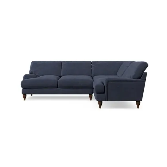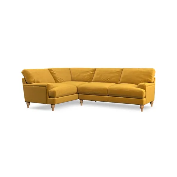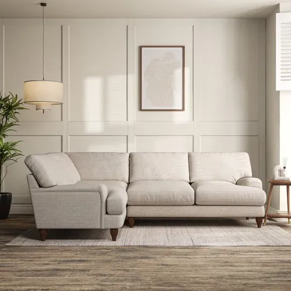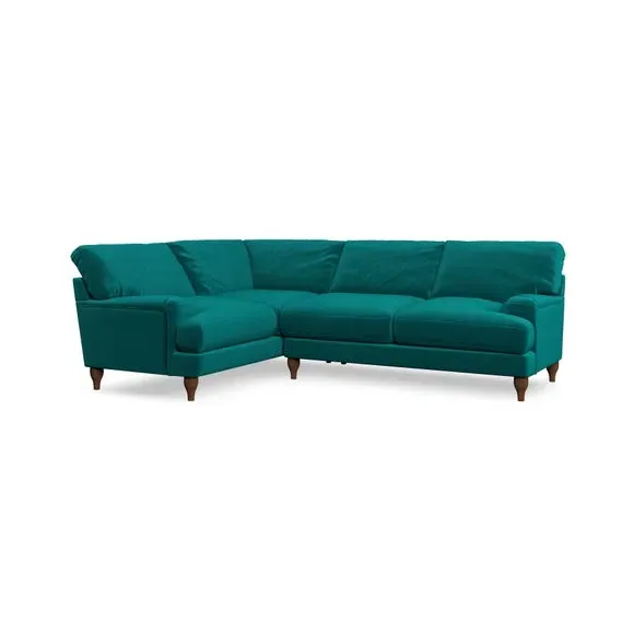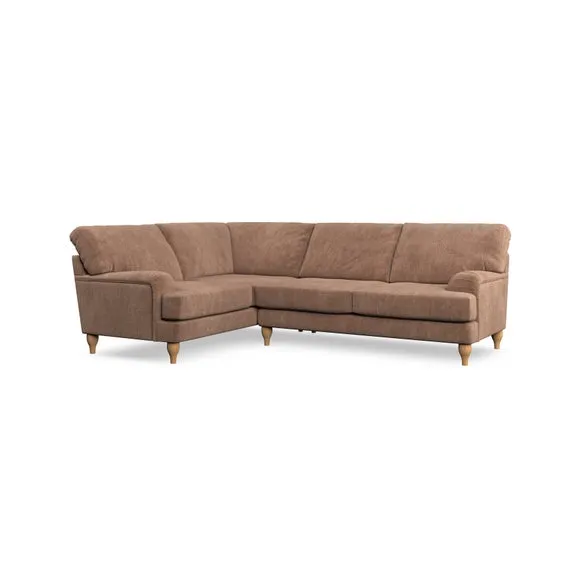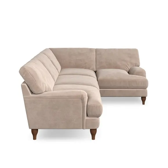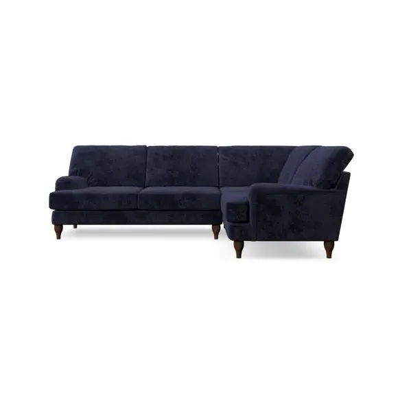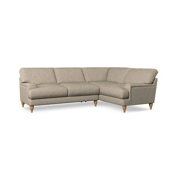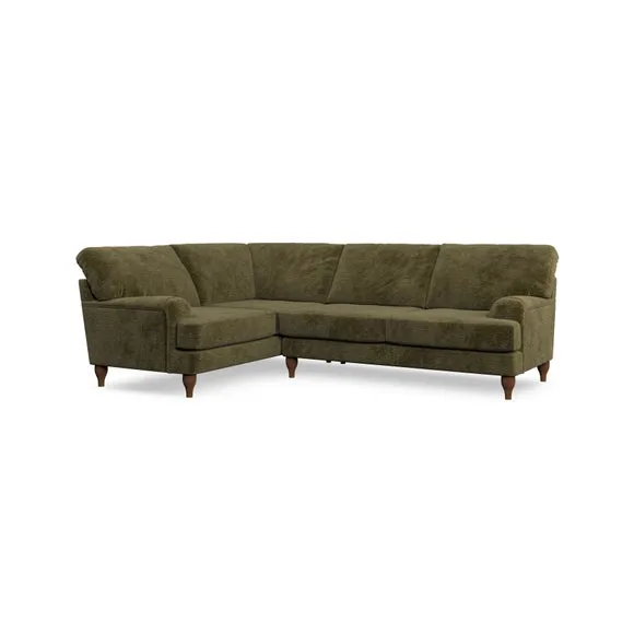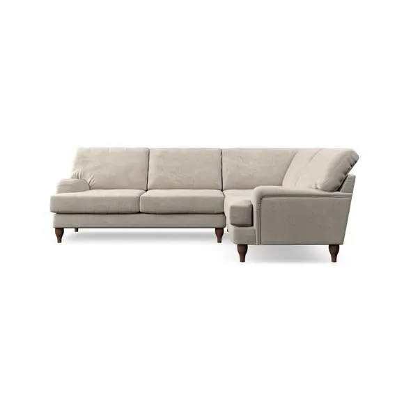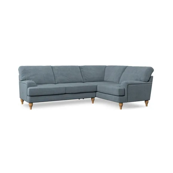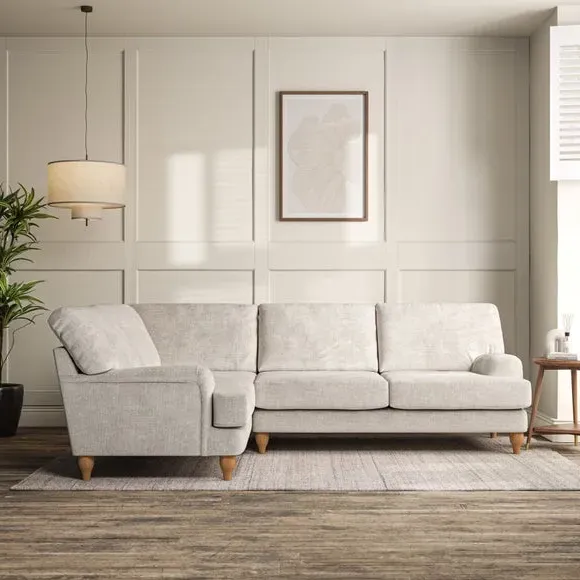 * Classic style* Bandaged Arms* Pleated details* Serpentine seat springs* Choose your orientation, support, fabric and leg colour This sofa features bandaged arms with pleat details and a lugged seat, offering a unique and stylish look. Built for longevity and comfort, it includes serpentine seat springs and deep fibre-filled back cushions for excellent support. You can customise your comfort by choosing between a low-maintenance foam seat or the inviting ‘Qualofill Blue’ fibre seat, made from 100% recycled polyester. The ‘T’ cushion seat and arm design ensure a compact and contemporary feel, complemented by self-sewn seat and back cushions. Choose from a right hand or left hand facing corner to fit your space perfectly. Additionally, you can select your preferred fabric and leg colour to perfectly match your living space.
