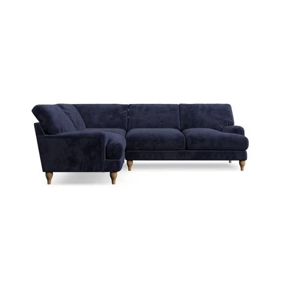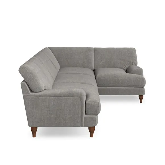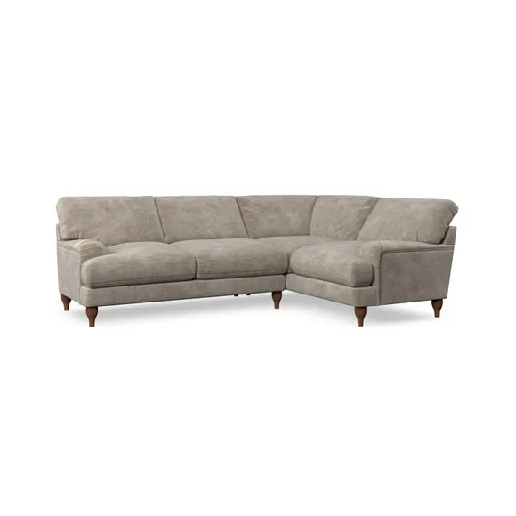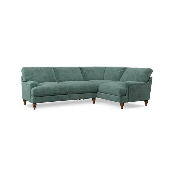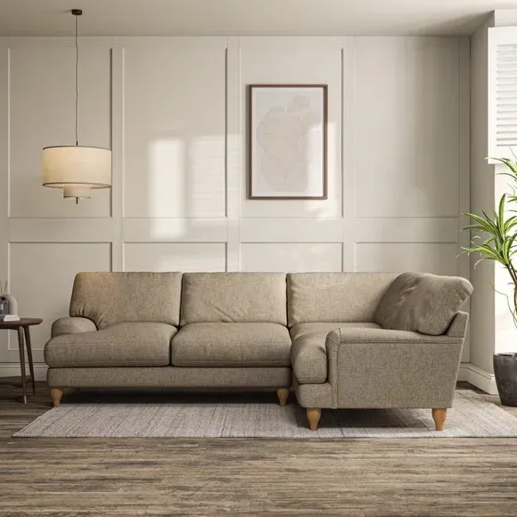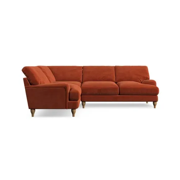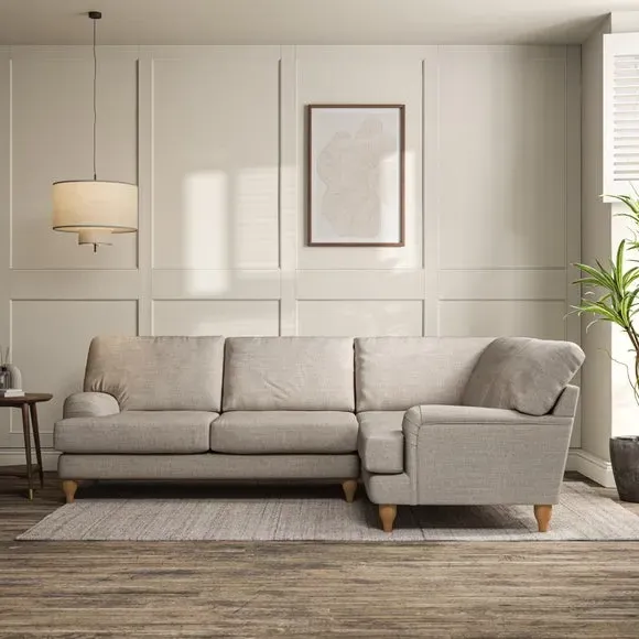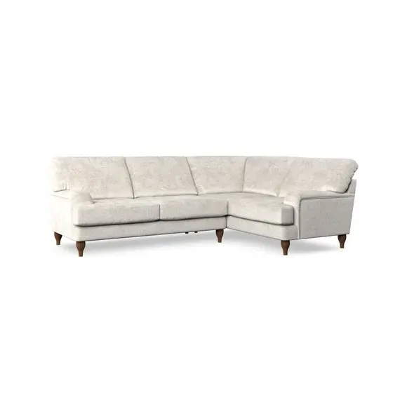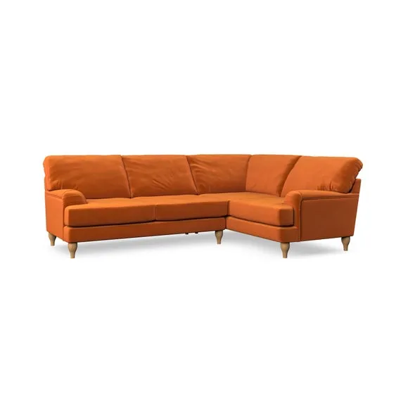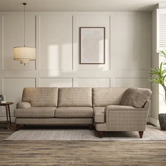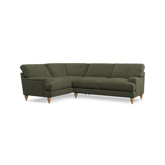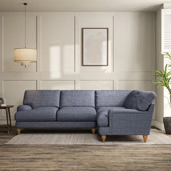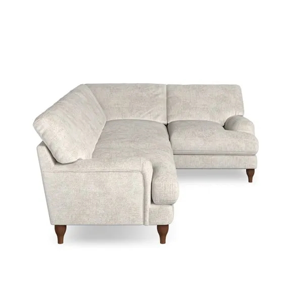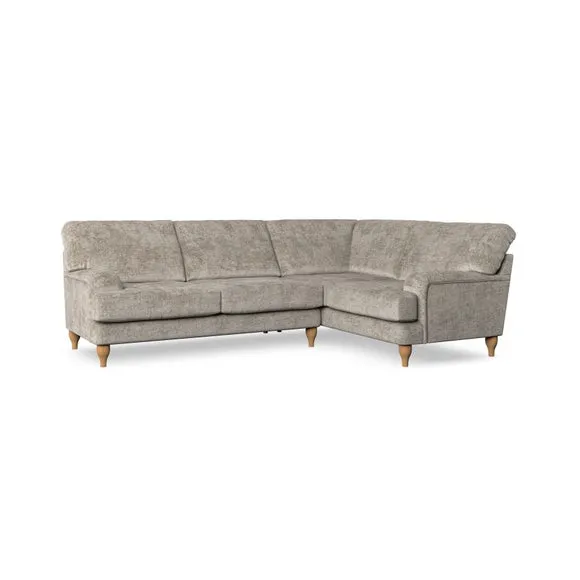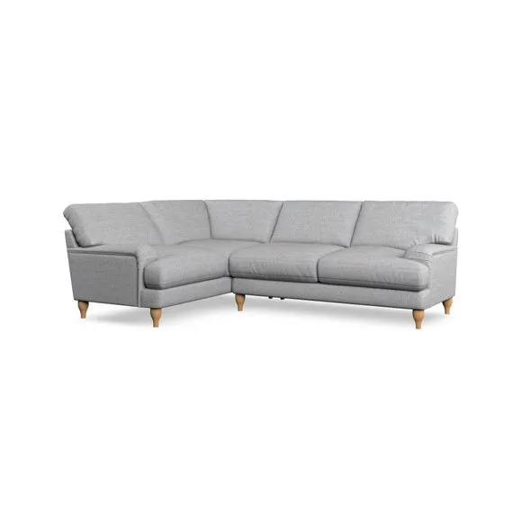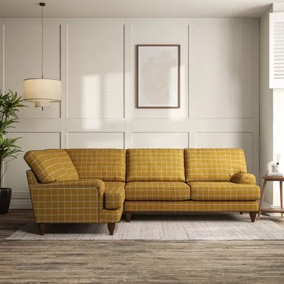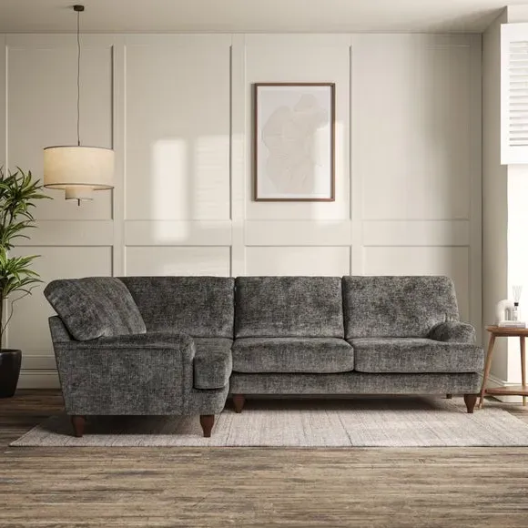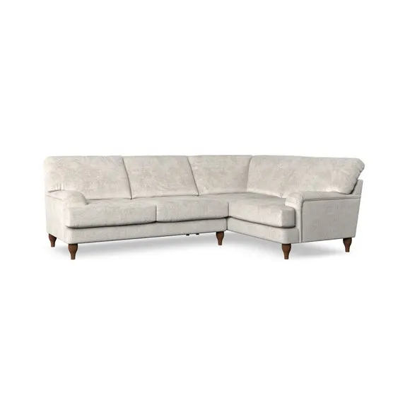 * Classic style* Bandaged Arms* Pleated details* Serpentine seat springs* Choose your orientation, support, fabric and leg colour This sofa features bandaged arms with pleat details and a lugged seat, offering a unique and stylish look. Built for longevity and comfort, it includes serpentine seat springs and deep fibre-filled back cushions for excellent support. You can customise your comfort by choosing between a low-maintenance foam seat or the inviting ‘Qualofill Blue’ fibre seat, made from 100% recycled polyester. The ‘T’ cushion seat and arm design ensure a compact and contemporary feel, complemented by self-sewn seat and back cushions. Choose from a right hand or left hand facing corner to fit your space perfectly. Additionally, you can select your preferred fabric and leg colour to perfectly match your living space.