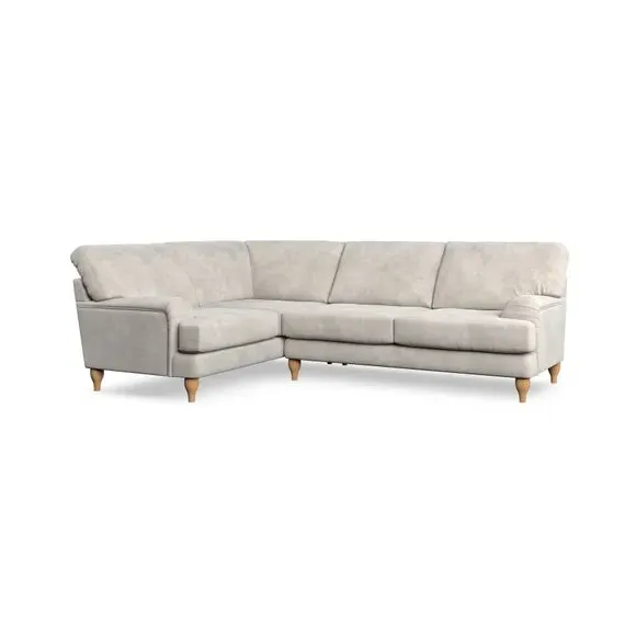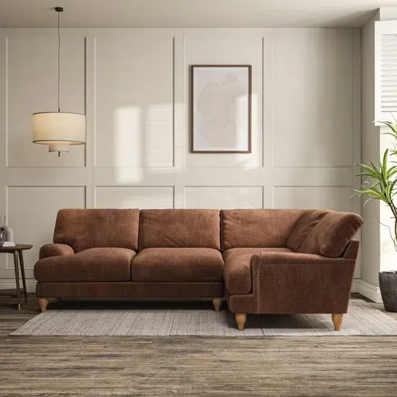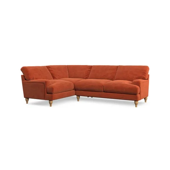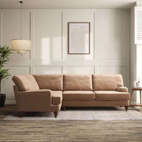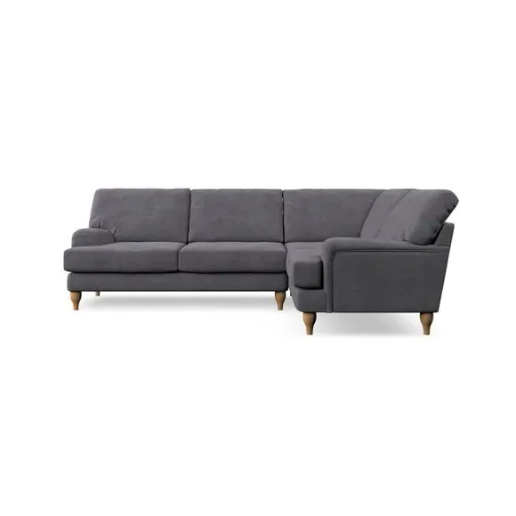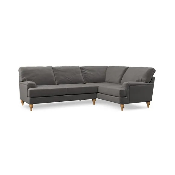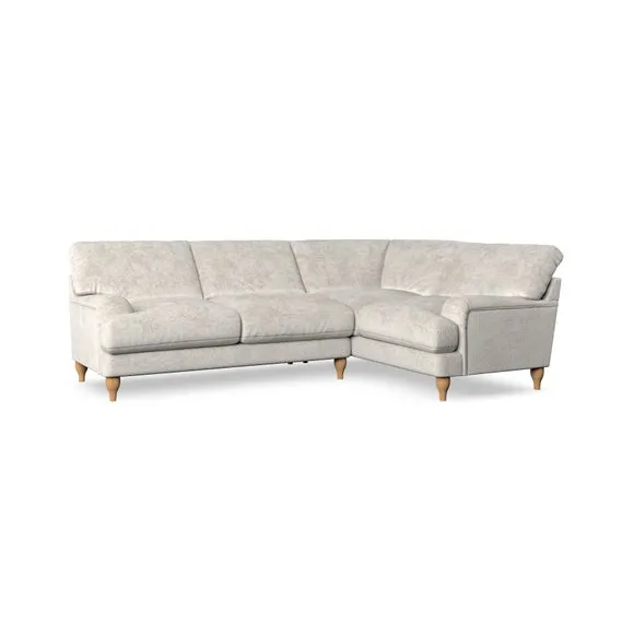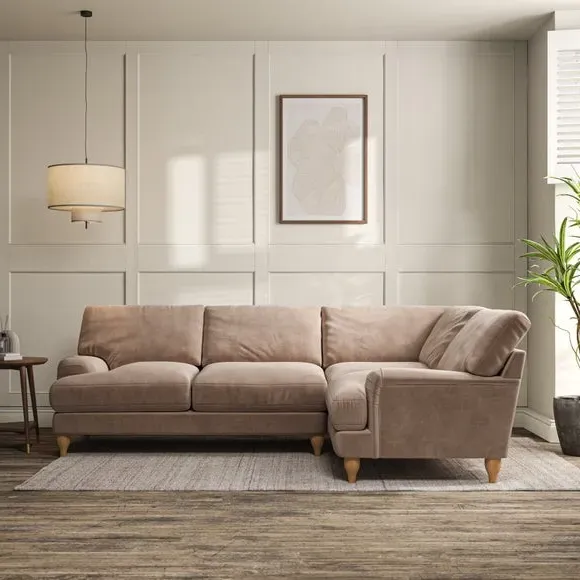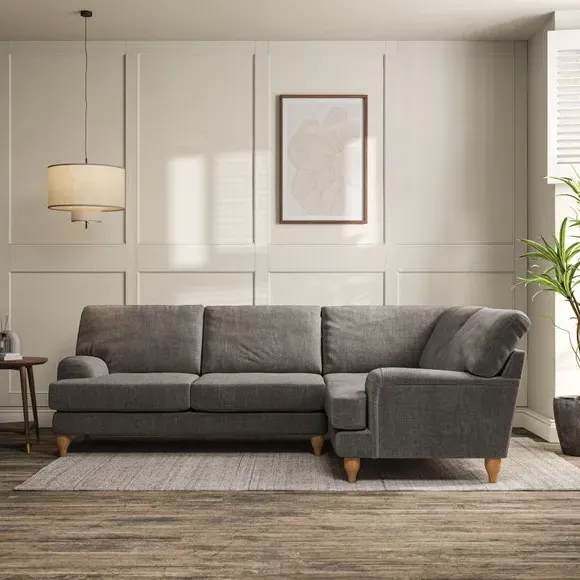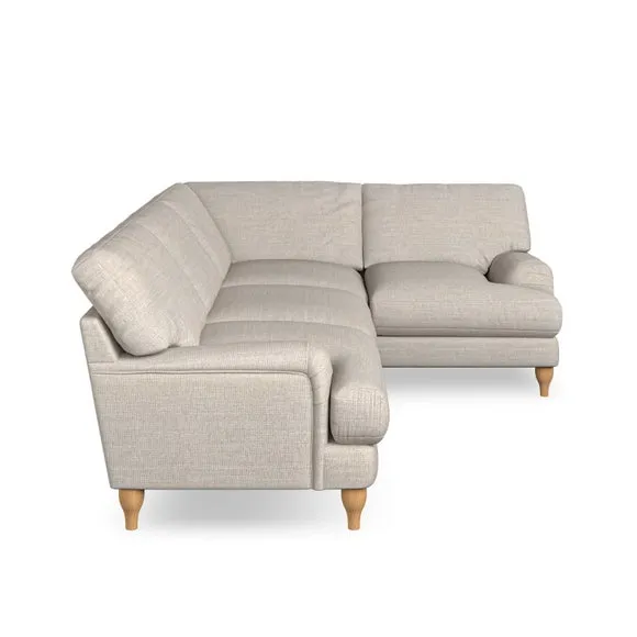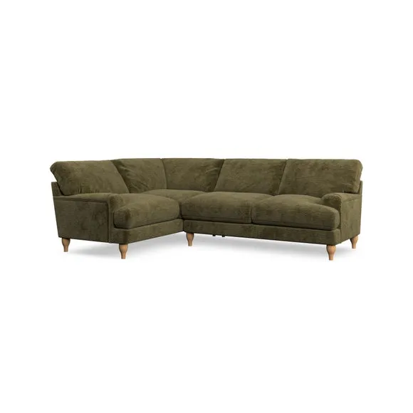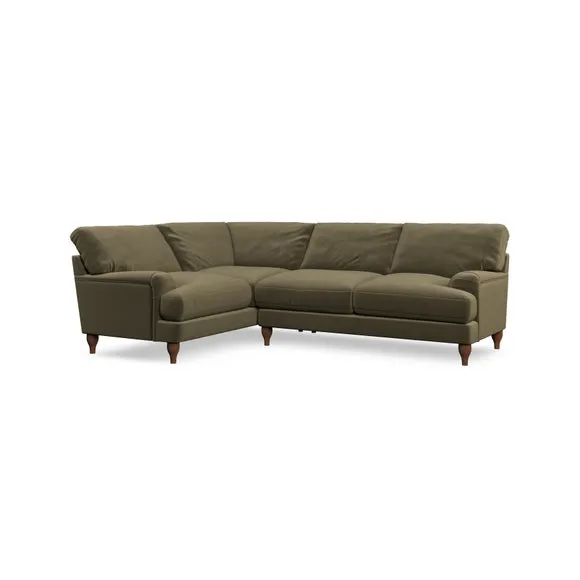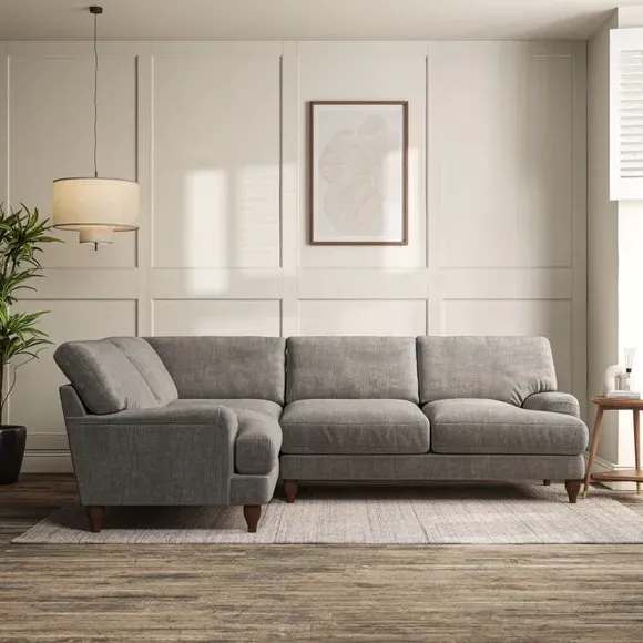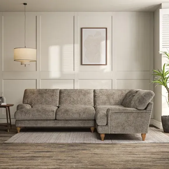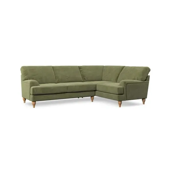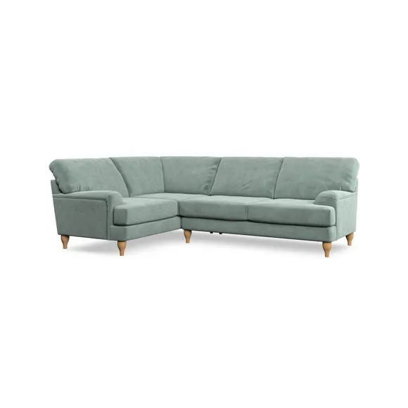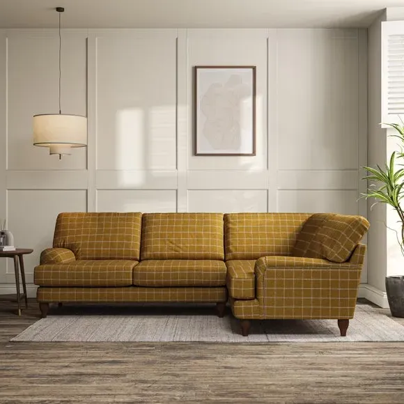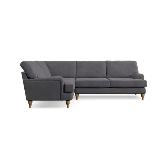 * Classic style* Bandaged Arms* Pleated details* Serpentine seat springs* Choose your orientation, support, fabric and leg colour This sofa features bandaged arms with pleat details and a lugged seat, offering a unique and stylish look. Built for longevity and comfort, it includes serpentine seat springs and deep fibre-filled back cushions for excellent support. You can customise your comfort by choosing between a low-maintenance foam seat or the inviting ‘Qualofill Blue’ fibre seat, made from 100% recycled polyester. The ‘T’ cushion seat and arm design ensure a compact and contemporary feel, complemented by self-sewn seat and back cushions. Choose from a right hand or left hand facing corner to fit your space perfectly. Additionally, you can select your preferred fabric and leg colour to perfectly match your living space.