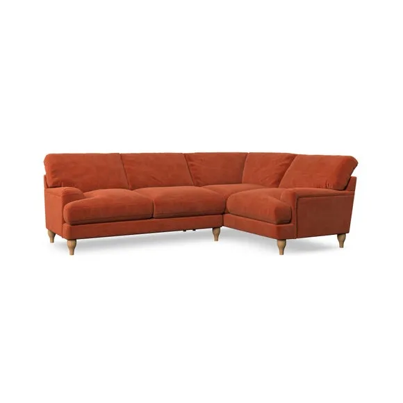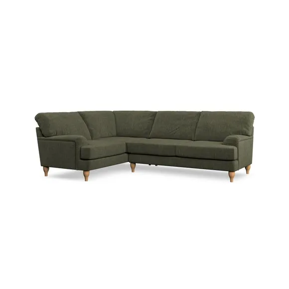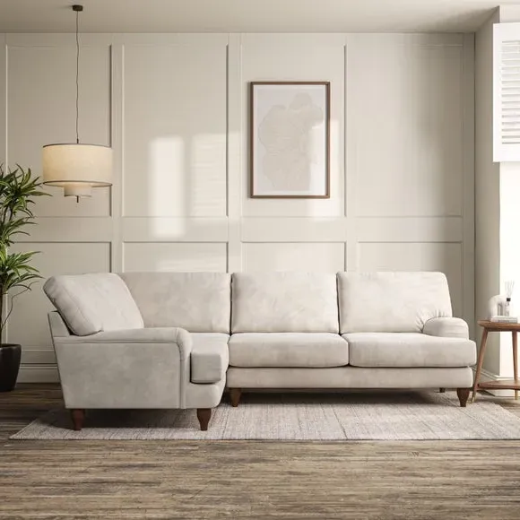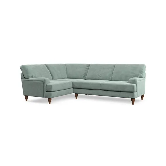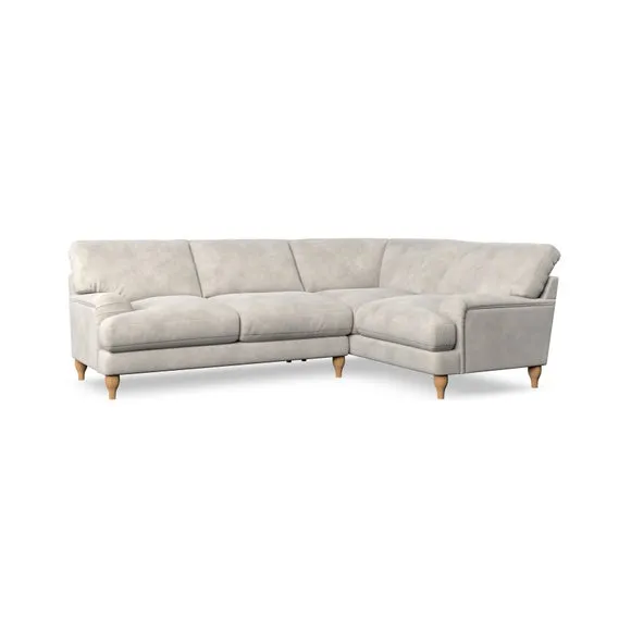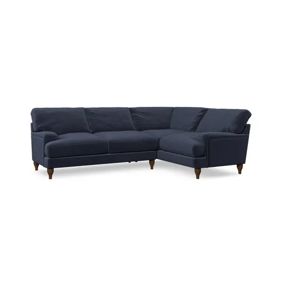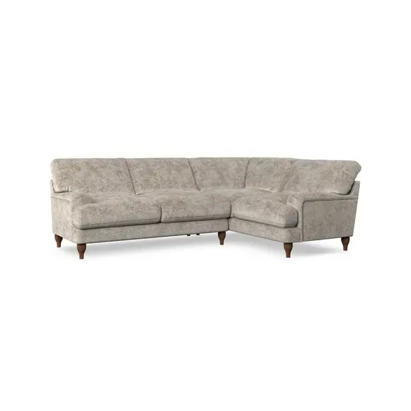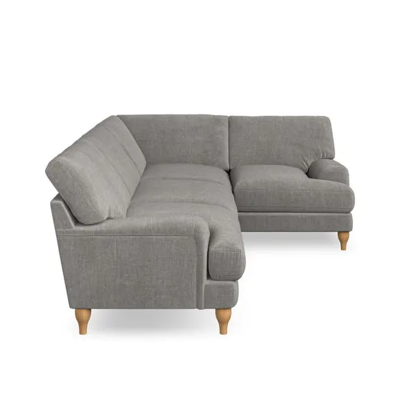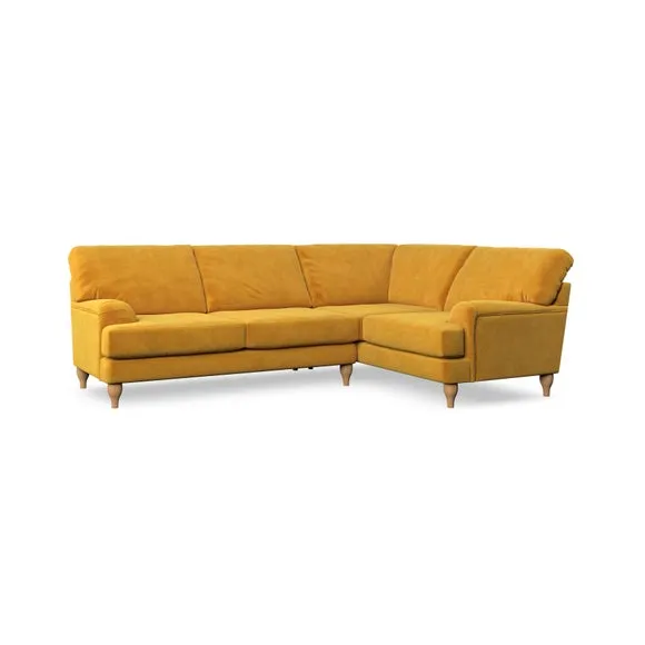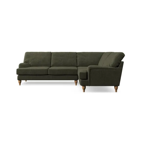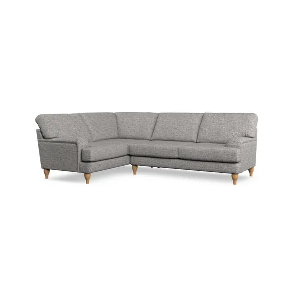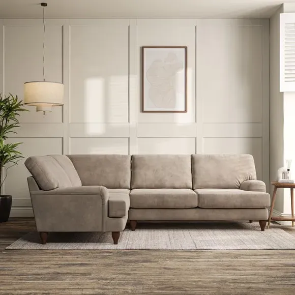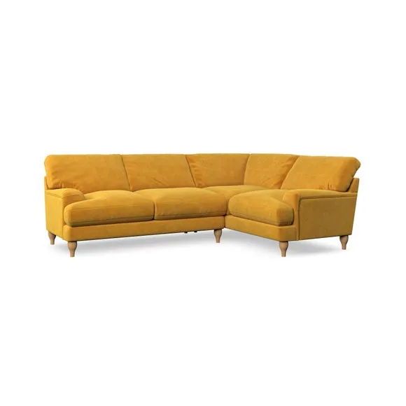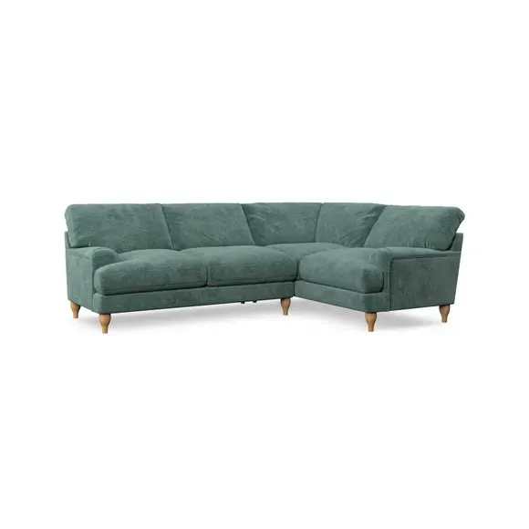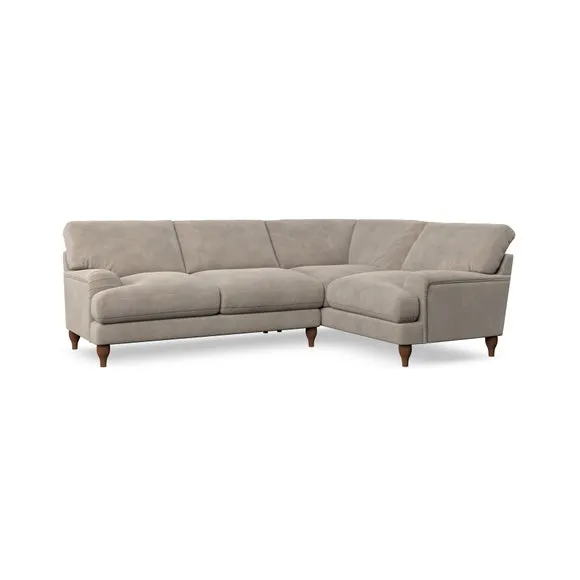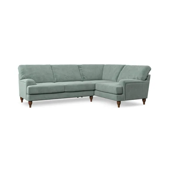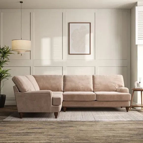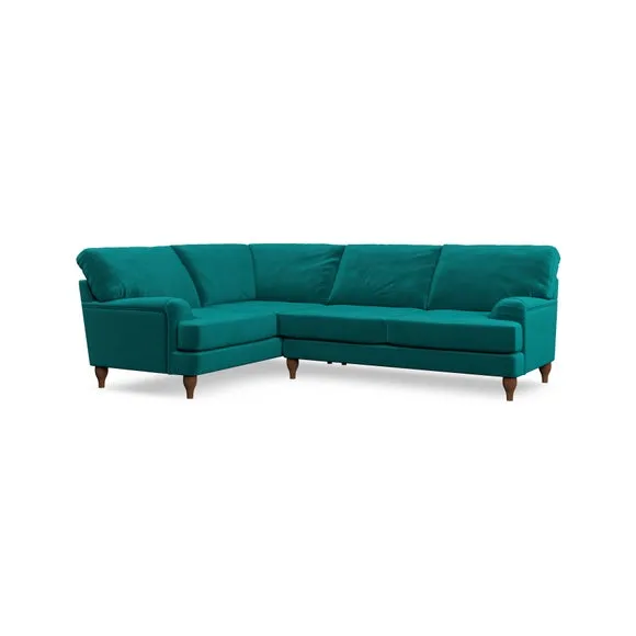 * Classic style* Bandaged Arms* Pleated details* Serpentine seat springs* Choose your orientation, support, fabric and leg colour This sofa features bandaged arms with pleat details and a lugged seat, offering a unique and stylish look. Built for longevity and comfort, it includes serpentine seat springs and deep fibre-filled back cushions for excellent support. You can customise your comfort by choosing between a low-maintenance foam seat or the inviting ‘Qualofill Blue’ fibre seat, made from 100% recycled polyester. The ‘T’ cushion seat and arm design ensure a compact and contemporary feel, complemented by self-sewn seat and back cushions. Choose from a right hand or left hand facing corner to fit your space perfectly. Additionally, you can select your preferred fabric and leg colour to perfectly match your living space.
