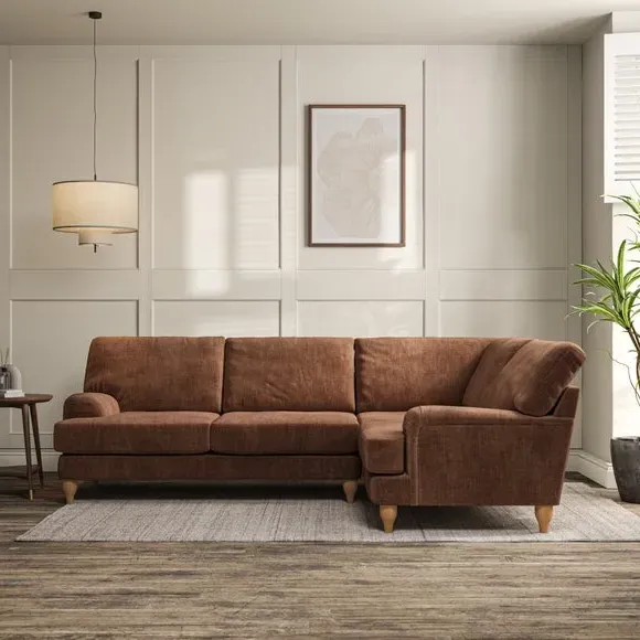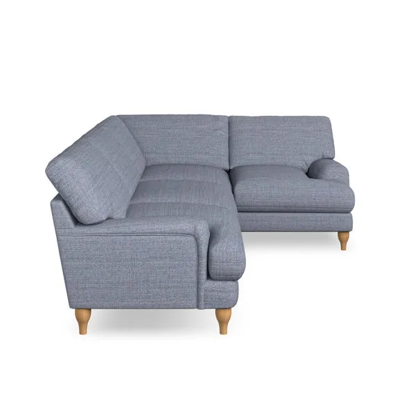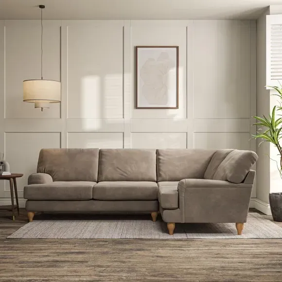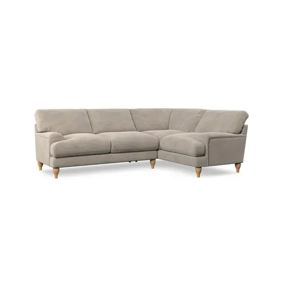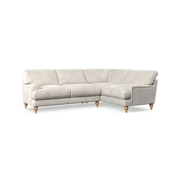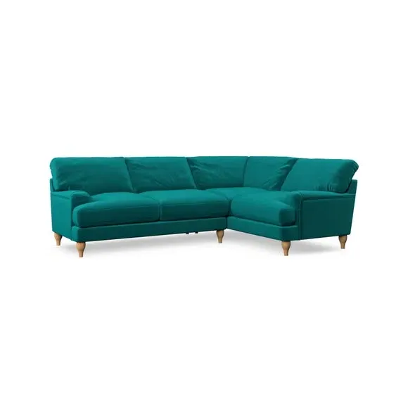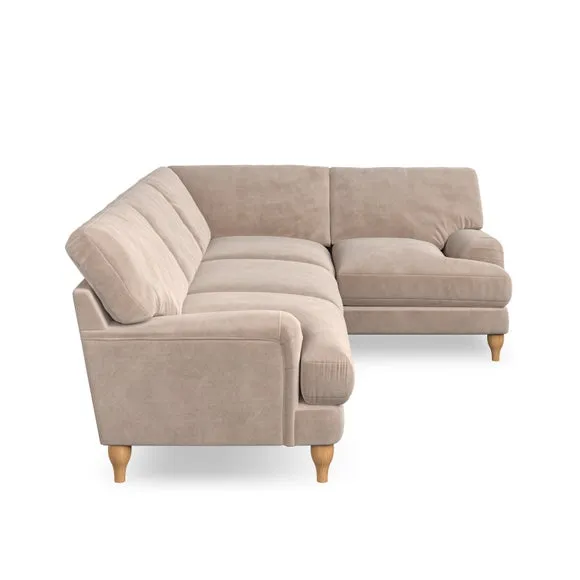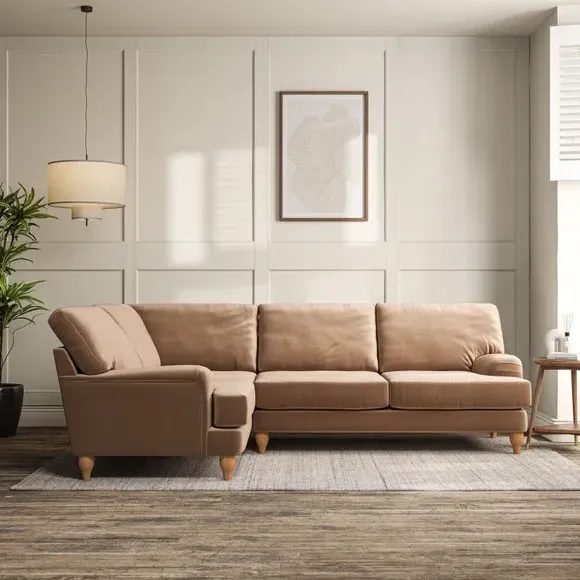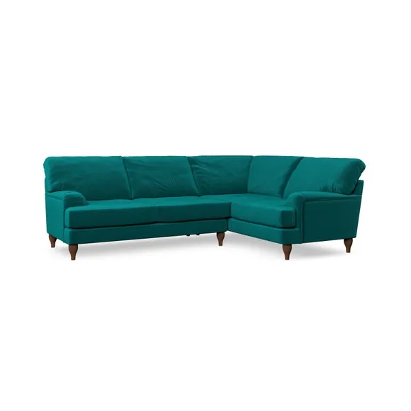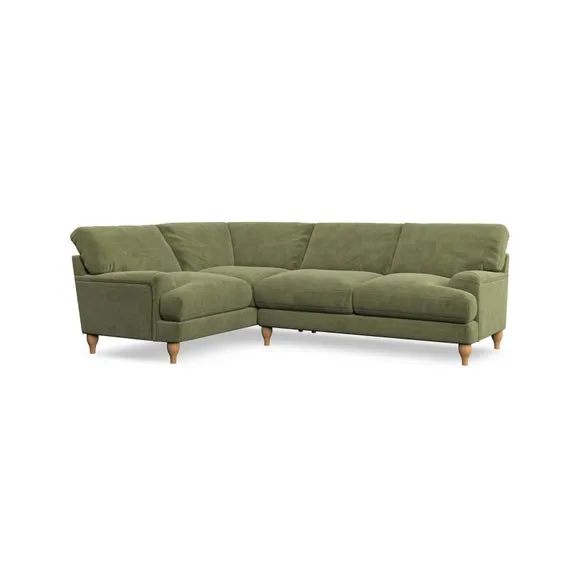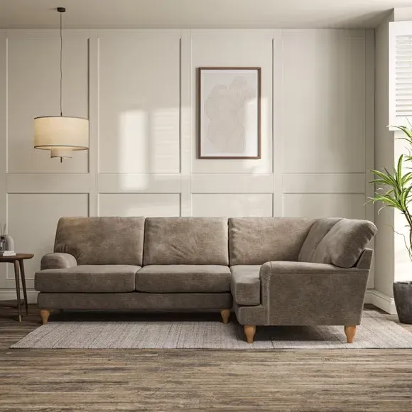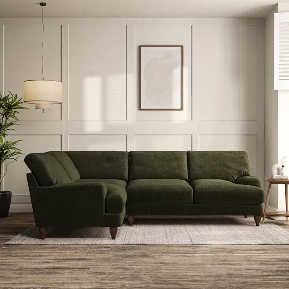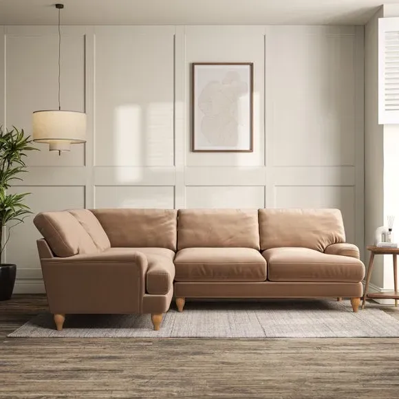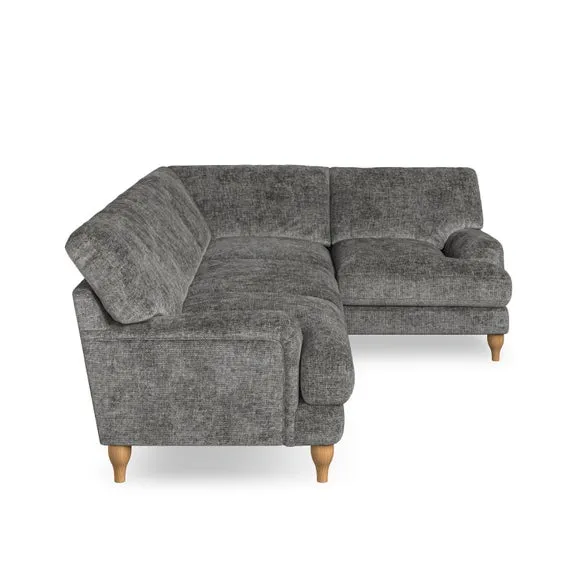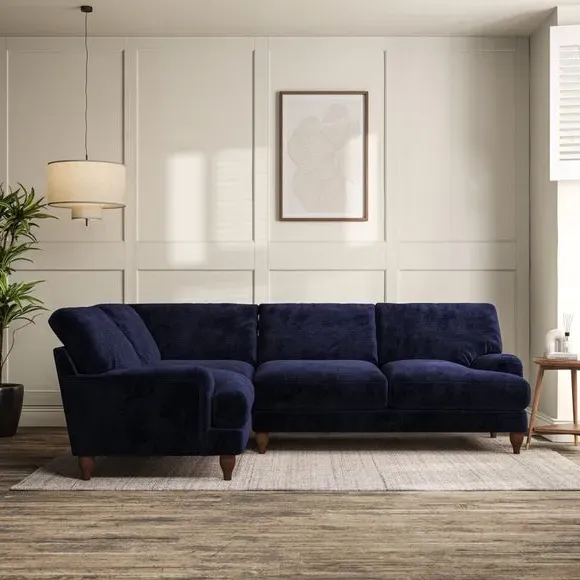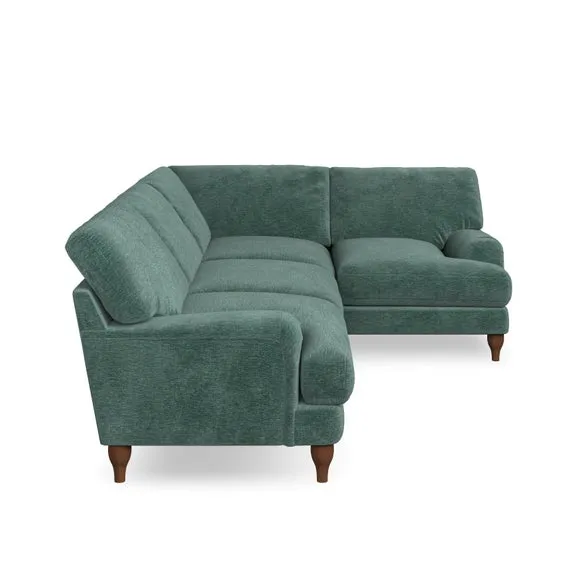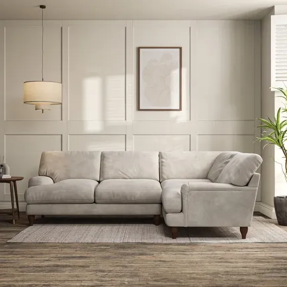 * Classic style* Bandaged Arms* Pleated details* Serpentine seat springs* Choose your orientation, support, fabric and leg colour This sofa features bandaged arms with pleat details and a lugged seat, offering a unique and stylish look. Built for longevity and comfort, it includes serpentine seat springs and deep fibre-filled back cushions for excellent support. You can customise your comfort by choosing between a low-maintenance foam seat or the inviting ‘Qualofill Blue’ fibre seat, made from 100% recycled polyester. The ‘T’ cushion seat and arm design ensure a compact and contemporary feel, complemented by self-sewn seat and back cushions. Choose from a right hand or left hand facing corner to fit your space perfectly. Additionally, you can select your preferred fabric and leg colour to perfectly match your living space.