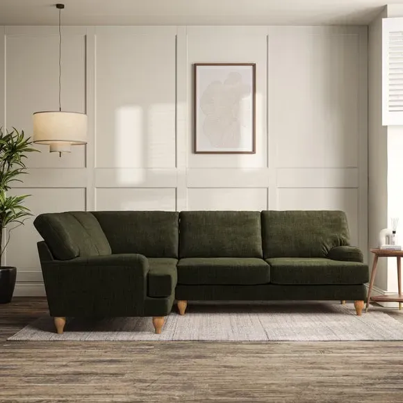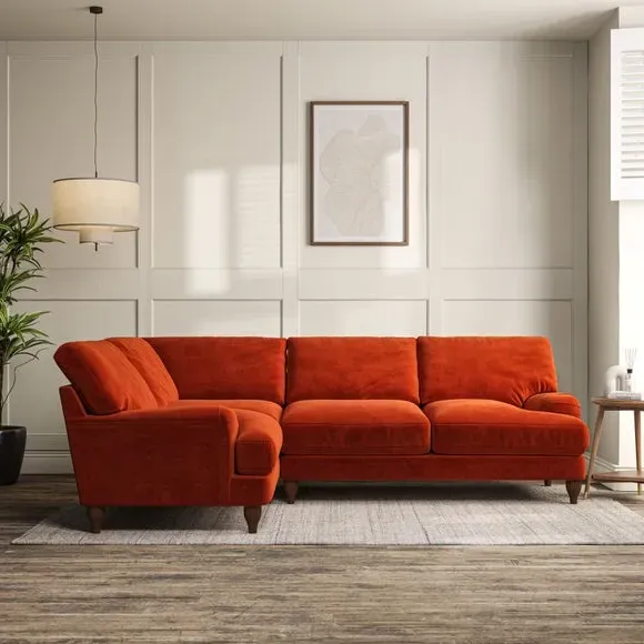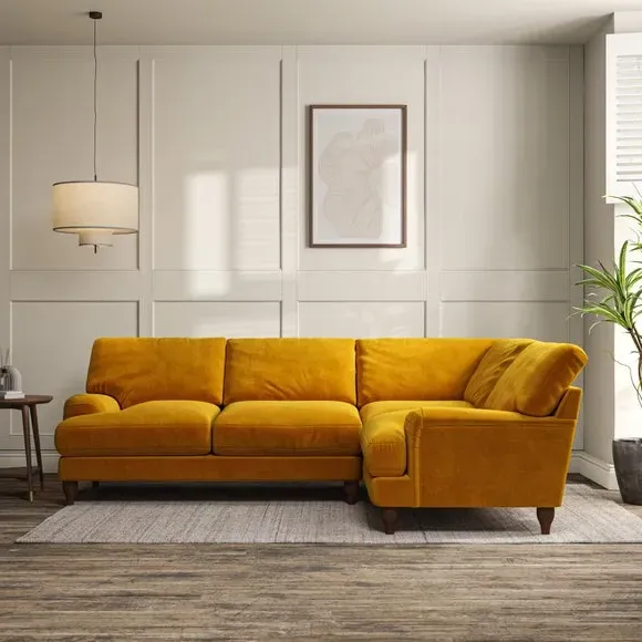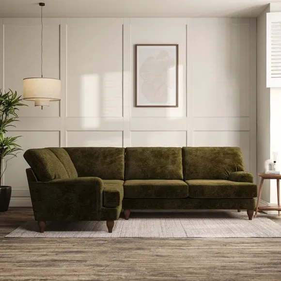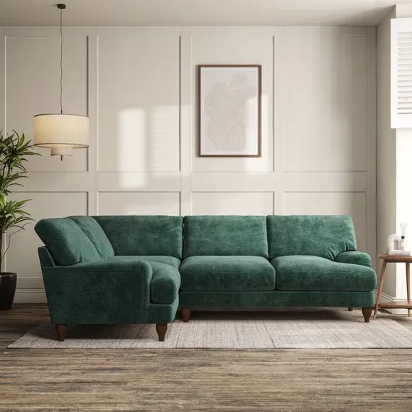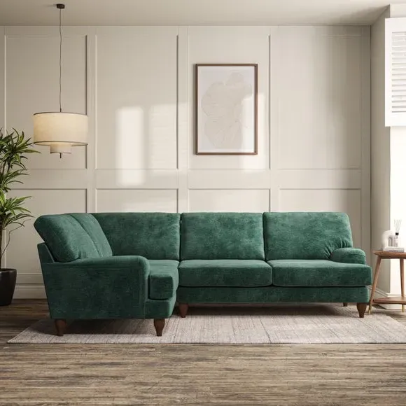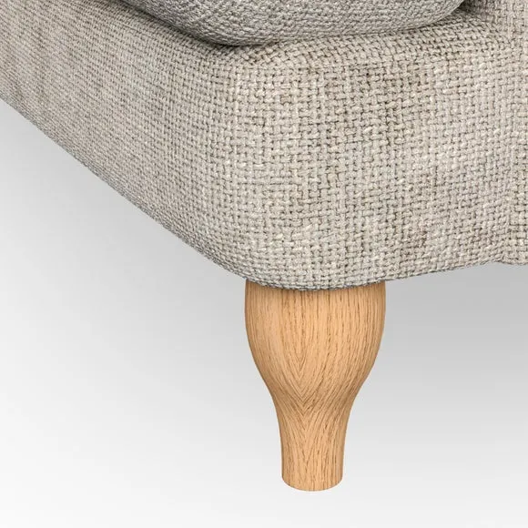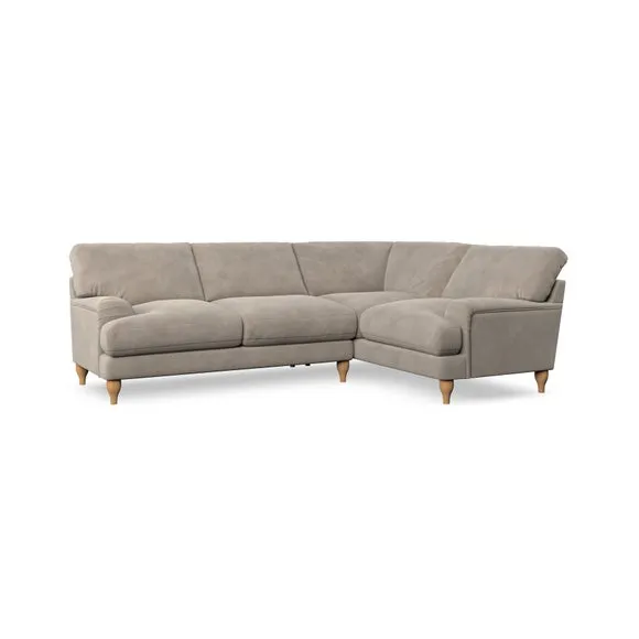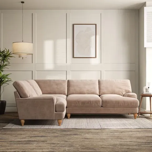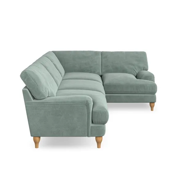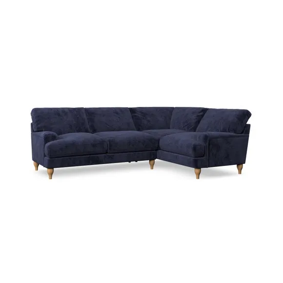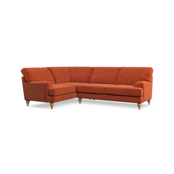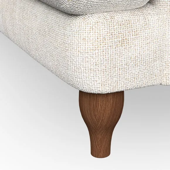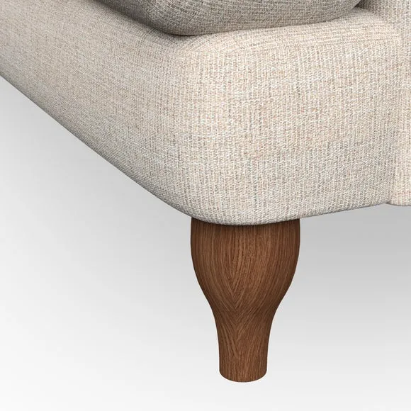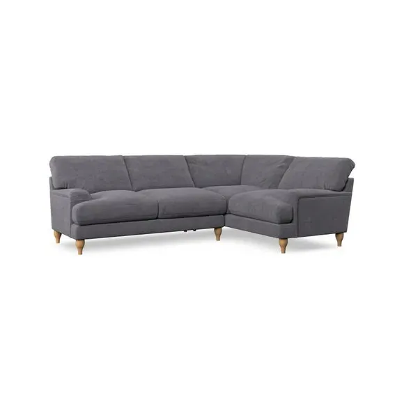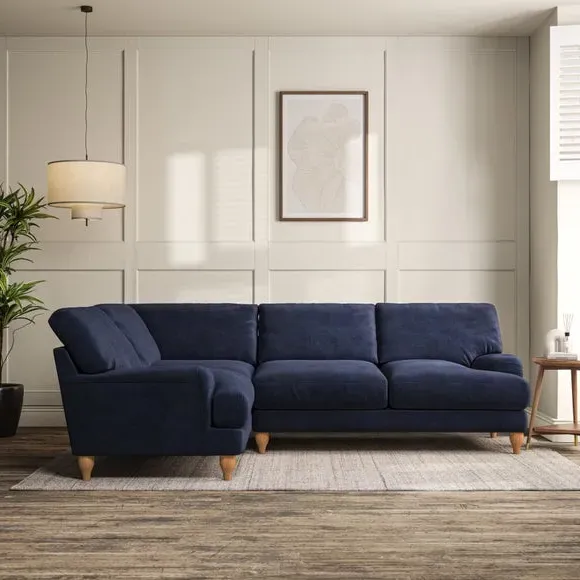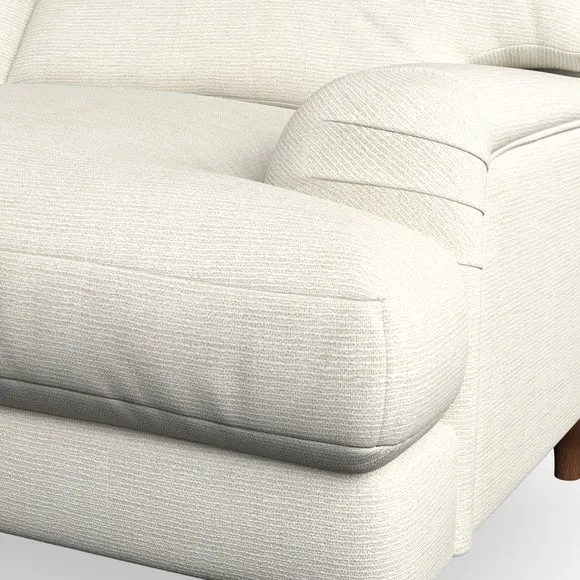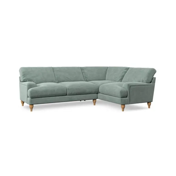 * Classic style* Bandaged Arms* Pleated details* Serpentine seat springs* Choose your orientation, support, fabric and leg colour This sofa features bandaged arms with pleat details and a lugged seat, offering a unique and stylish look. Built for longevity and comfort, it includes serpentine seat springs and deep fibre-filled back cushions for excellent support. You can customise your comfort by choosing between a low-maintenance foam seat or the inviting ‘Qualofill Blue’ fibre seat, made from 100% recycled polyester. The ‘T’ cushion seat and arm design ensure a compact and contemporary feel, complemented by self-sewn seat and back cushions. Choose from a right hand or left hand facing corner to fit your space perfectly. Additionally, you can select your preferred fabric and leg colour to perfectly match your living space.
