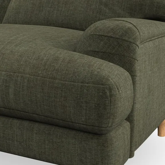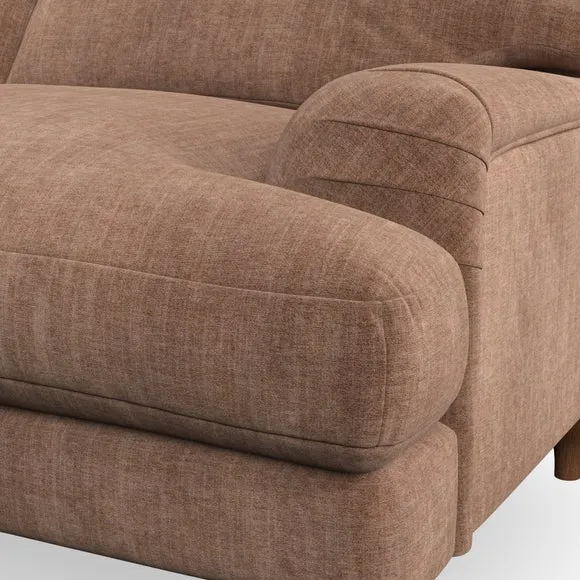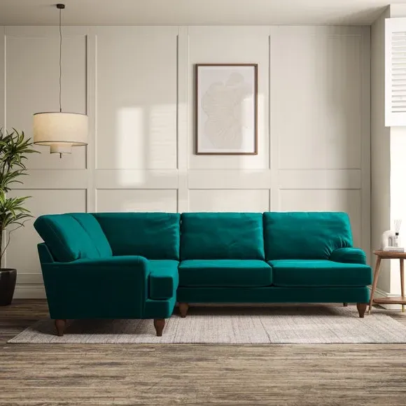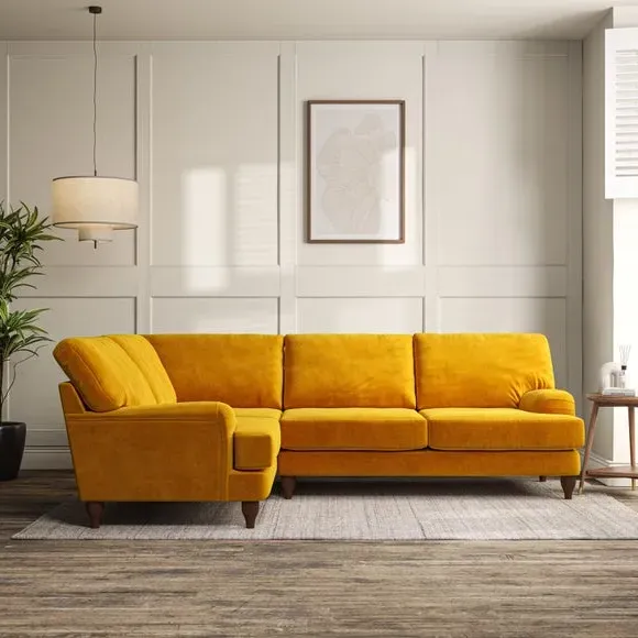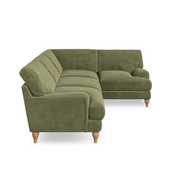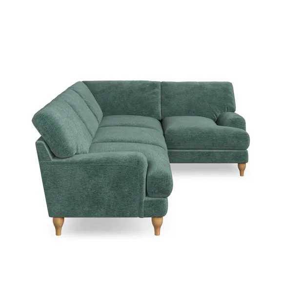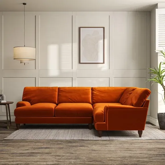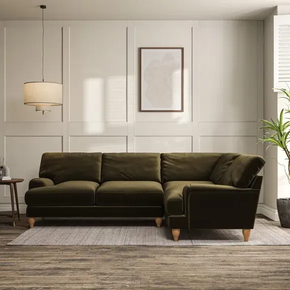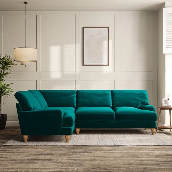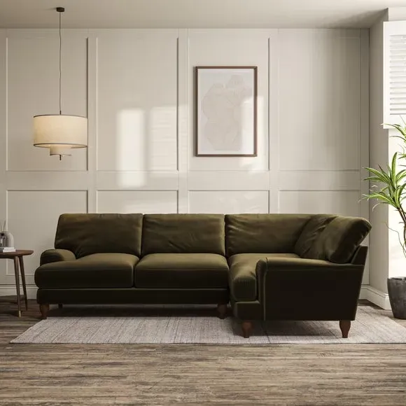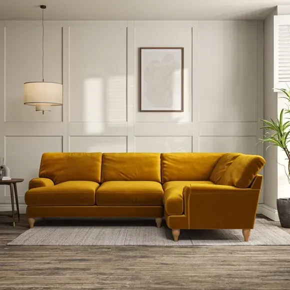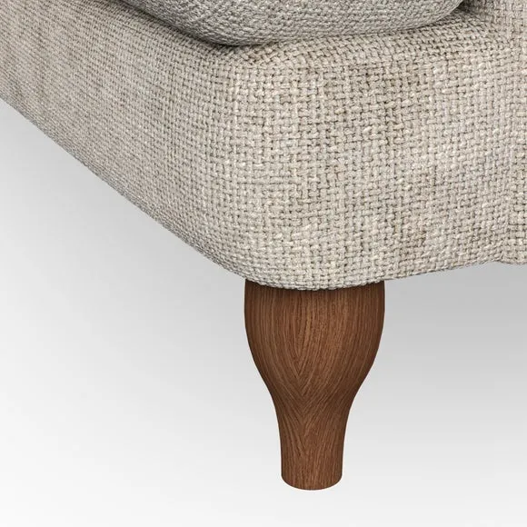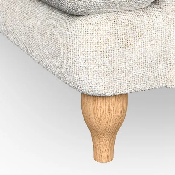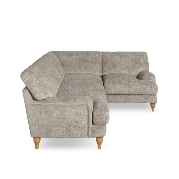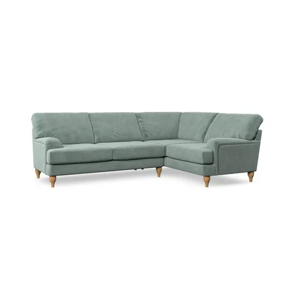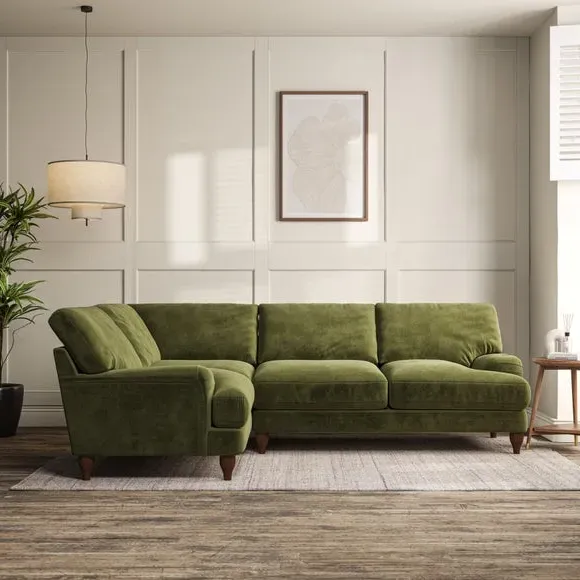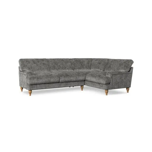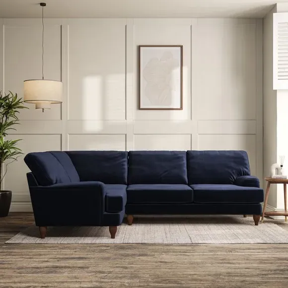 * Classic style* Bandaged Arms* Pleated details* Serpentine seat springs* Choose your orientation, support, fabric and leg colour This sofa features bandaged arms with pleat details and a lugged seat, offering a unique and stylish look. Built for longevity and comfort, it includes serpentine seat springs and deep fibre-filled back cushions for excellent support. You can customise your comfort by choosing between a low-maintenance foam seat or the inviting ‘Qualofill Blue’ fibre seat, made from 100% recycled polyester. The ‘T’ cushion seat and arm design ensure a compact and contemporary feel, complemented by self-sewn seat and back cushions. Choose from a right hand or left hand facing corner to fit your space perfectly. Additionally, you can select your preferred fabric and leg colour to perfectly match your living space.