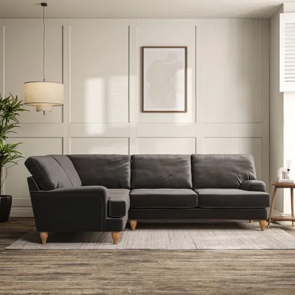 Home  /  Living Room  /  4-Seater Corner Sofa with Pleated Arms - Charcoal