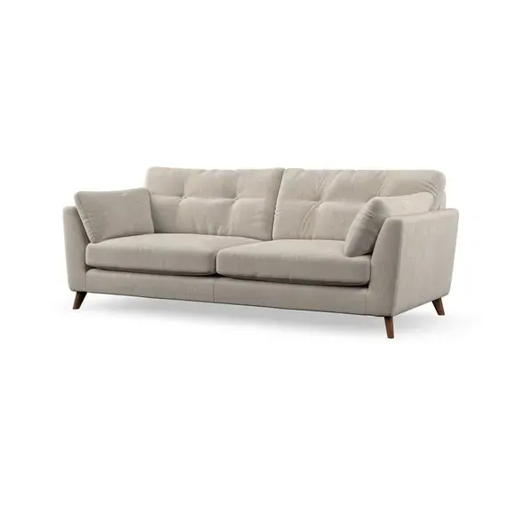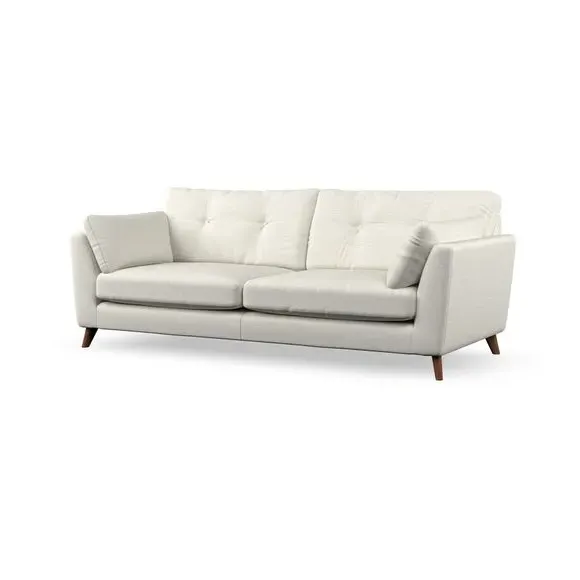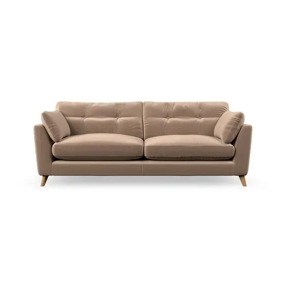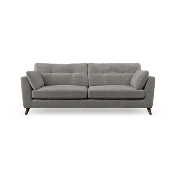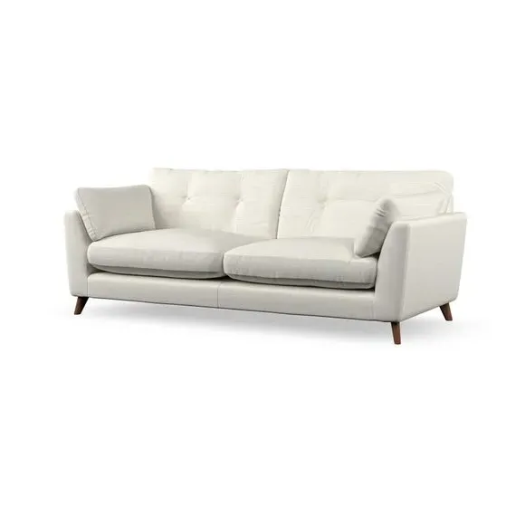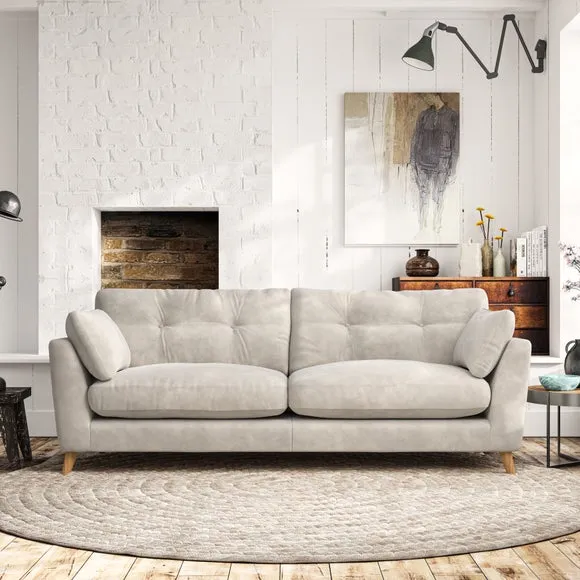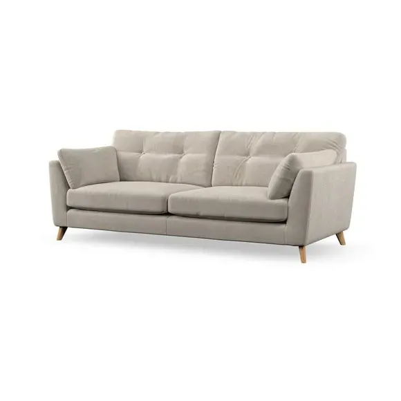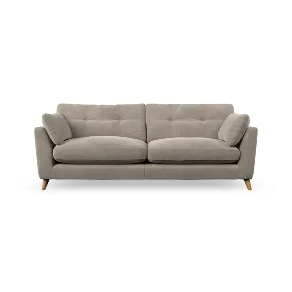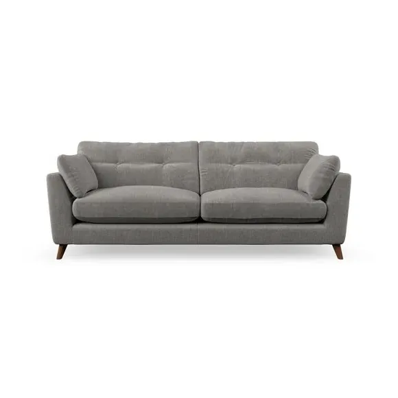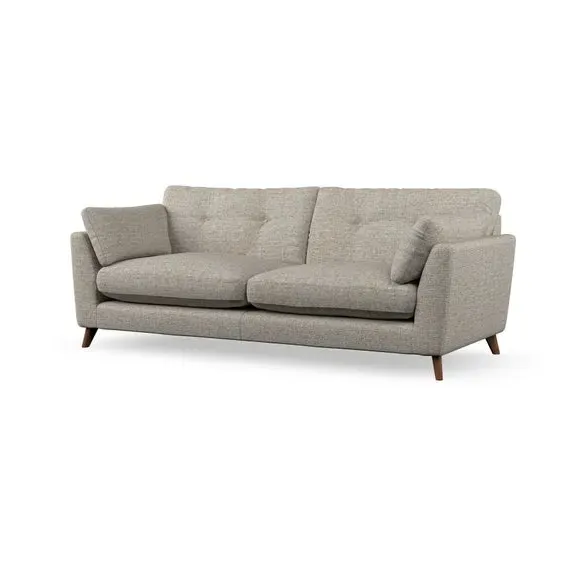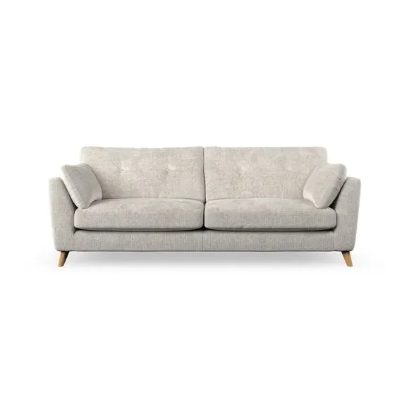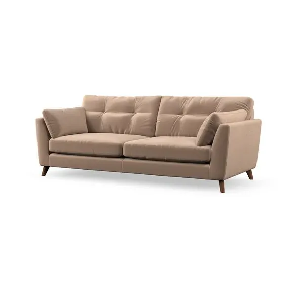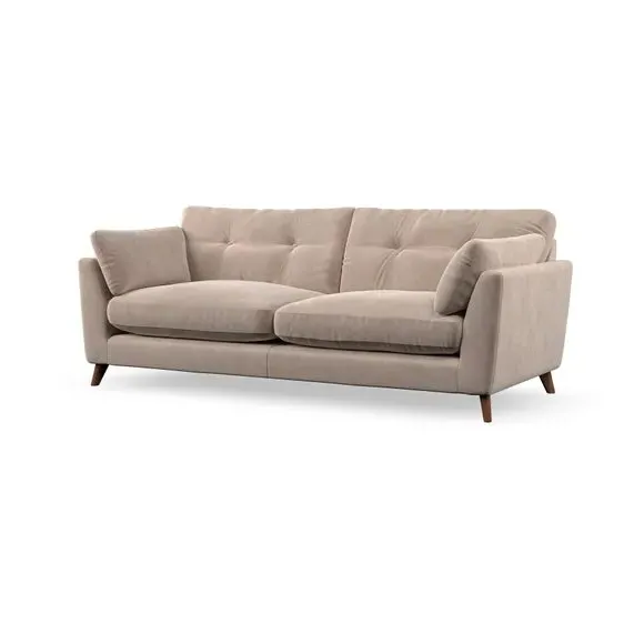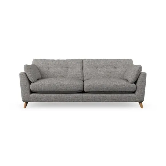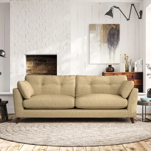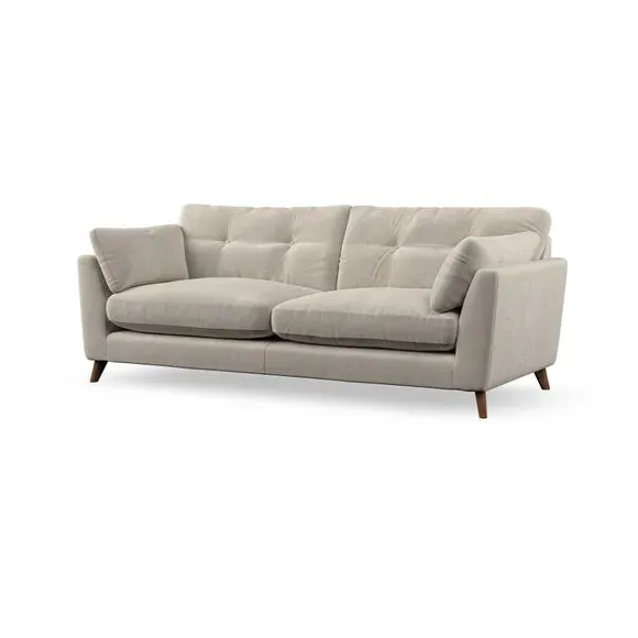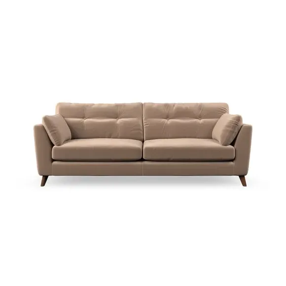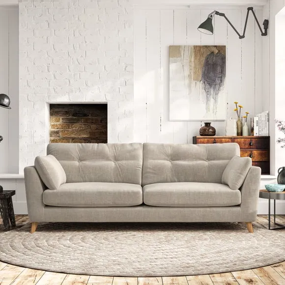 * Mid-century style* Pillow top arms* Button pull details* Choose fabric type, leg colour and cushion filling With its high legs and plush fibre-filled arm pads, this sofa combines sleek design with an inviting feel. Button-pull details on the supportive, fibre-filled back cushions add a touch of refinement, while the higher back cushions provide excellent support for your back and shoulders. Customise your Peyton sofa by choosing between a low-maintenance foam seat or a more relaxed 'Qualofill Blue' fibre seat for a softer sit. Built with serpentine seat springs for durability and long-lasting comfort, this sofa also features splayed hardwood legs available in two finishes for a personal touch.