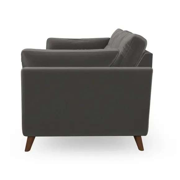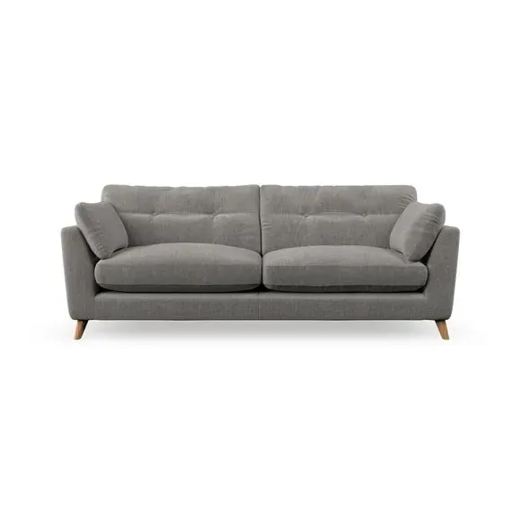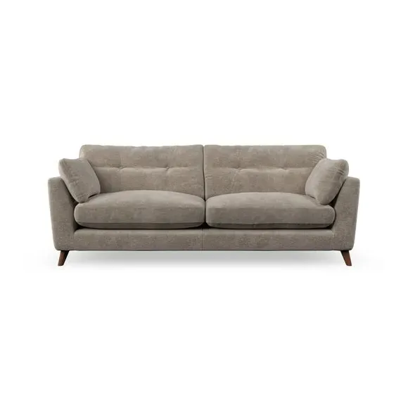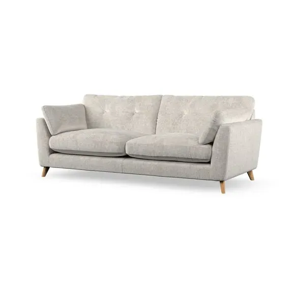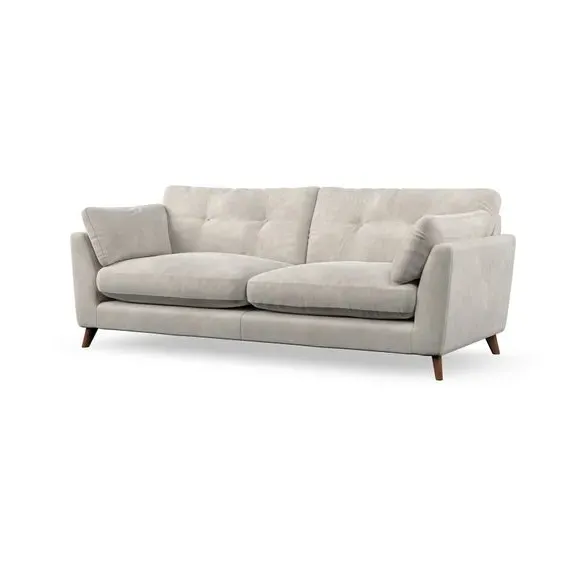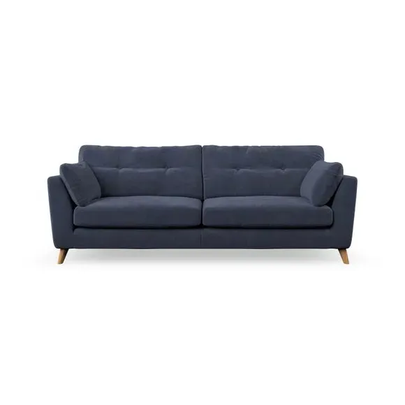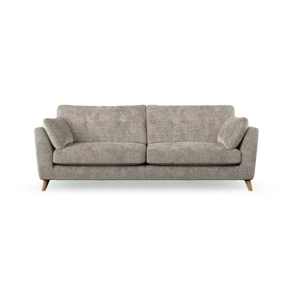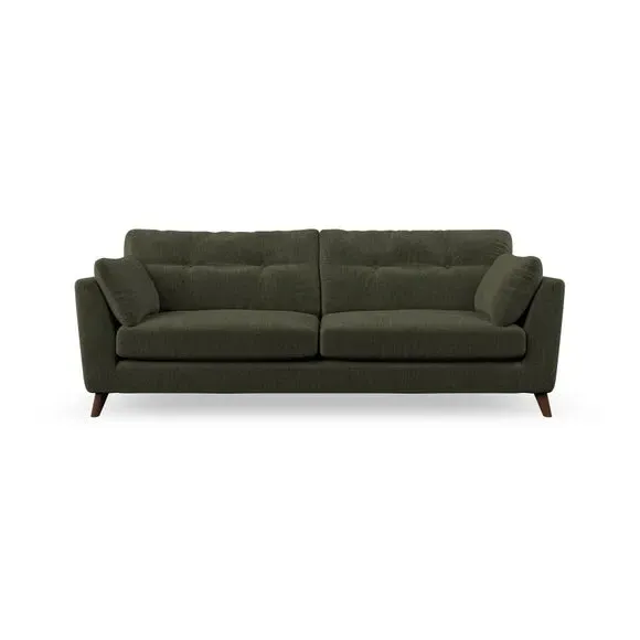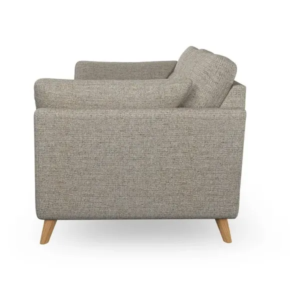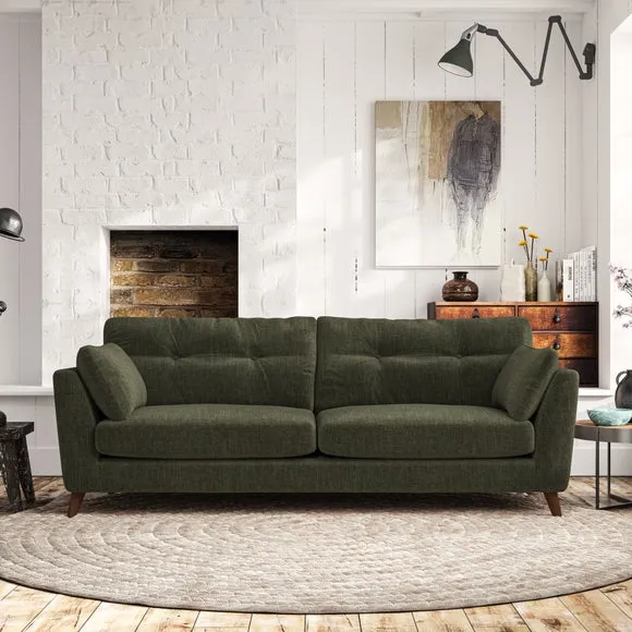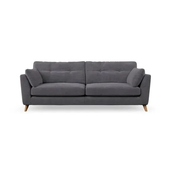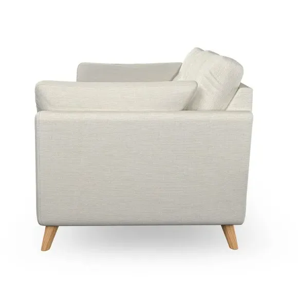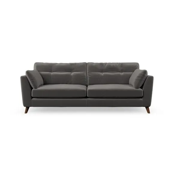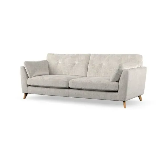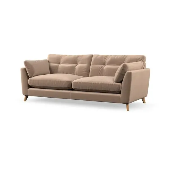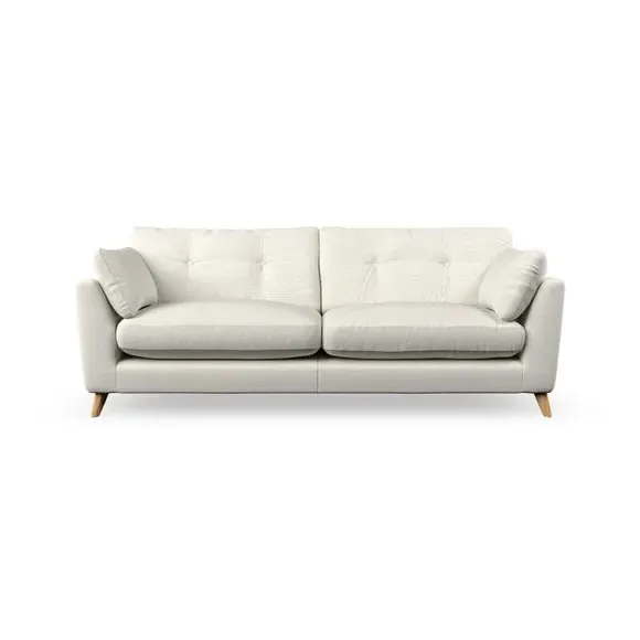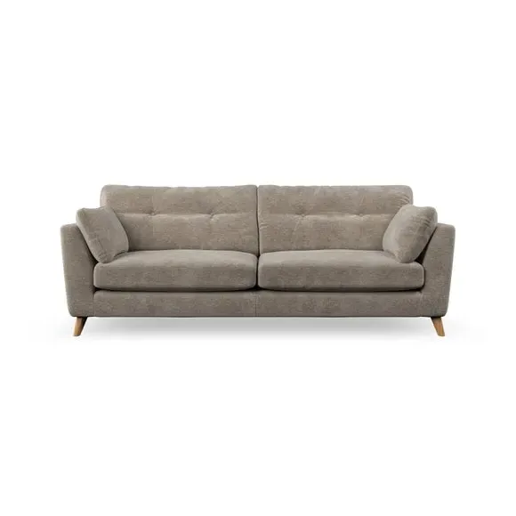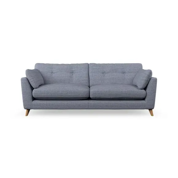 * Mid-century style* Pillow top arms* Button pull details* Choose fabric type, leg colour and cushion filling With its high legs and plush fibre-filled arm pads, this sofa combines sleek design with an inviting feel. Button-pull details on the supportive, fibre-filled back cushions add a touch of refinement, while the higher back cushions provide excellent support for your back and shoulders. Customise your Peyton sofa by choosing between a low-maintenance foam seat or a more relaxed 'Qualofill Blue' fibre seat for a softer sit. Built with serpentine seat springs for durability and long-lasting comfort, this sofa also features splayed hardwood legs available in two finishes for a personal touch.