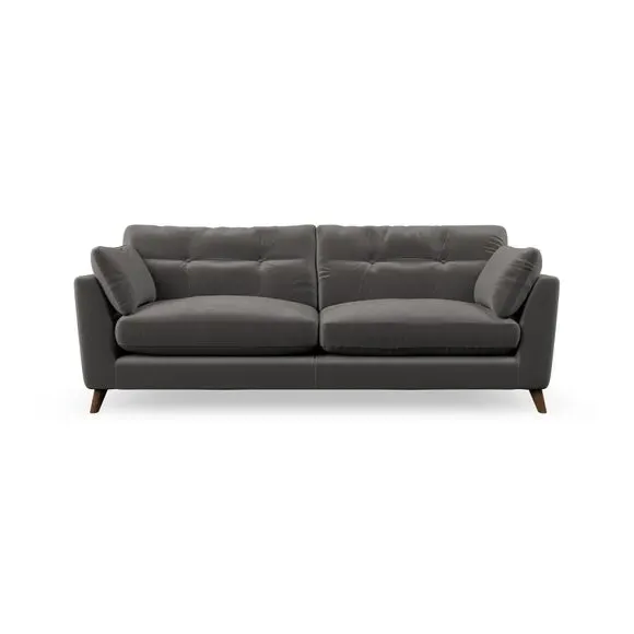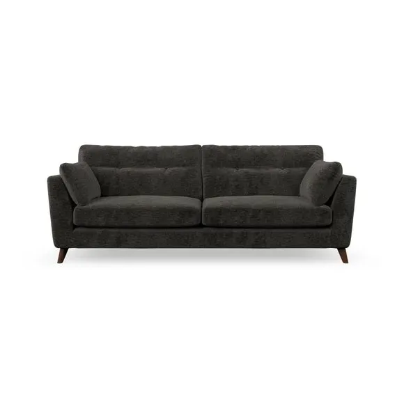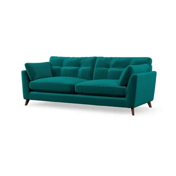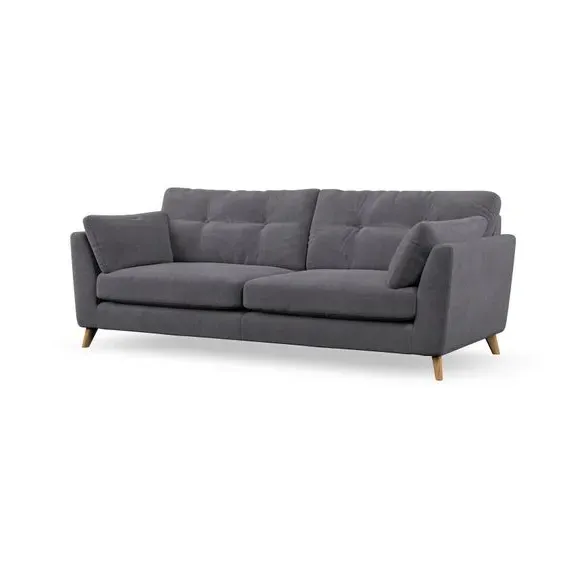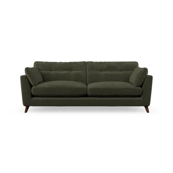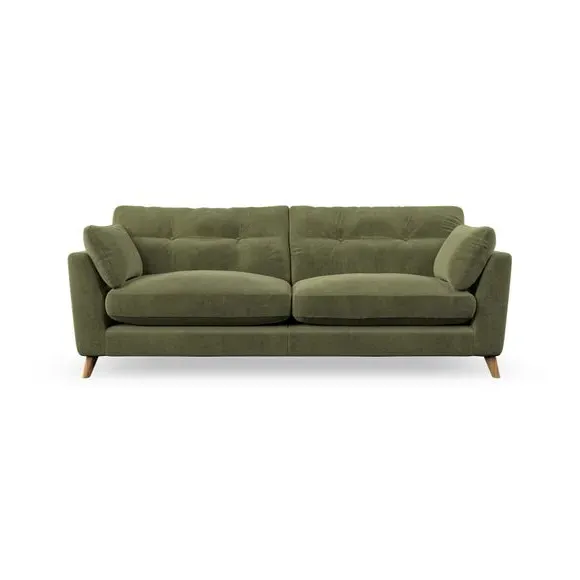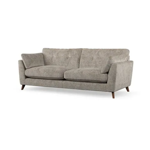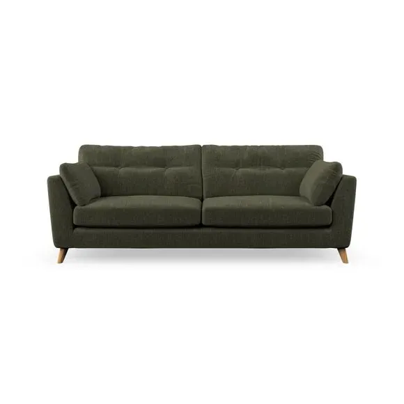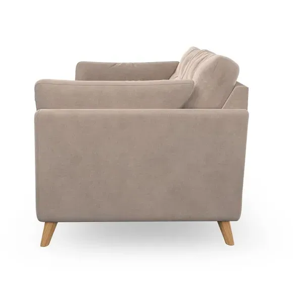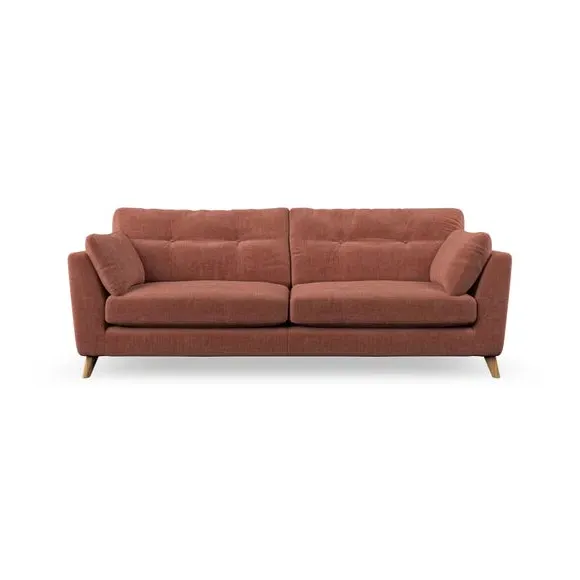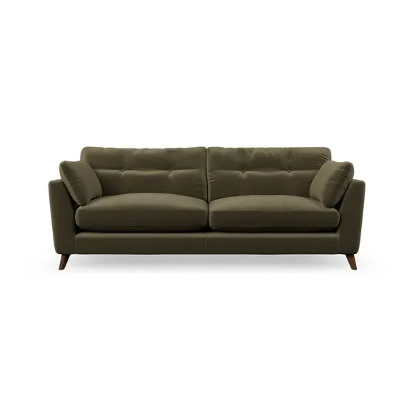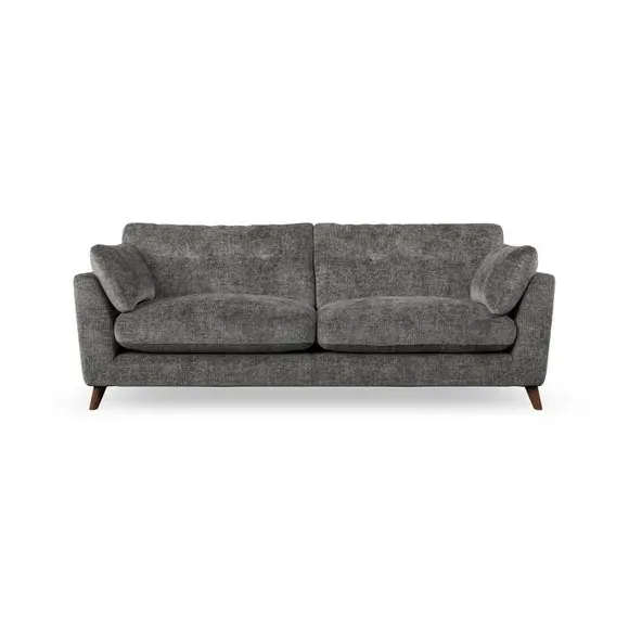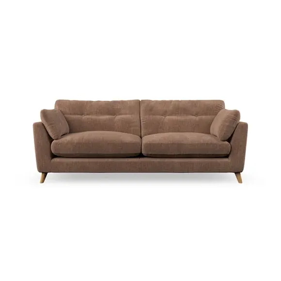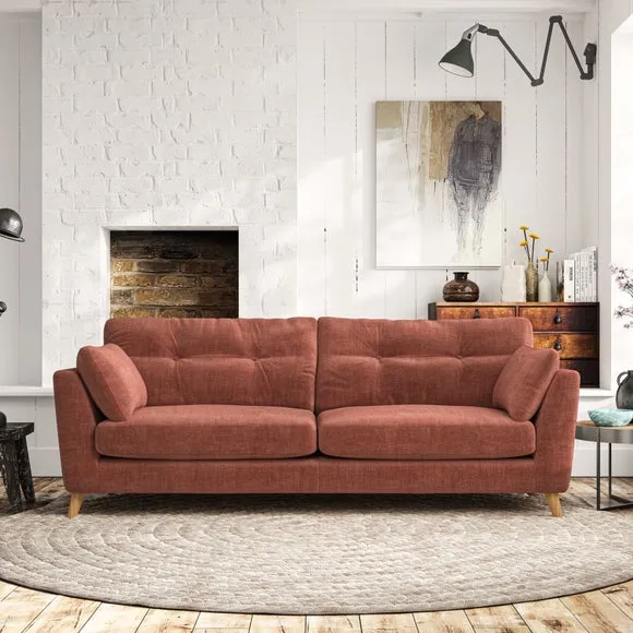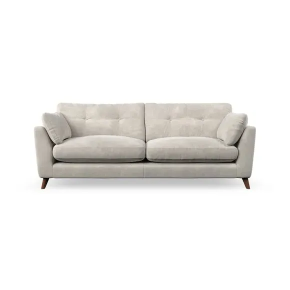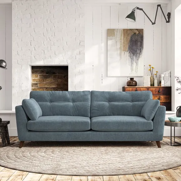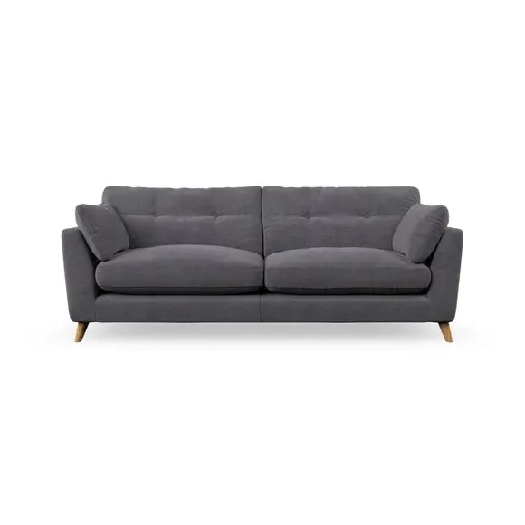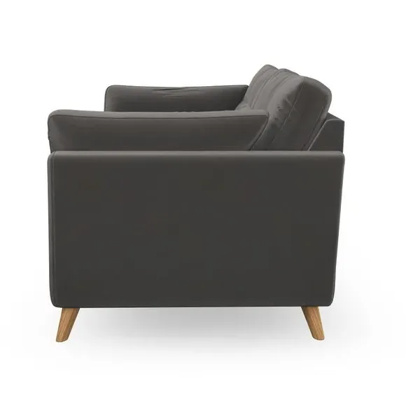 * Mid-century style* Pillow top arms* Button pull details* Choose fabric type, leg colour and cushion filling With its high legs and plush fibre-filled arm pads, this sofa combines sleek design with an inviting feel. Button-pull details on the supportive, fibre-filled back cushions add a touch of refinement, while the higher back cushions provide excellent support for your back and shoulders. Customise your Peyton sofa by choosing between a low-maintenance foam seat or a more relaxed 'Qualofill Blue' fibre seat for a softer sit. Built with serpentine seat springs for durability and long-lasting comfort, this sofa also features splayed hardwood legs available in two finishes for a personal touch.