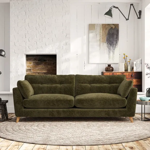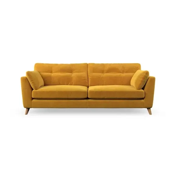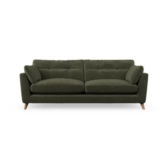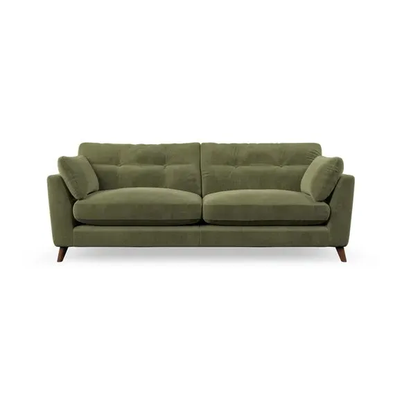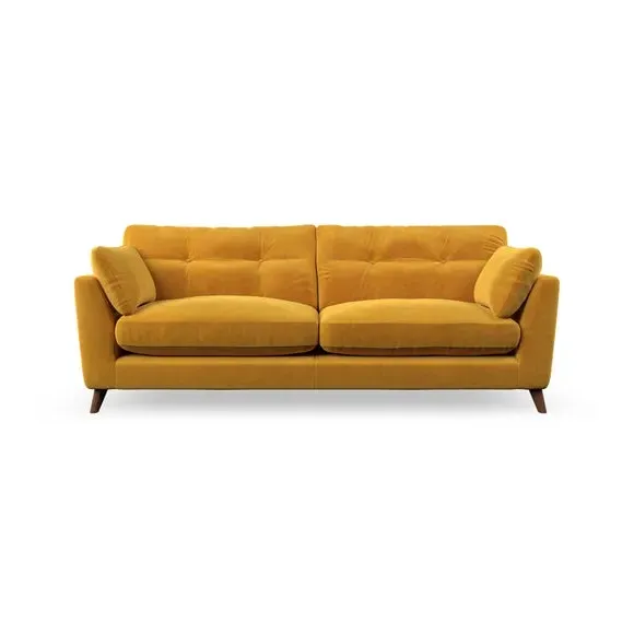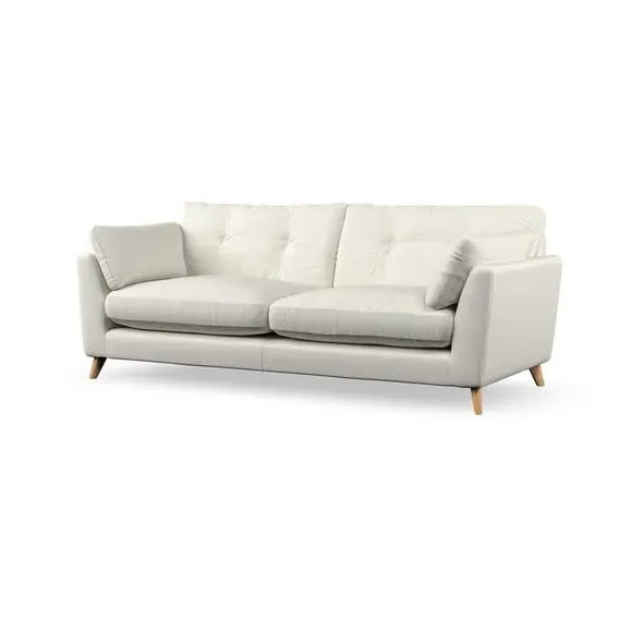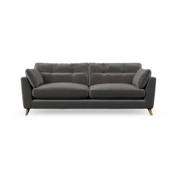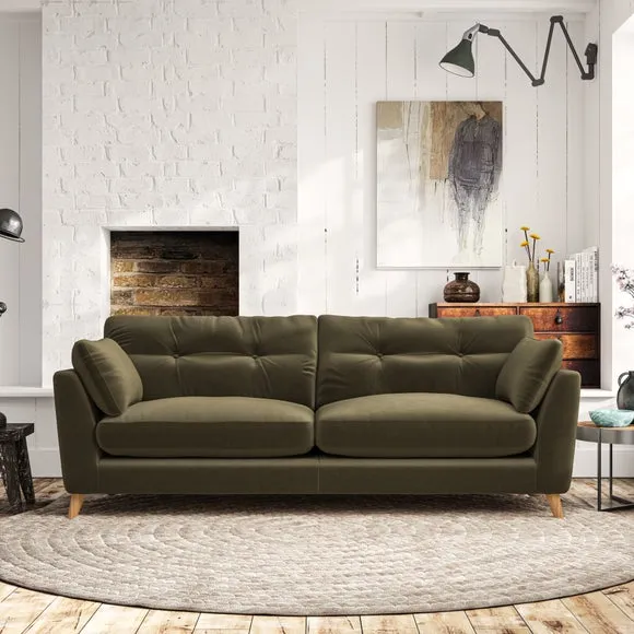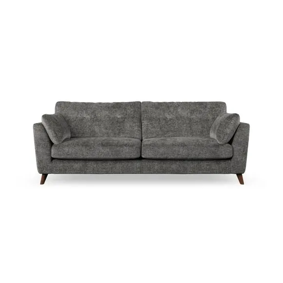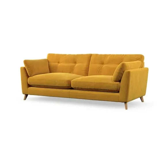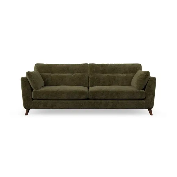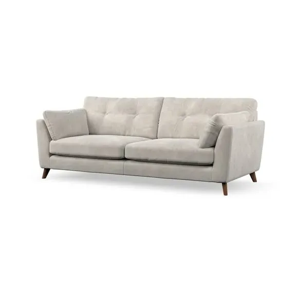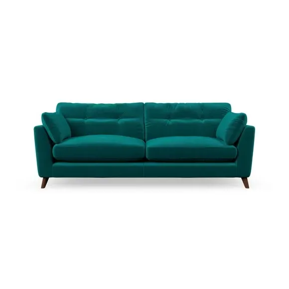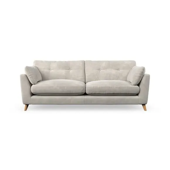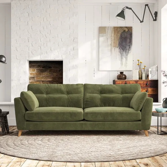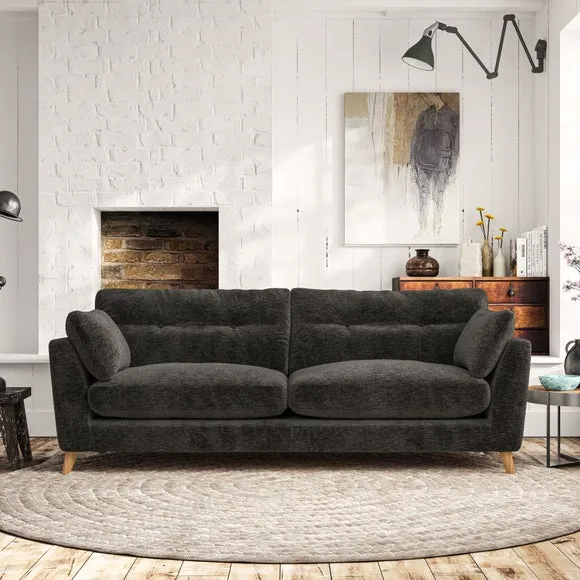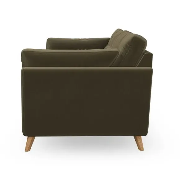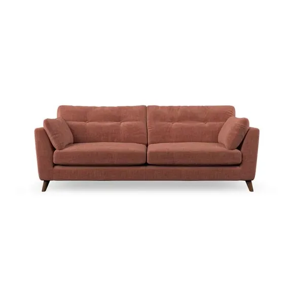 * Mid-century style* Pillow top arms* Button pull details* Choose fabric type, leg colour and cushion filling With its high legs and plush fibre-filled arm pads, this sofa combines sleek design with an inviting feel. Button-pull details on the supportive, fibre-filled back cushions add a touch of refinement, while the higher back cushions provide excellent support for your back and shoulders. Customise your Peyton sofa by choosing between a low-maintenance foam seat or a more relaxed 'Qualofill Blue' fibre seat for a softer sit. Built with serpentine seat springs for durability and long-lasting comfort, this sofa also features splayed hardwood legs available in two finishes for a personal touch.