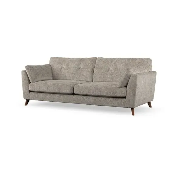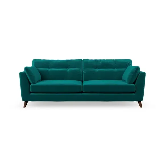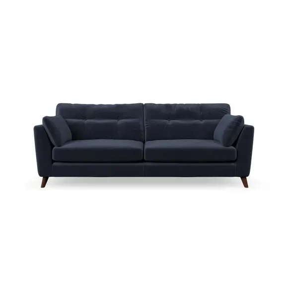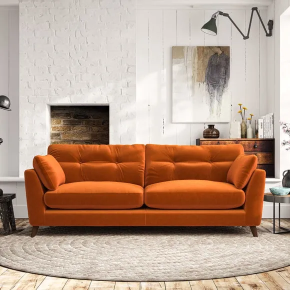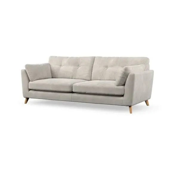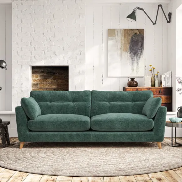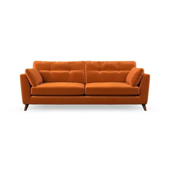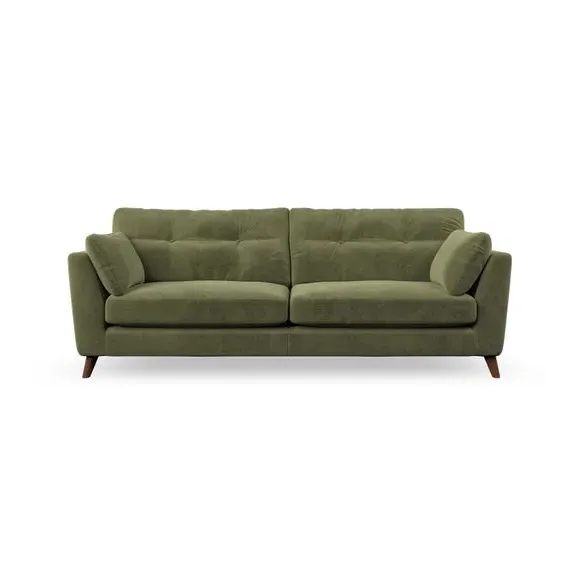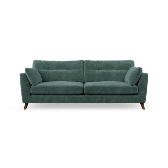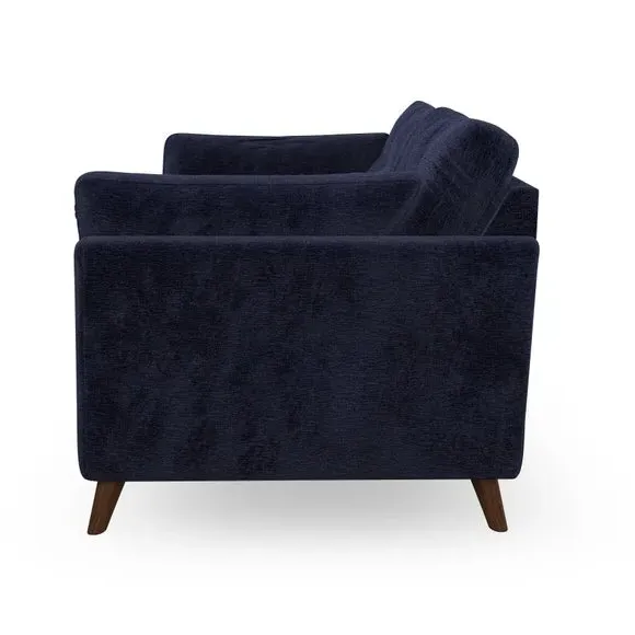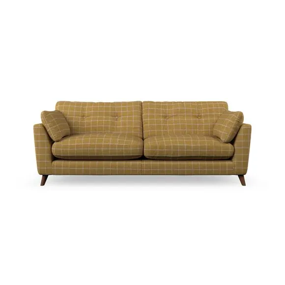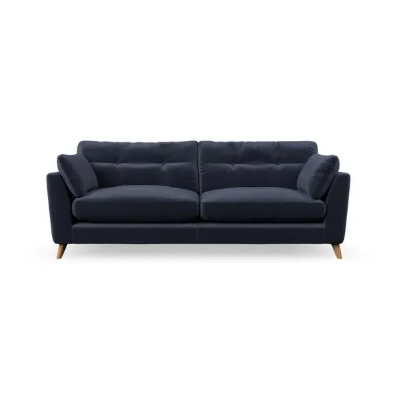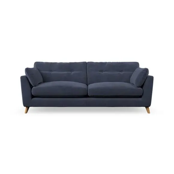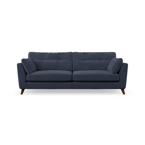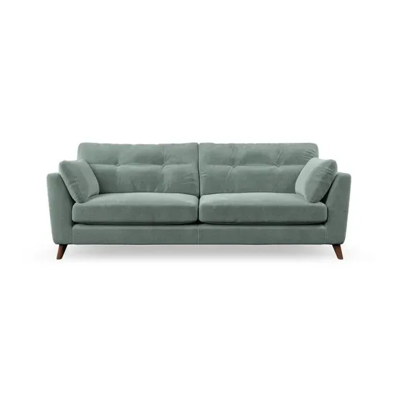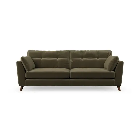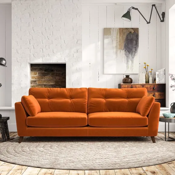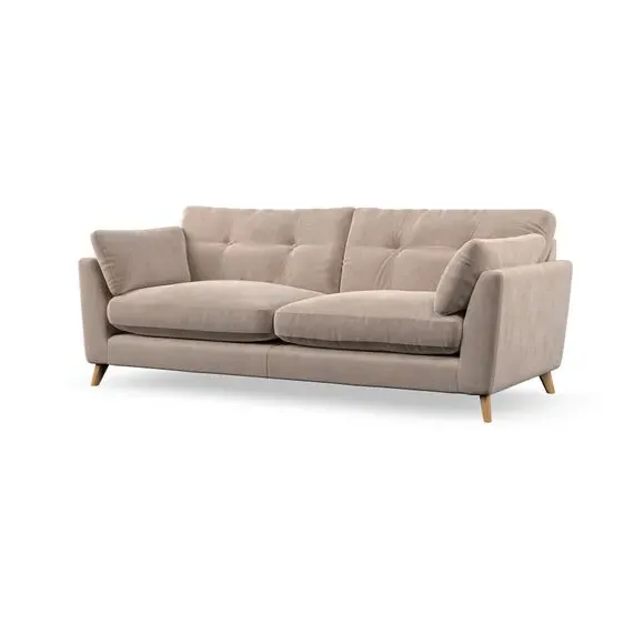 * Mid-century style* Pillow top arms* Button pull details* Choose fabric type, leg colour and cushion filling With its high legs and plush fibre-filled arm pads, this sofa combines sleek design with an inviting feel. Button-pull details on the supportive, fibre-filled back cushions add a touch of refinement, while the higher back cushions provide excellent support for your back and shoulders. Customise your Peyton sofa by choosing between a low-maintenance foam seat or a more relaxed 'Qualofill Blue' fibre seat for a softer sit. Built with serpentine seat springs for durability and long-lasting comfort, this sofa also features splayed hardwood legs available in two finishes for a personal touch.