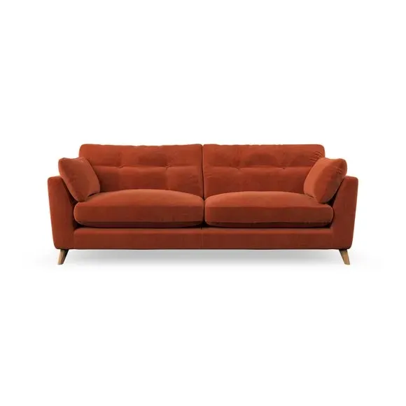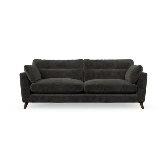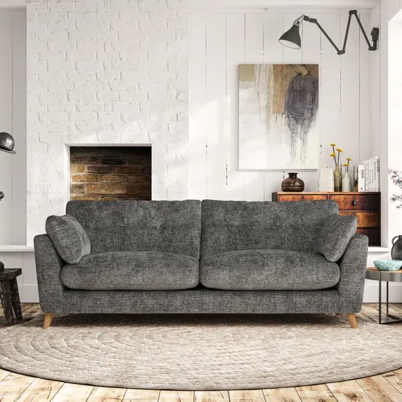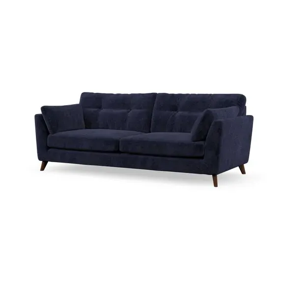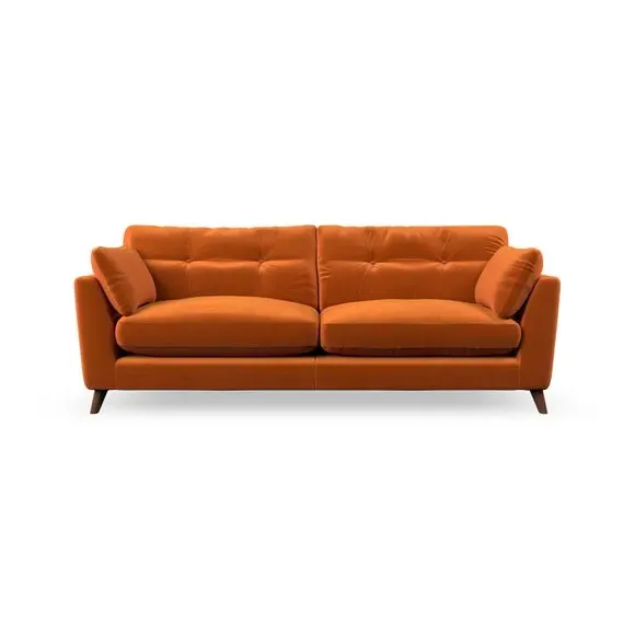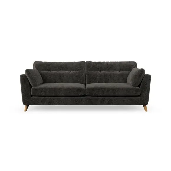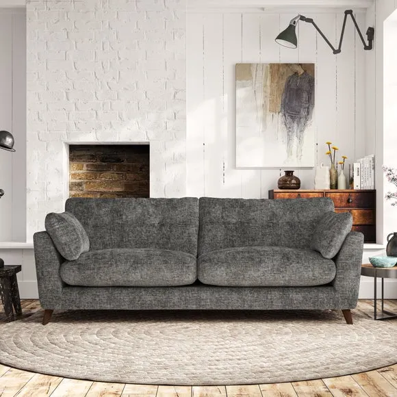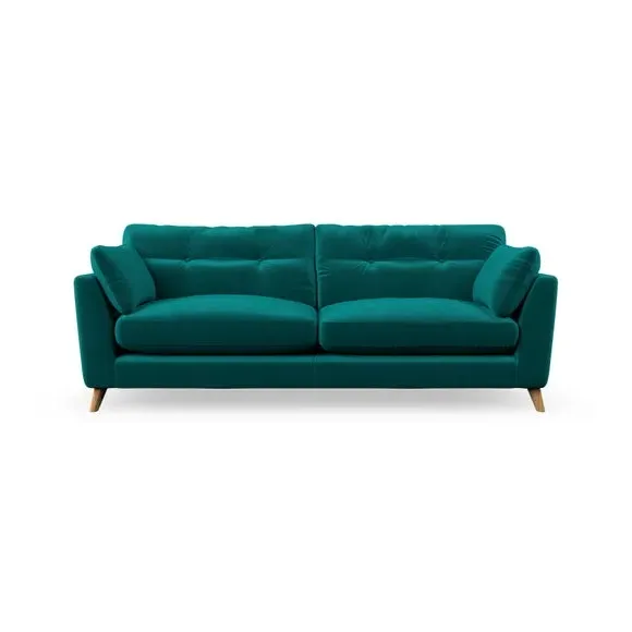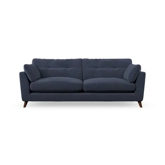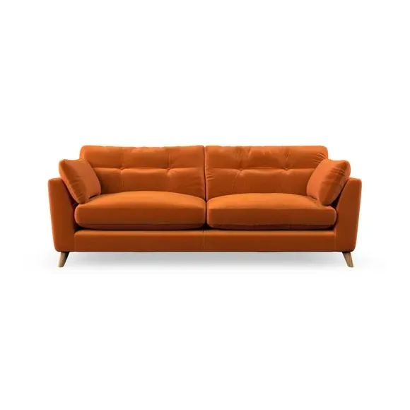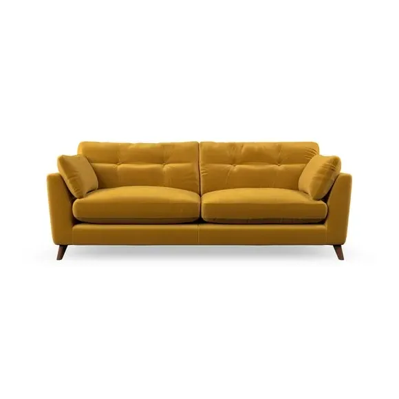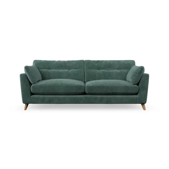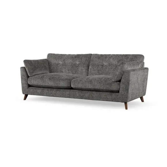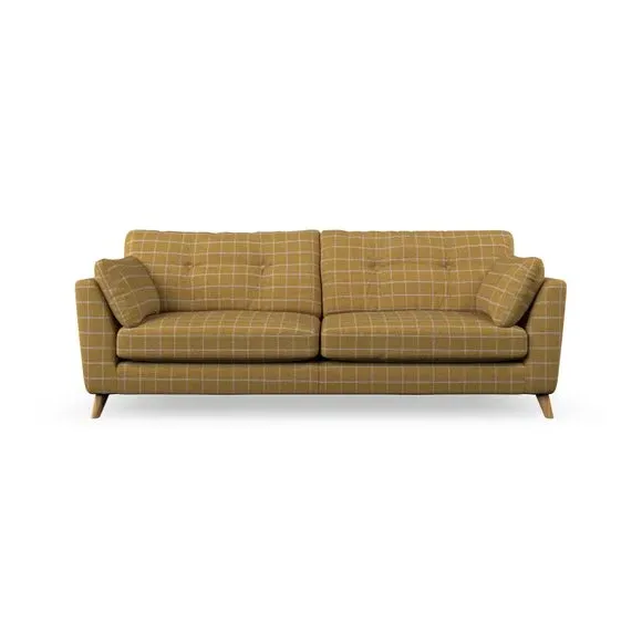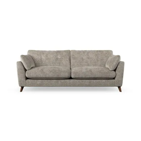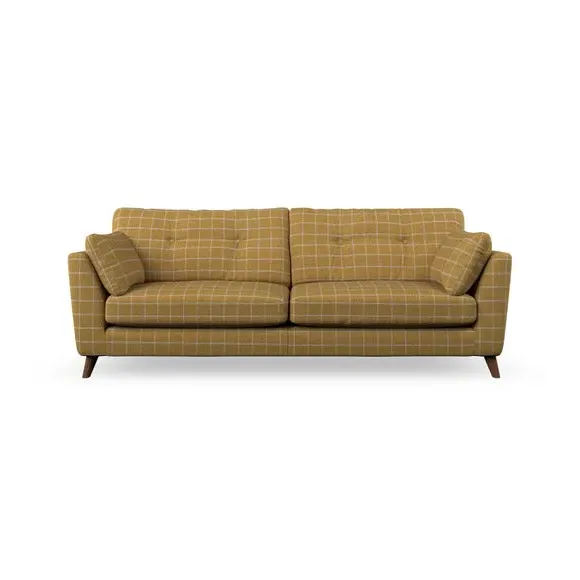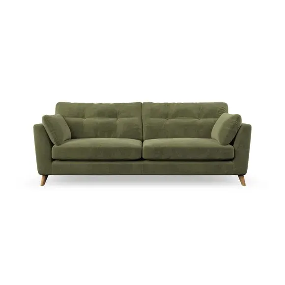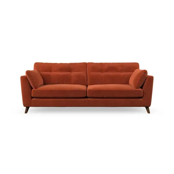 * Mid-century style* Pillow top arms* Button pull details* Choose fabric type, leg colour and cushion filling With its high legs and plush fibre-filled arm pads, this sofa combines sleek design with an inviting feel. Button-pull details on the supportive, fibre-filled back cushions add a touch of refinement, while the higher back cushions provide excellent support for your back and shoulders. Customise your Peyton sofa by choosing between a low-maintenance foam seat or a more relaxed 'Qualofill Blue' fibre seat for a softer sit. Built with serpentine seat springs for durability and long-lasting comfort, this sofa also features splayed hardwood legs available in two finishes for a personal touch.