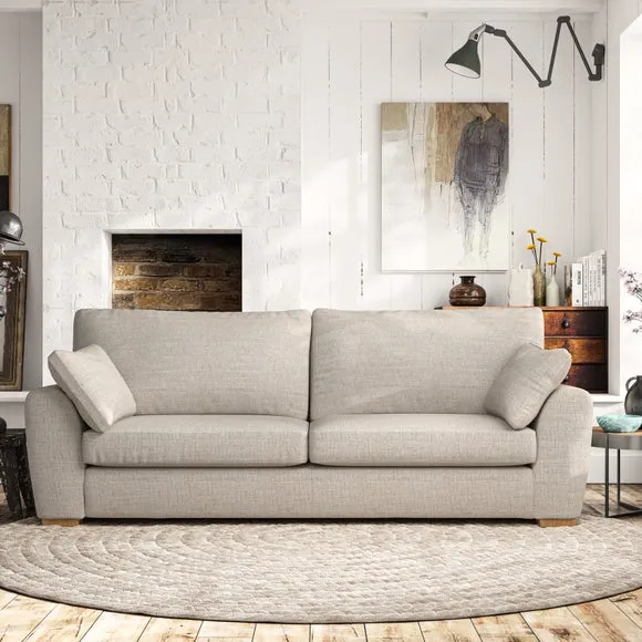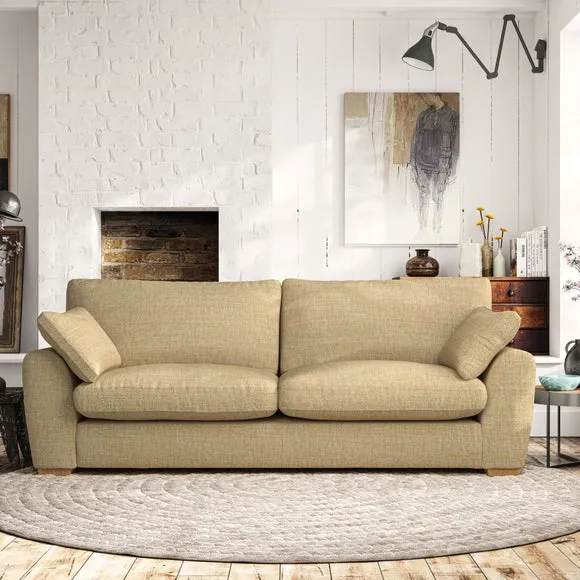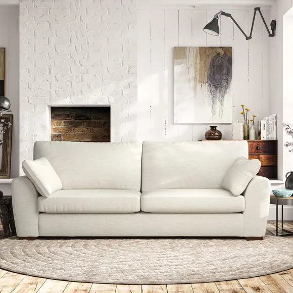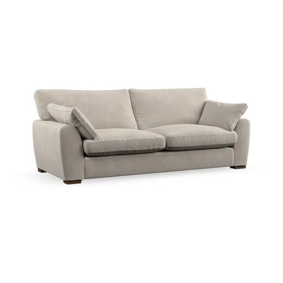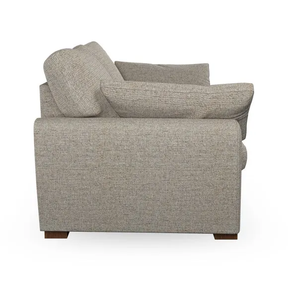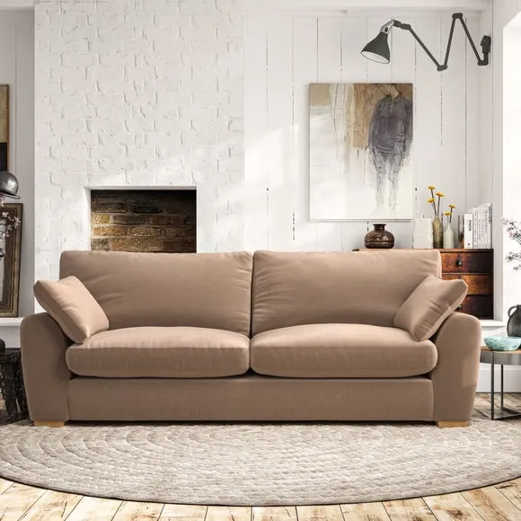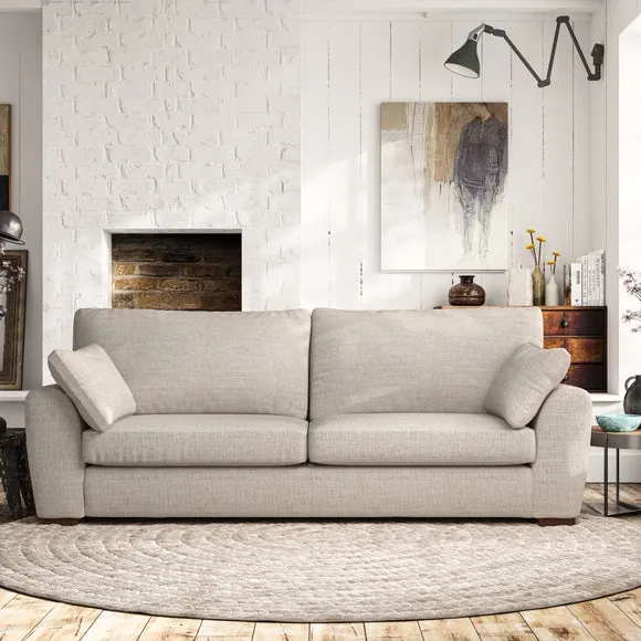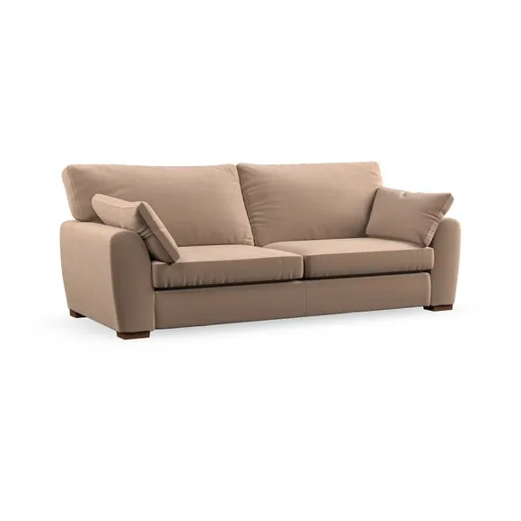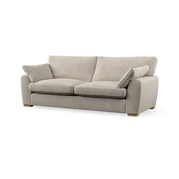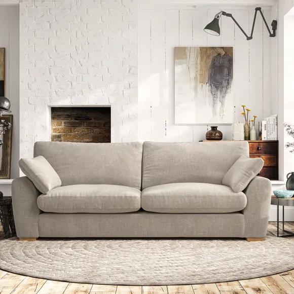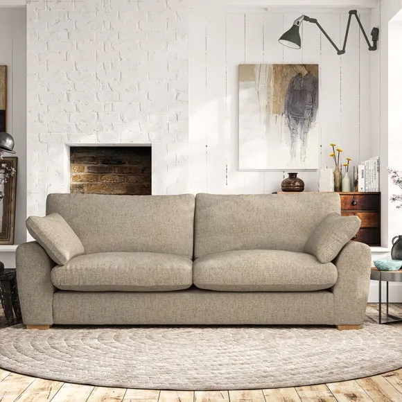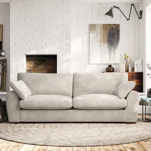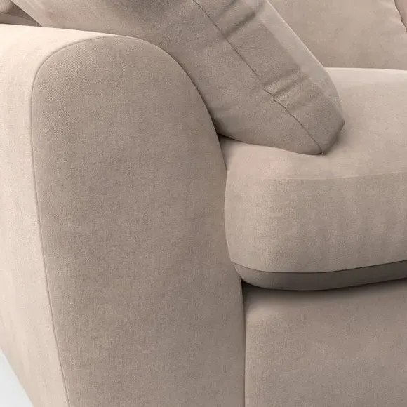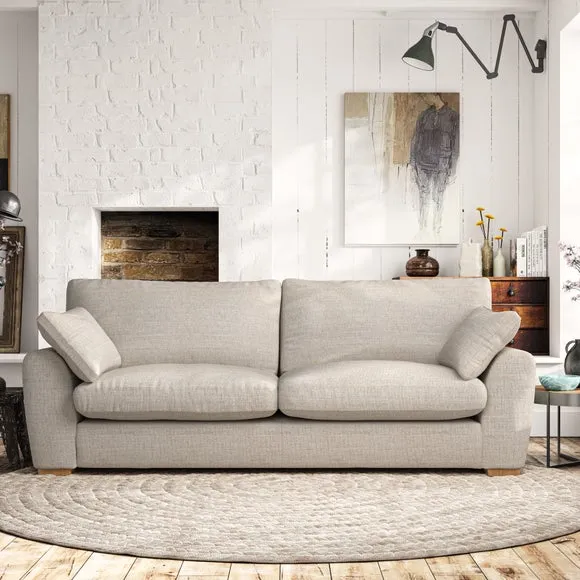 The sofa combines generous proportions with soft pebble-shaped arms and loungey fibre-filled arm pads. Its higher back cushions, filled with soft fibre, provide excellent support for your back and shoulders, while the serpentine seat springs ensure durability and long-term comfort. The removable arms make it simpler to navigate through smaller spaces, and you can choose between supportive foam or relaxed fibre-filled seat cushions.