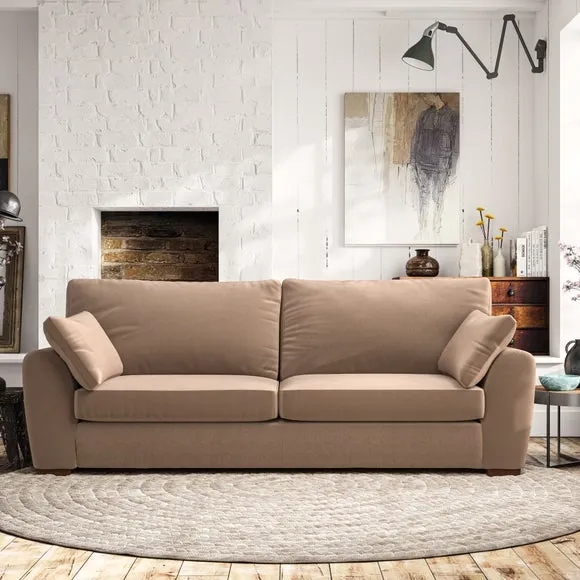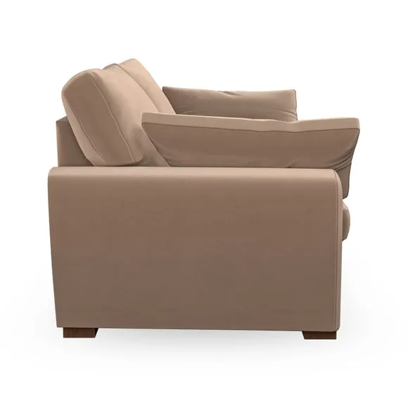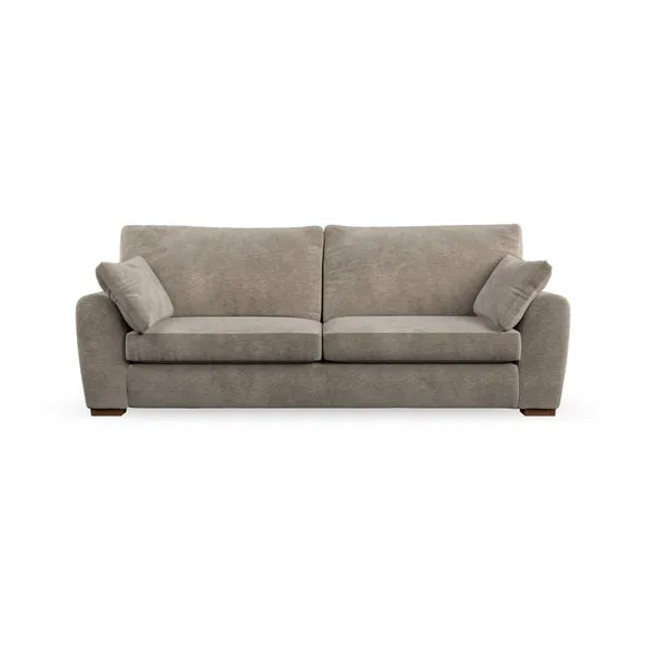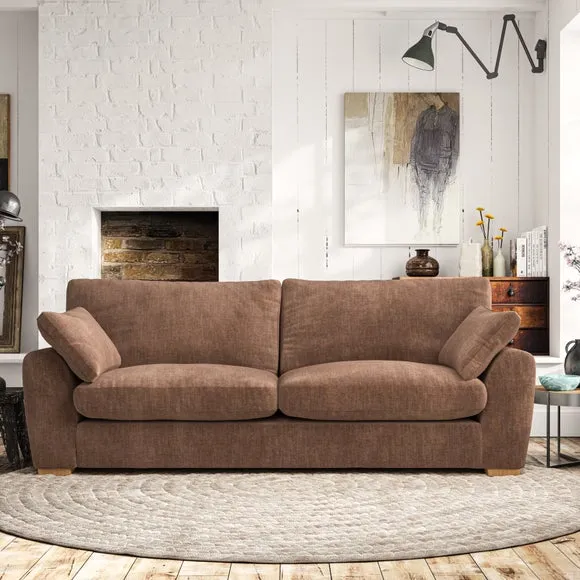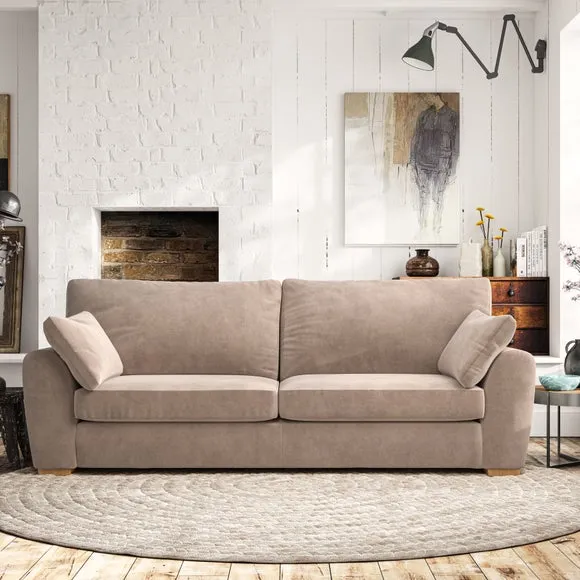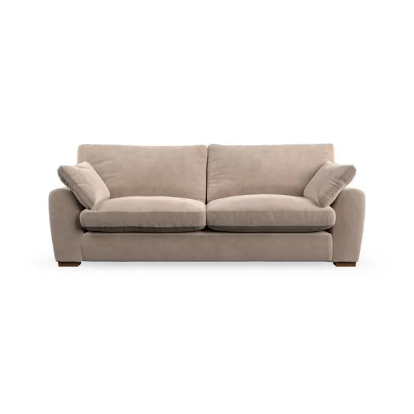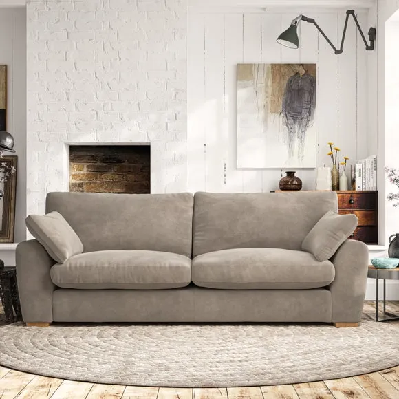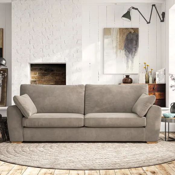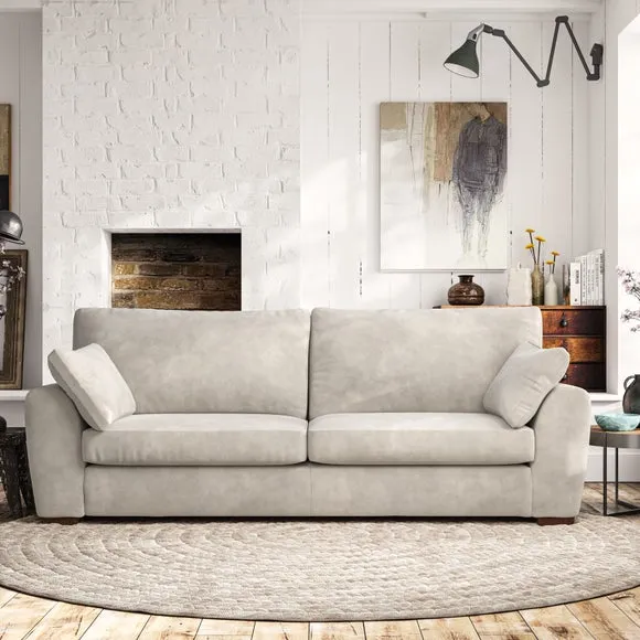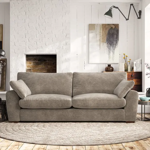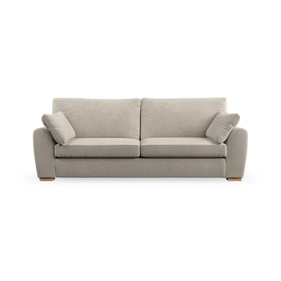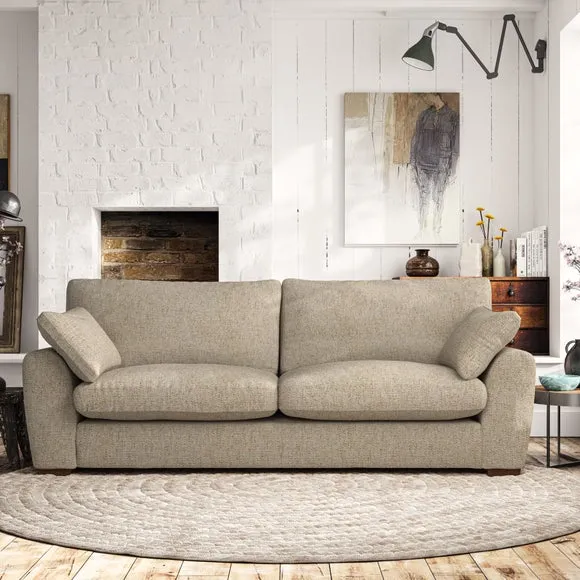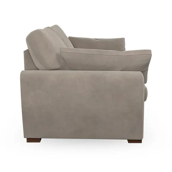 The sofa combines generous proportions with soft pebble-shaped arms and loungey fibre-filled arm pads. Its higher back cushions, filled with soft fibre, provide excellent support for your back and shoulders, while the serpentine seat springs ensure durability and long-term comfort. The removable arms make it simpler to navigate through smaller spaces, and you can choose between supportive foam or relaxed fibre-filled seat cushions.