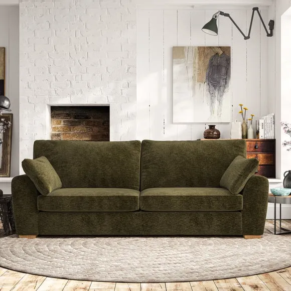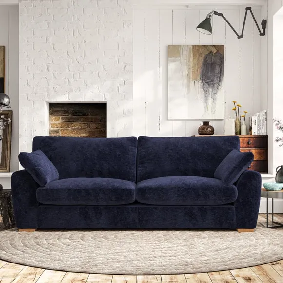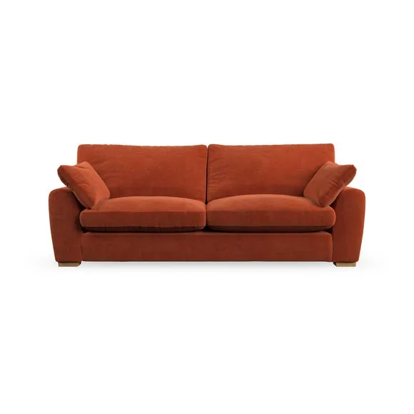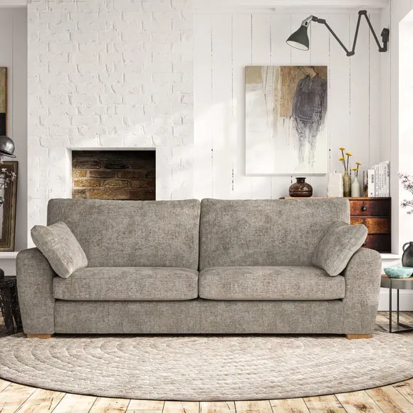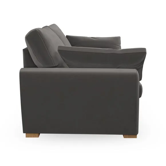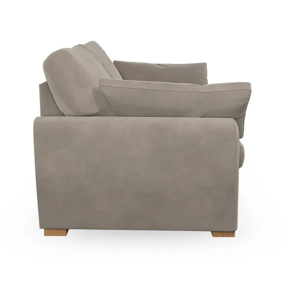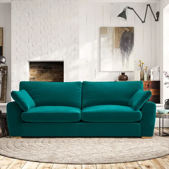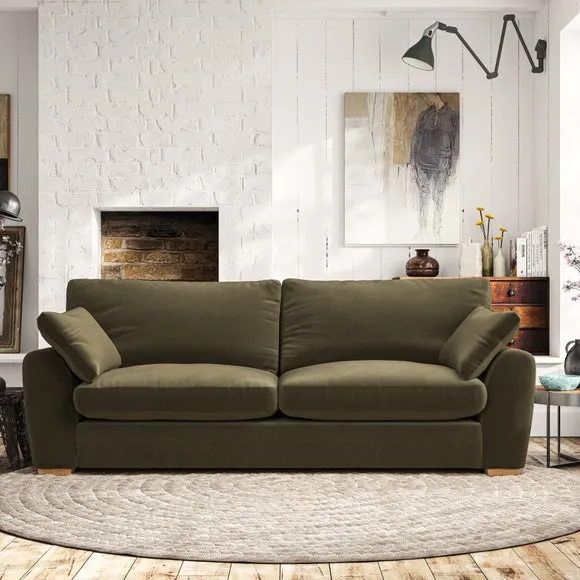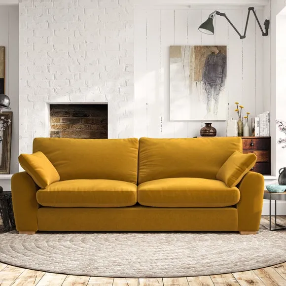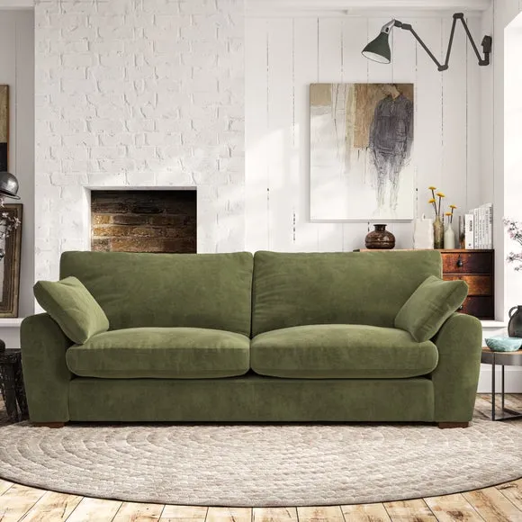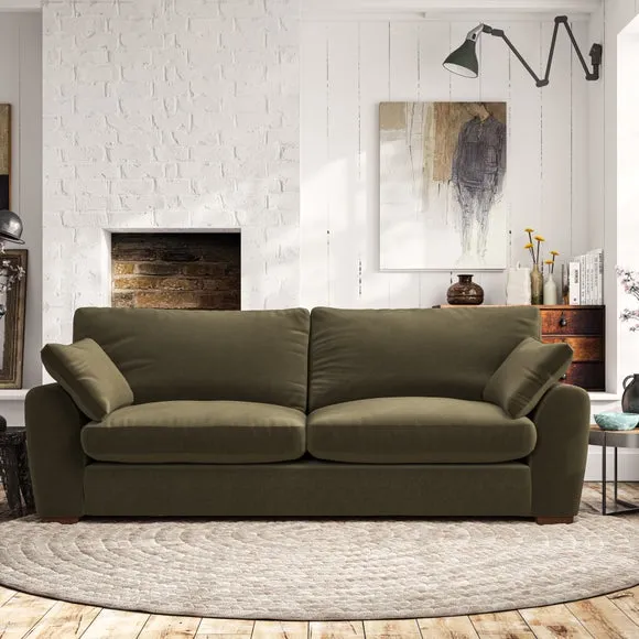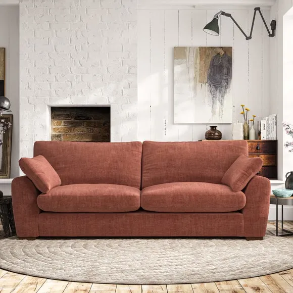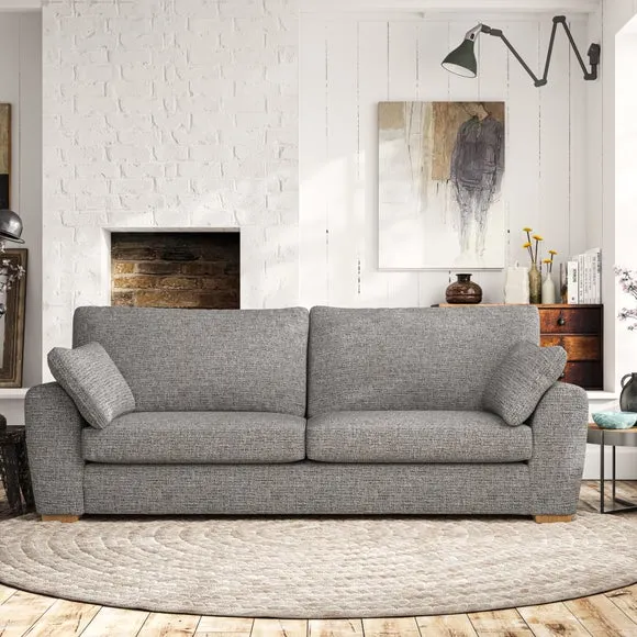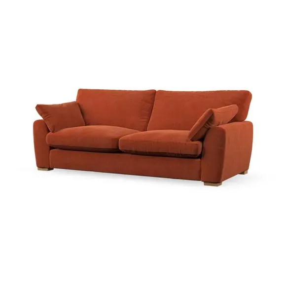The sofa combines generous proportions with soft pebble-shaped arms and loungey fibre-filled arm pads. Its higher back cushions, filled with soft fibre, provide excellent support for your back and shoulders, while the serpentine seat springs ensure durability and long-term comfort. The removable arms make it simpler to navigate through smaller spaces, and you can choose between supportive foam or relaxed fibre-filled seat cushions.