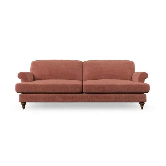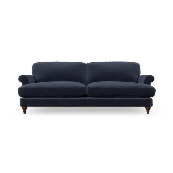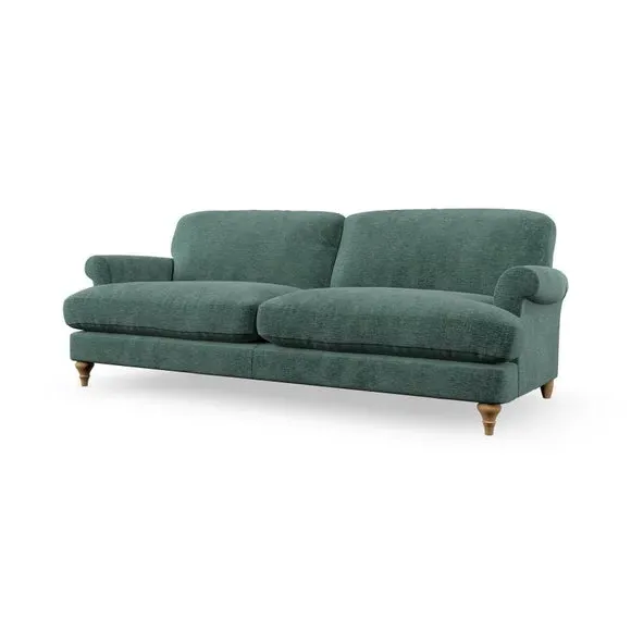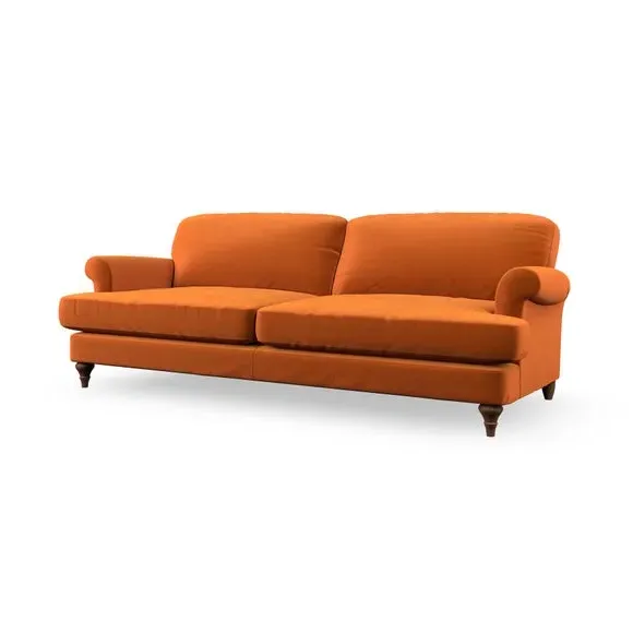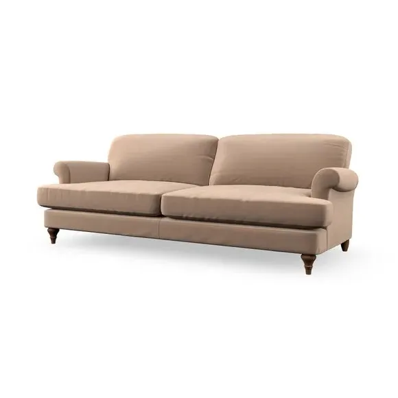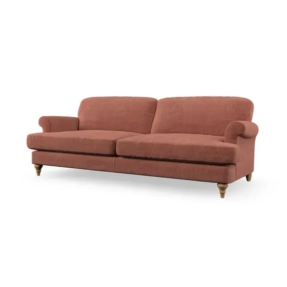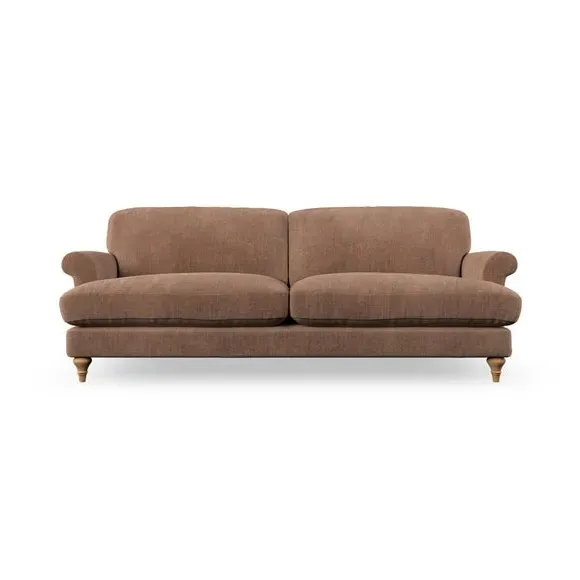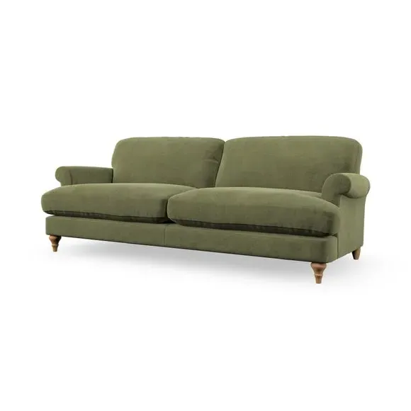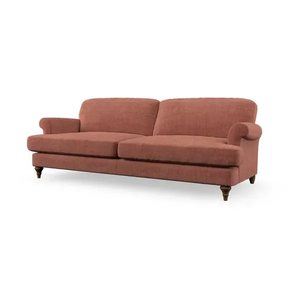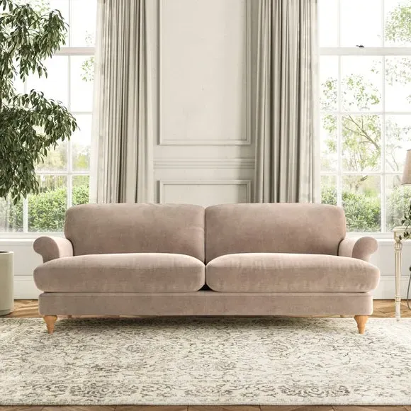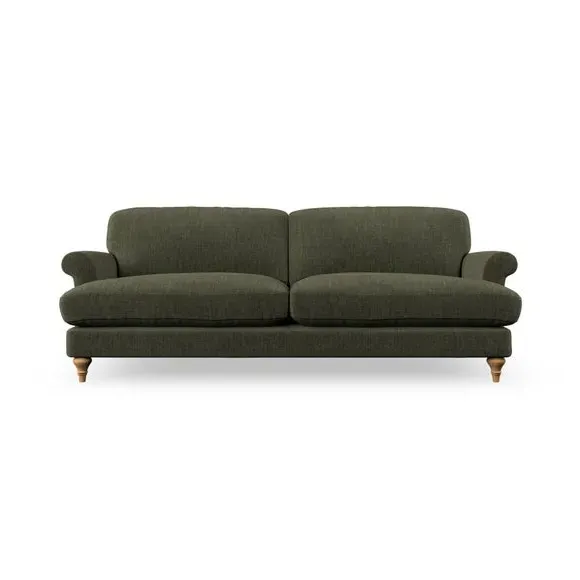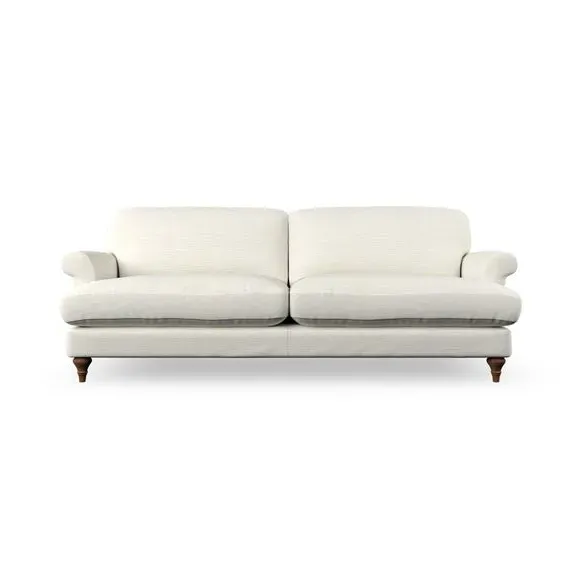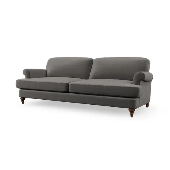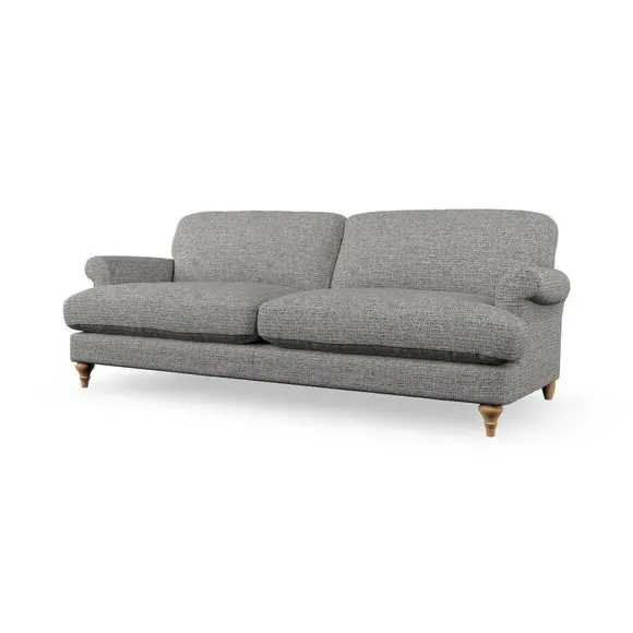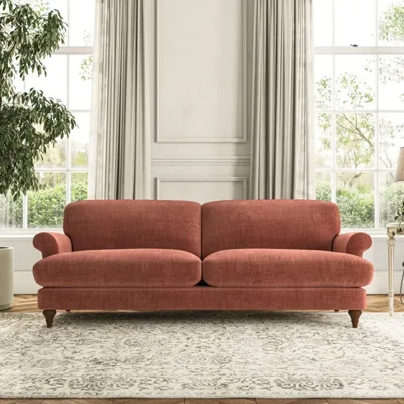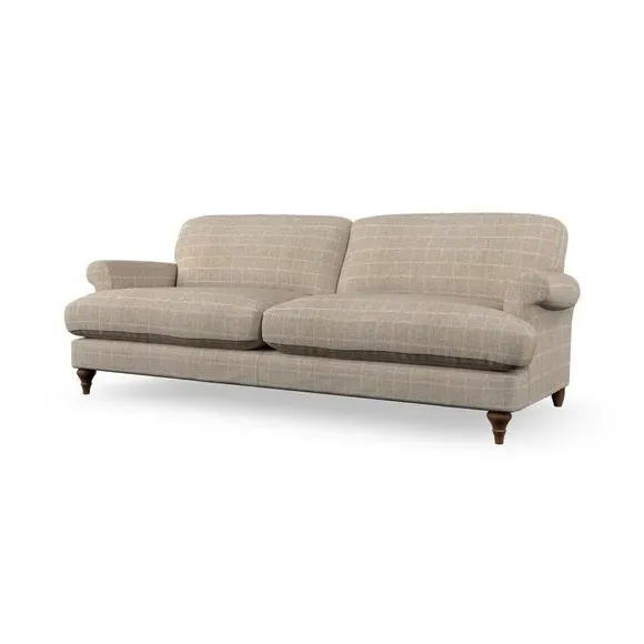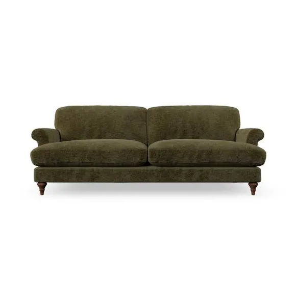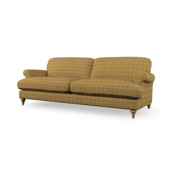* Elegant, classic design* Scroll Arms* Lugged seat cushion* Serpentine seat springs* Choose your support, fabric and leg colour The Evie 4 Seater Sofa combines generous seating space with refined design, making it an ideal choice for larger living rooms. Featuring slender scroll arms and lugged seat cushions, this sofa offers a classic look with a modern touch. The fibre-filled back cushions provide excellent support, making it a comfortable choice for family gatherings or quiet evenings at home. Choose from a wide range of fabrics, colours, cushion fillings, and leg finishes to personalise this piece.