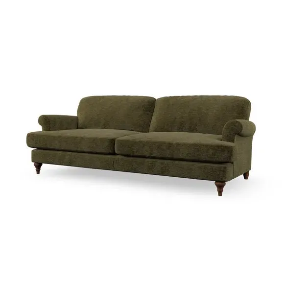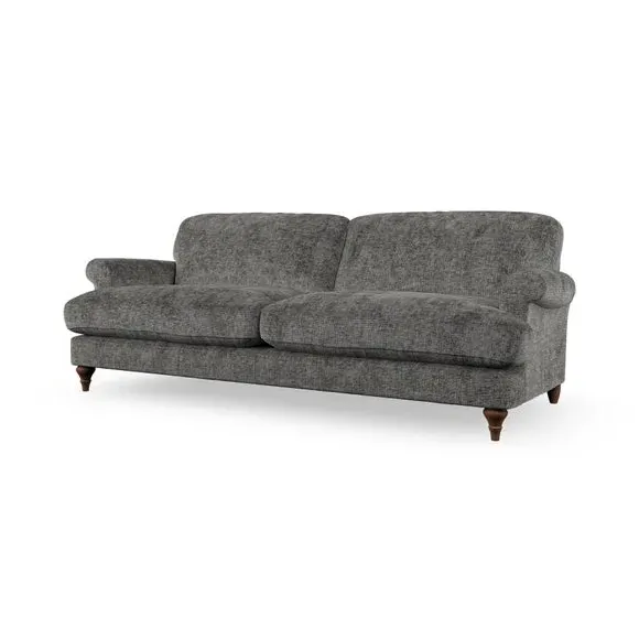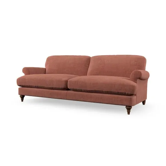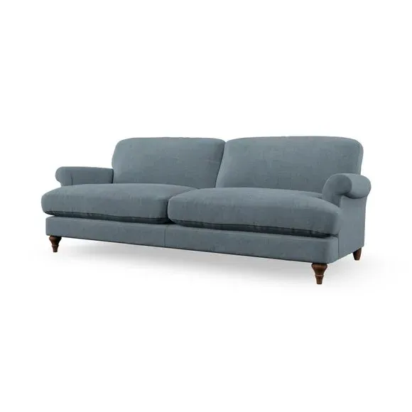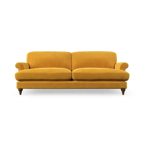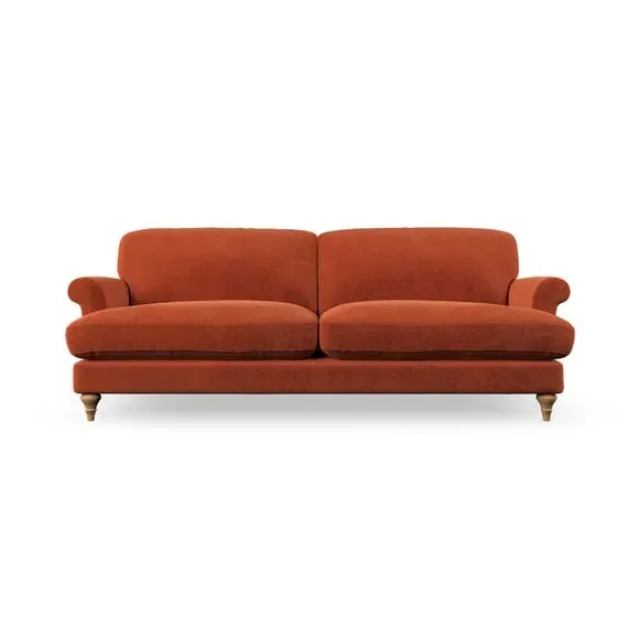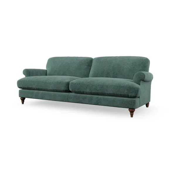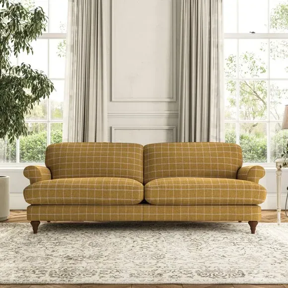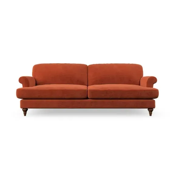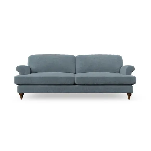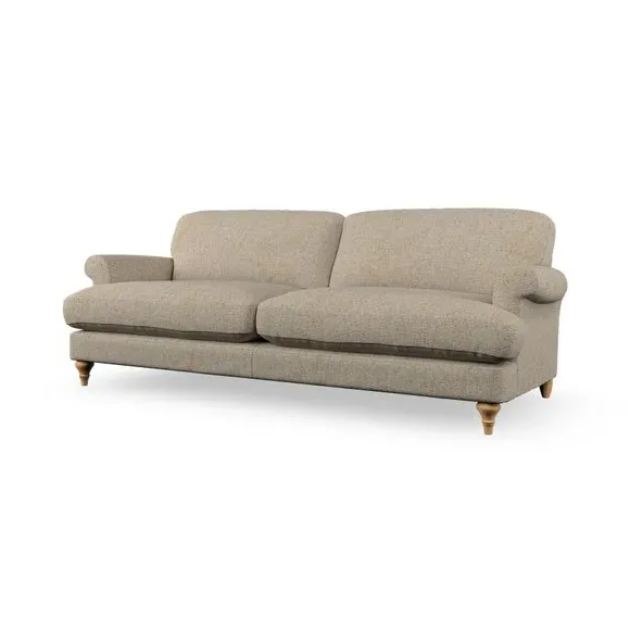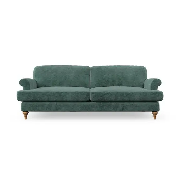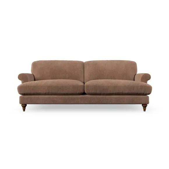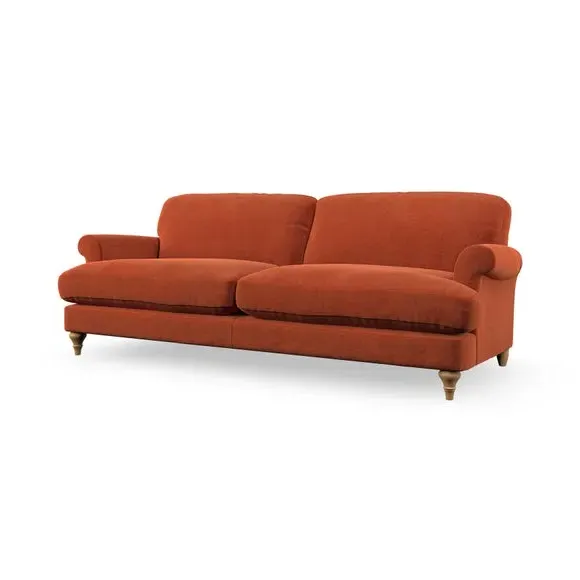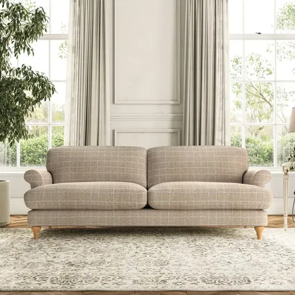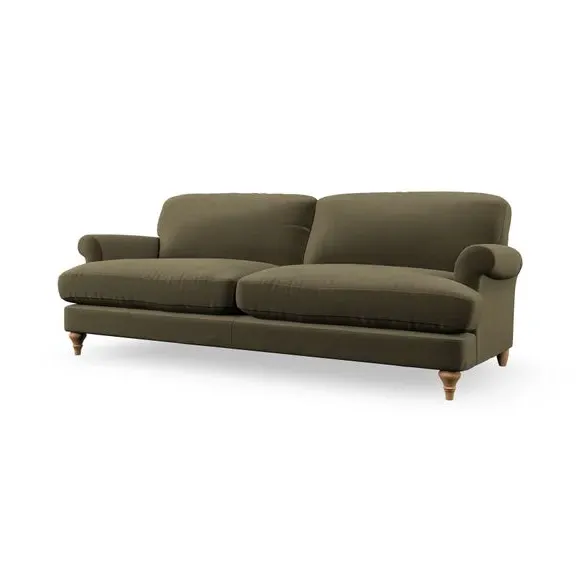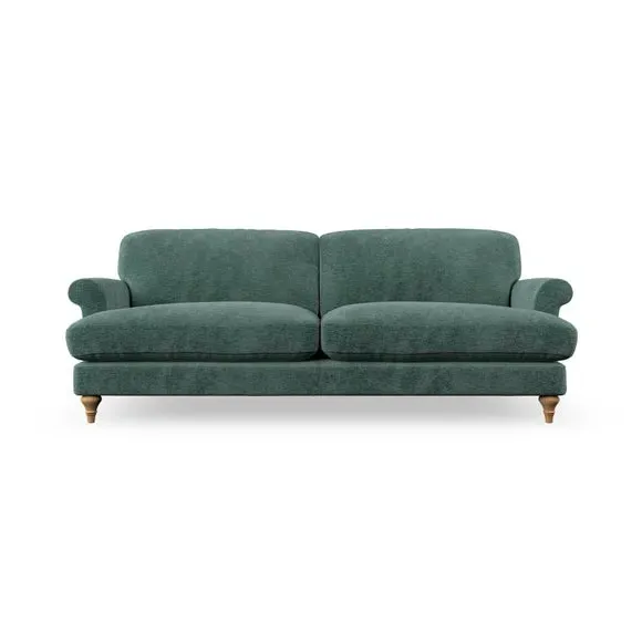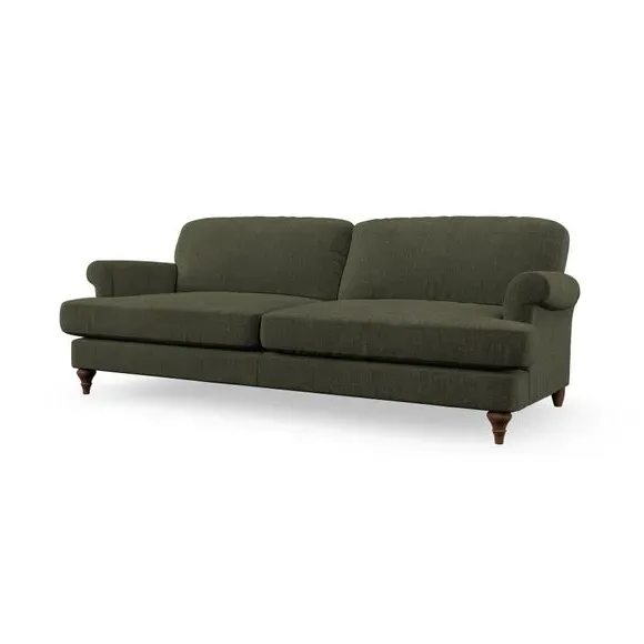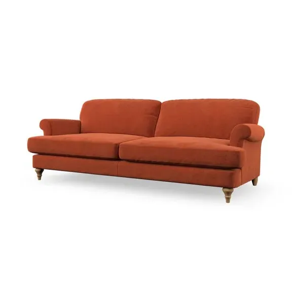 * Elegant, classic design* Scroll Arms* Lugged seat cushion* Serpentine seat springs* Choose your support, fabric and leg colour The Evie 4 Seater Sofa combines generous seating space with refined design, making it an ideal choice for larger living rooms. Featuring slender scroll arms and lugged seat cushions, this sofa offers a classic look with a modern touch. The fibre-filled back cushions provide excellent support, making it a comfortable choice for family gatherings or quiet evenings at home. Choose from a wide range of fabrics, colours, cushion fillings, and leg finishes to personalise this piece.
