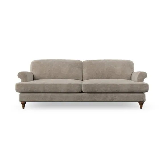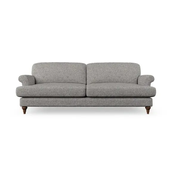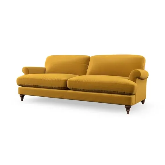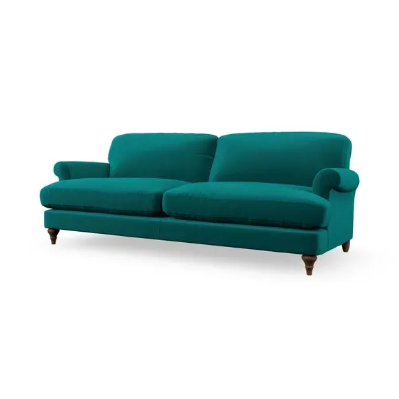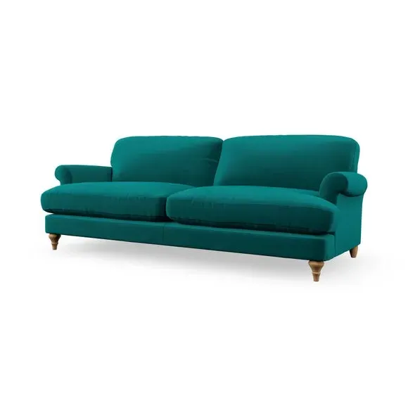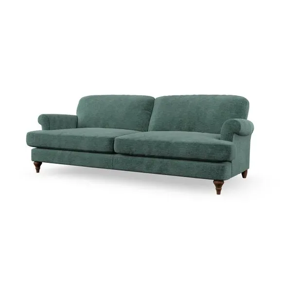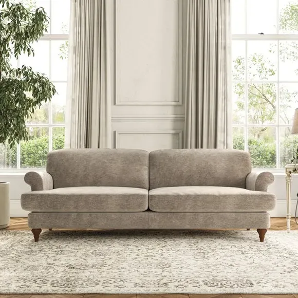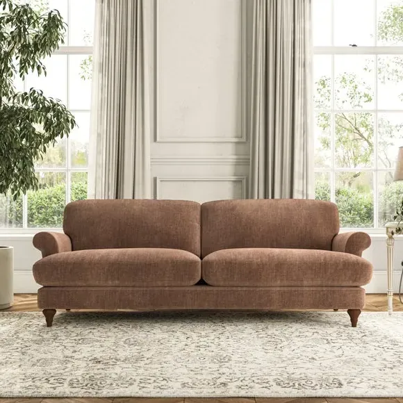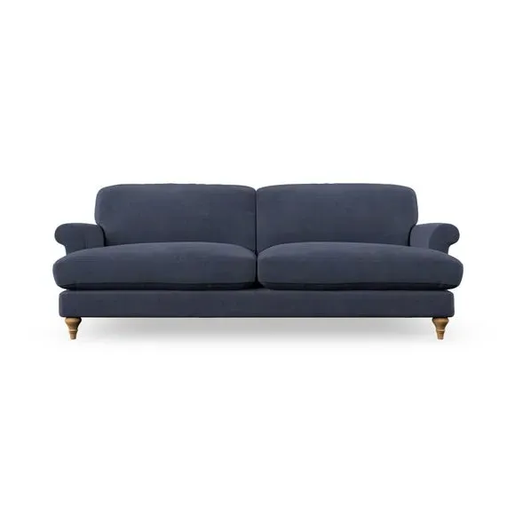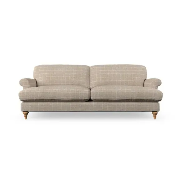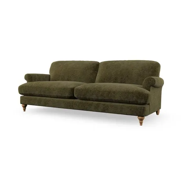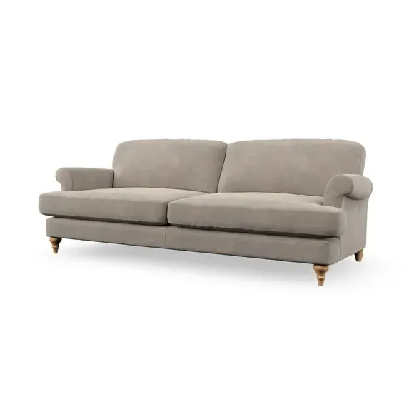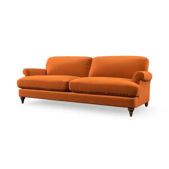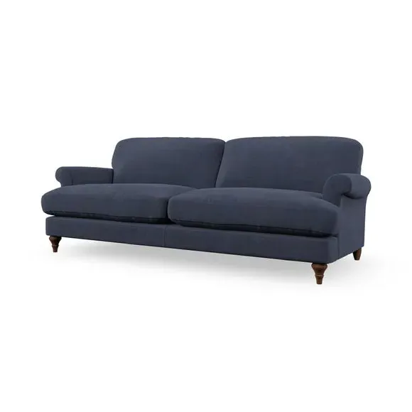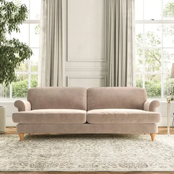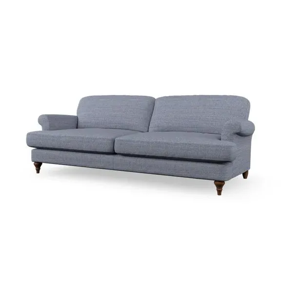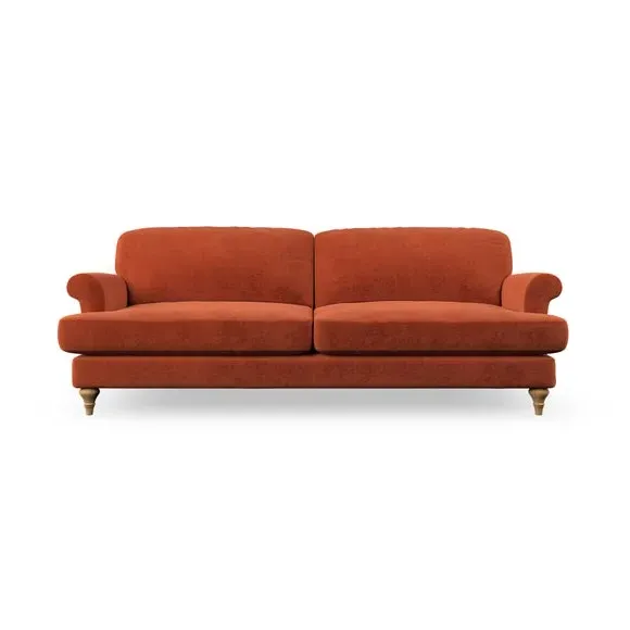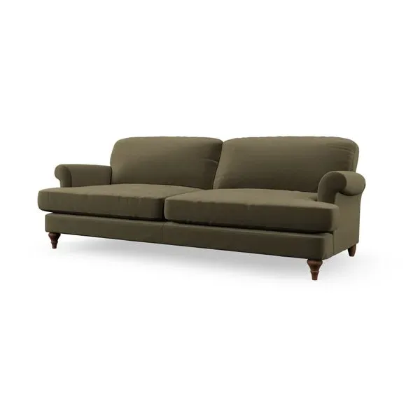 * Elegant, classic design* Scroll Arms* Lugged seat cushion* Serpentine seat springs* Choose your support, fabric and leg colour The Evie 4 Seater Sofa combines generous seating space with refined design, making it an ideal choice for larger living rooms. Featuring slender scroll arms and lugged seat cushions, this sofa offers a classic look with a modern touch. The fibre-filled back cushions provide excellent support, making it a comfortable choice for family gatherings or quiet evenings at home. Choose from a wide range of fabrics, colours, cushion fillings, and leg finishes to personalise this piece.