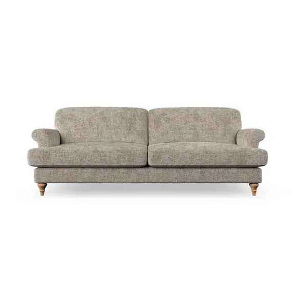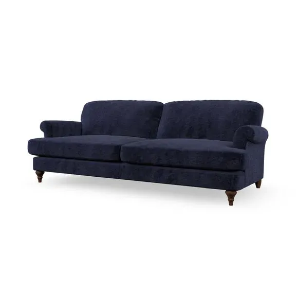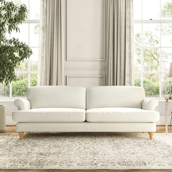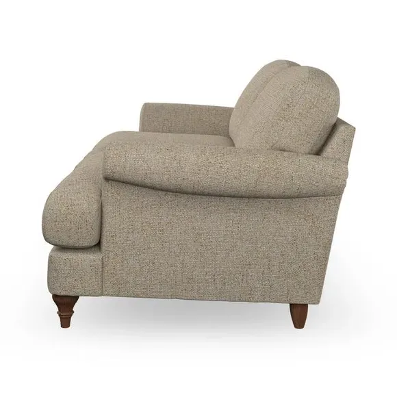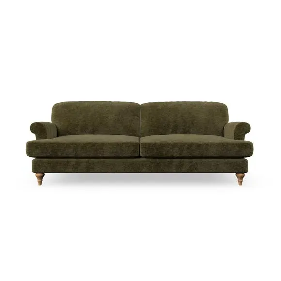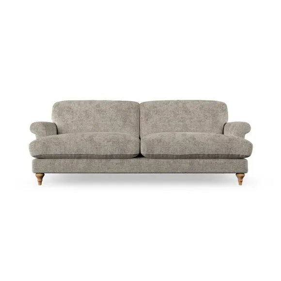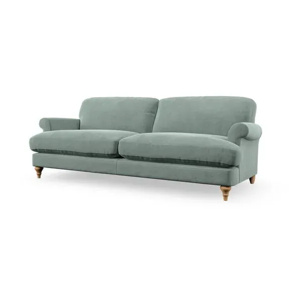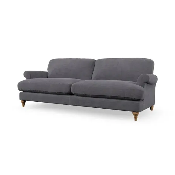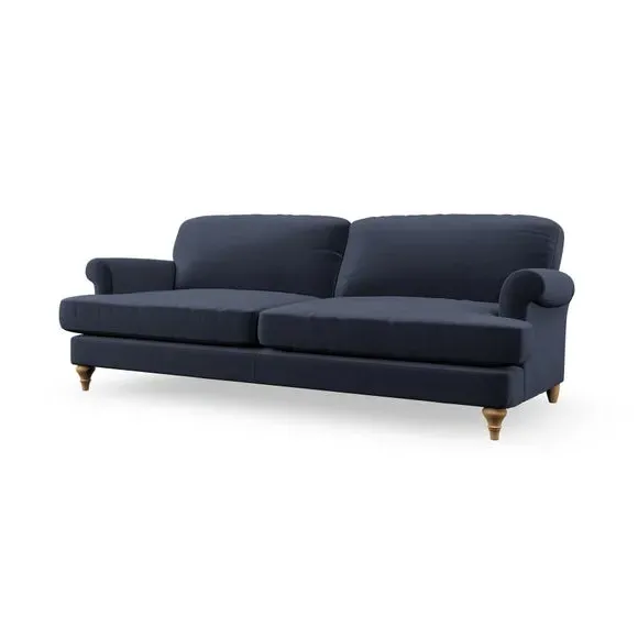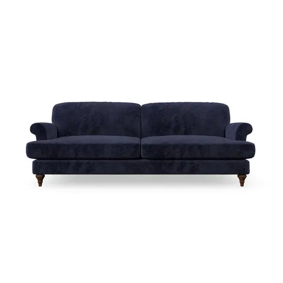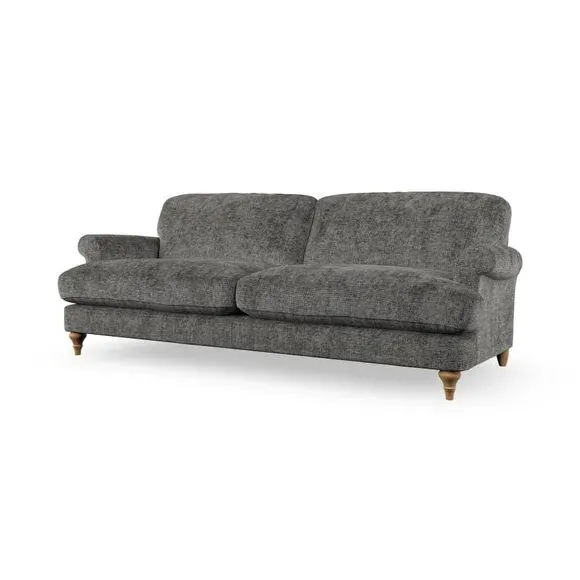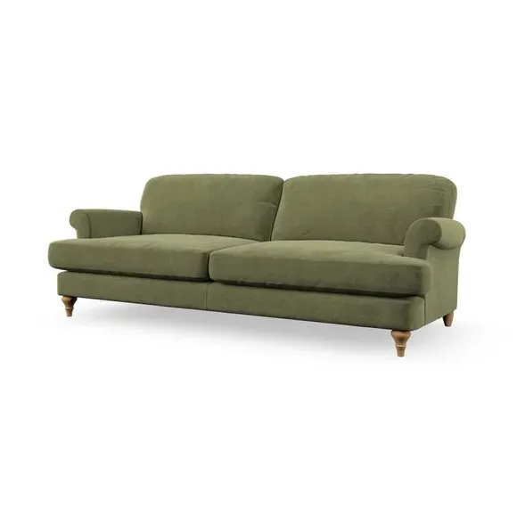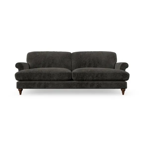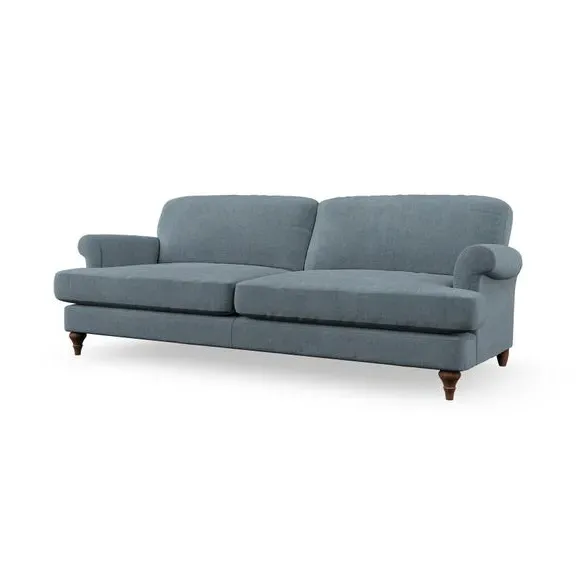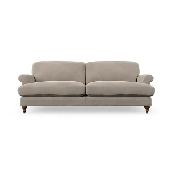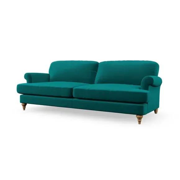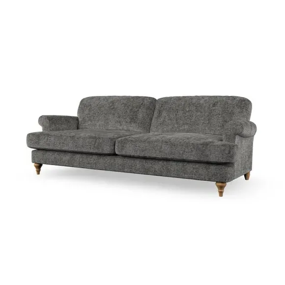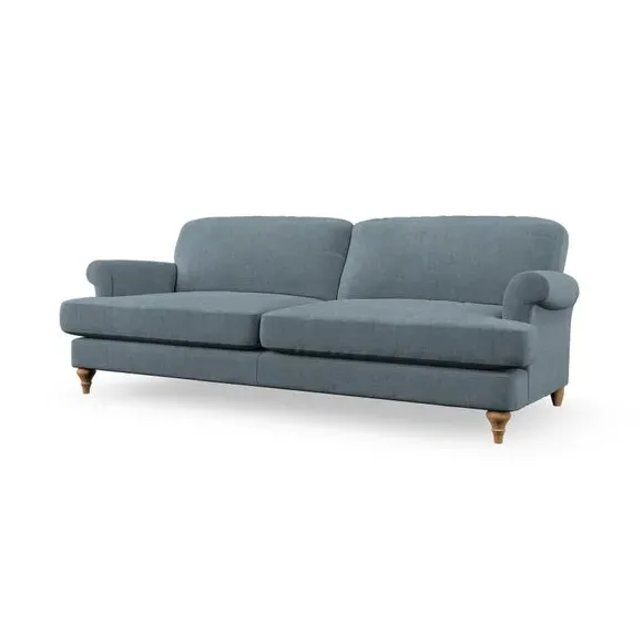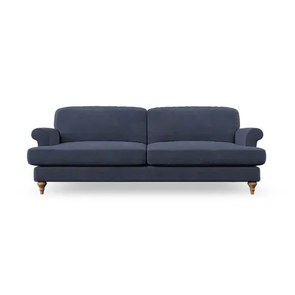 * Elegant, classic design* Scroll Arms* Lugged seat cushion* Serpentine seat springs* Choose your support, fabric and leg colour The Evie 4 Seater Sofa combines generous seating space with refined design, making it an ideal choice for larger living rooms. Featuring slender scroll arms and lugged seat cushions, this sofa offers a classic look with a modern touch. The fibre-filled back cushions provide excellent support, making it a comfortable choice for family gatherings or quiet evenings at home. Choose from a wide range of fabrics, colours, cushion fillings, and leg finishes to personalise this piece.