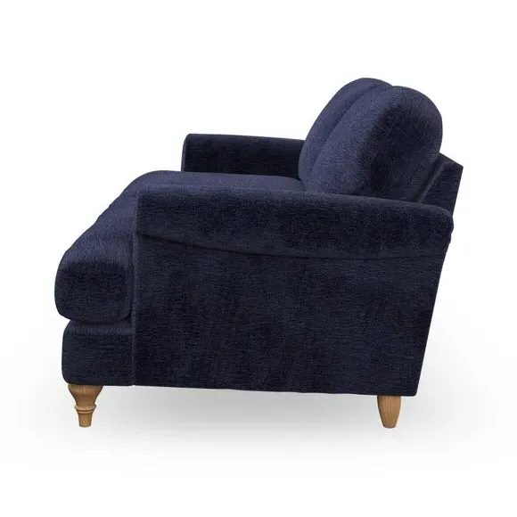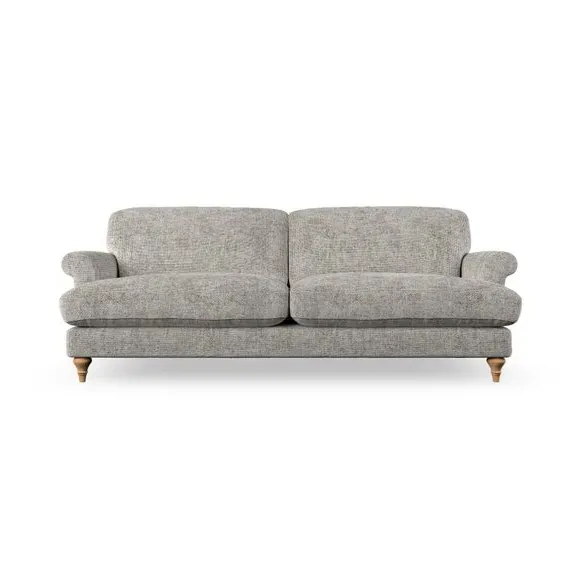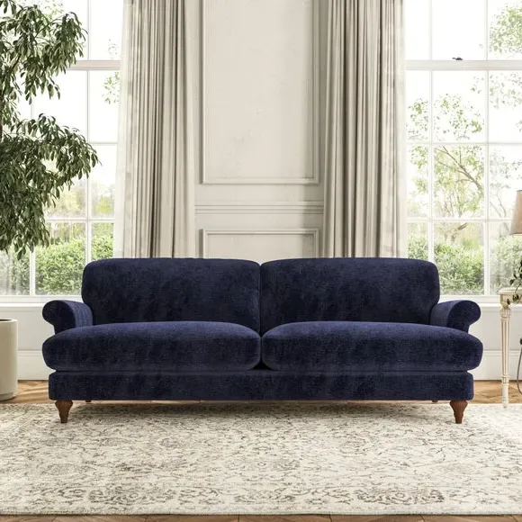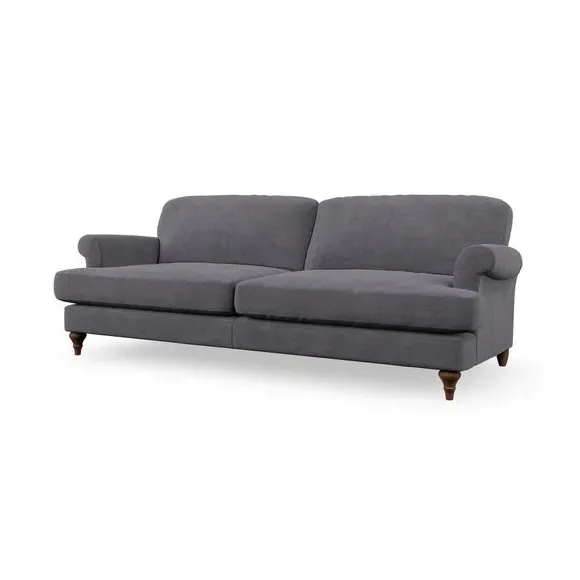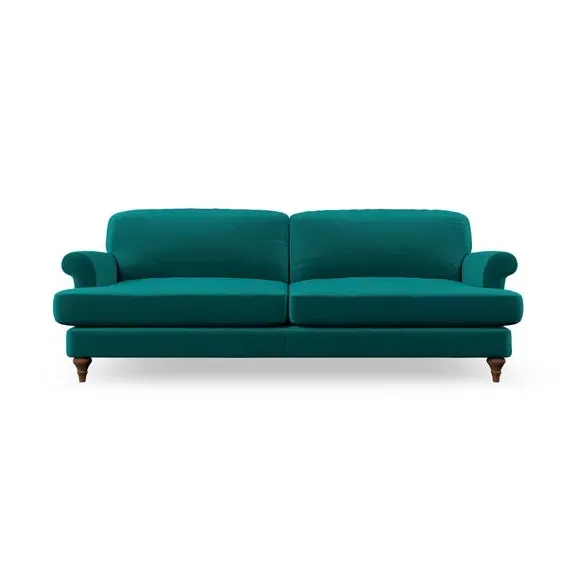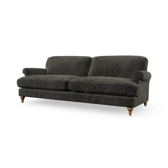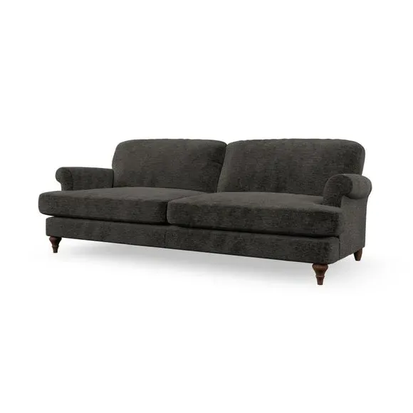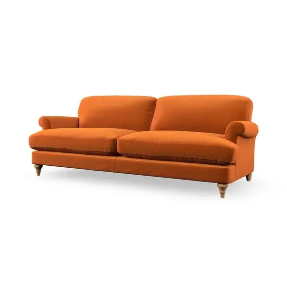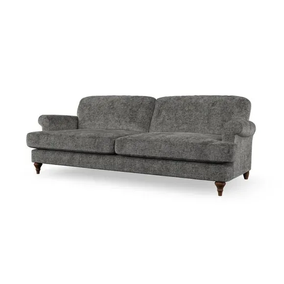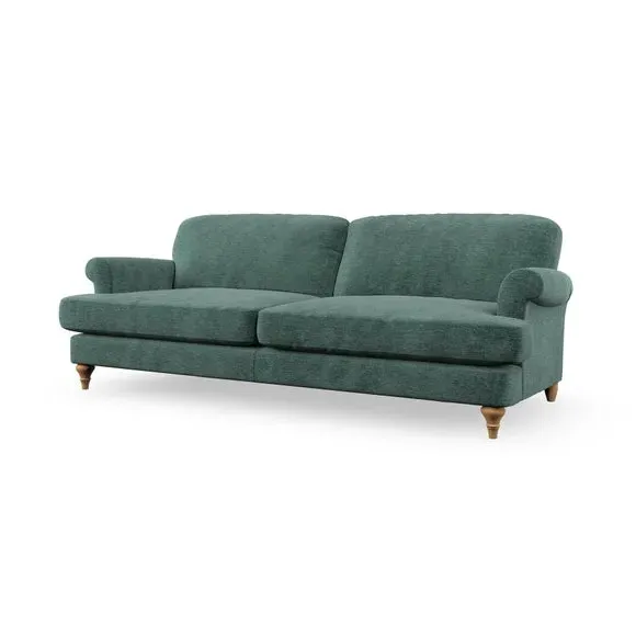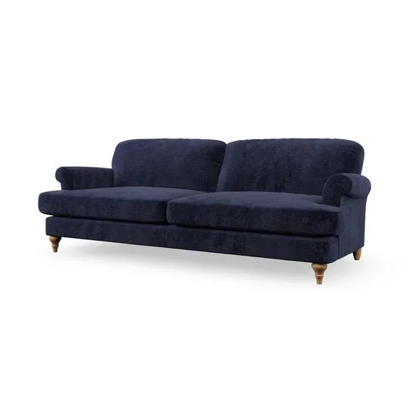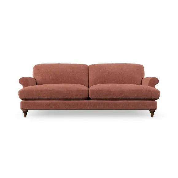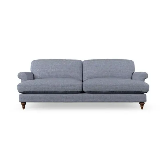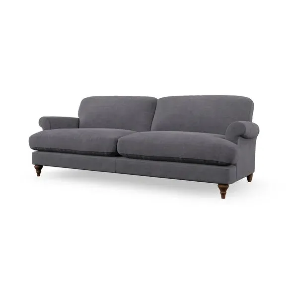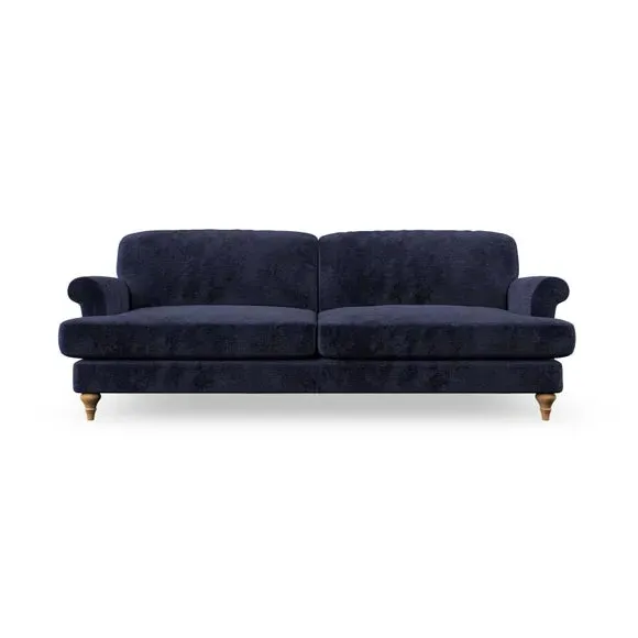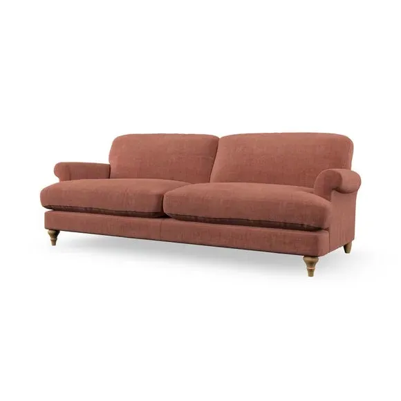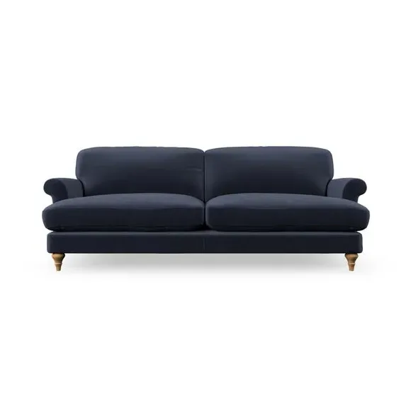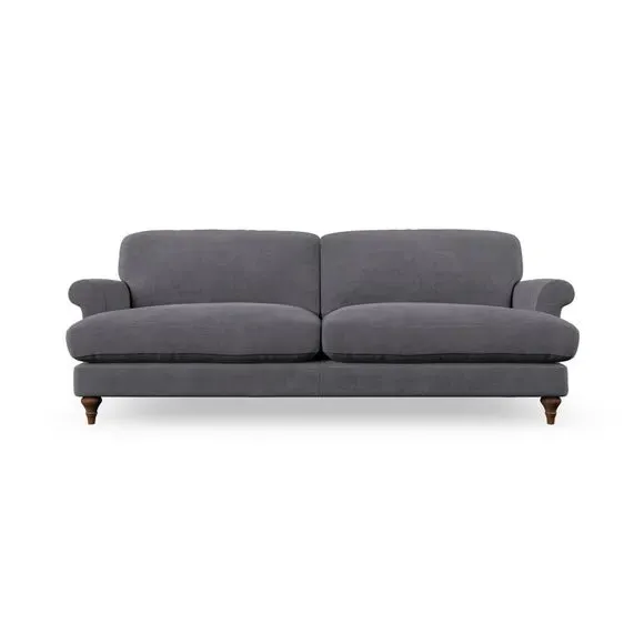 * Elegant, classic design* Scroll Arms* Lugged seat cushion* Serpentine seat springs* Choose your support, fabric and leg colour The Evie 4 Seater Sofa combines generous seating space with refined design, making it an ideal choice for larger living rooms. Featuring slender scroll arms and lugged seat cushions, this sofa offers a classic look with a modern touch. The fibre-filled back cushions provide excellent support, making it a comfortable choice for family gatherings or quiet evenings at home. Choose from a wide range of fabrics, colours, cushion fillings, and leg finishes to personalise this piece.