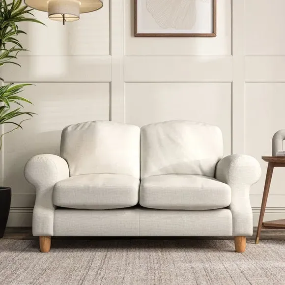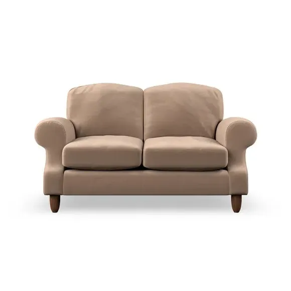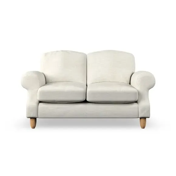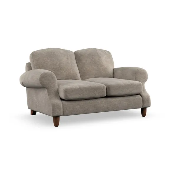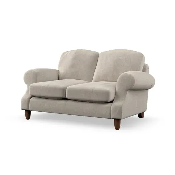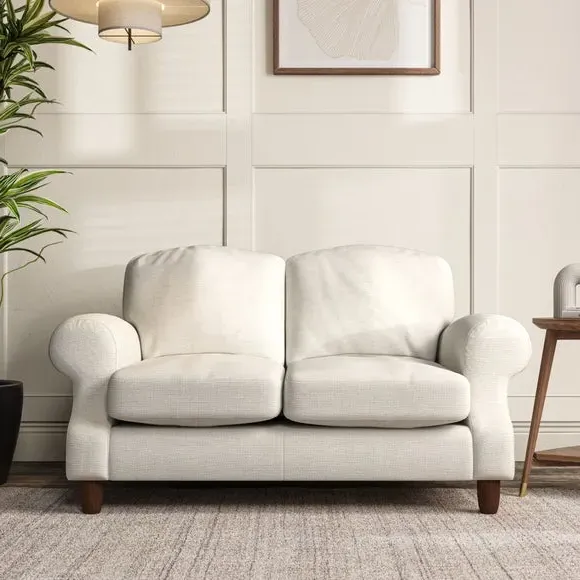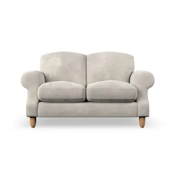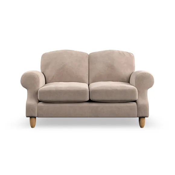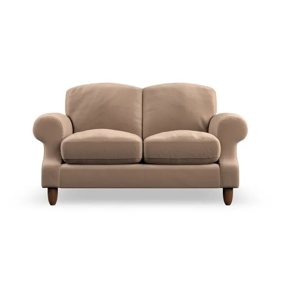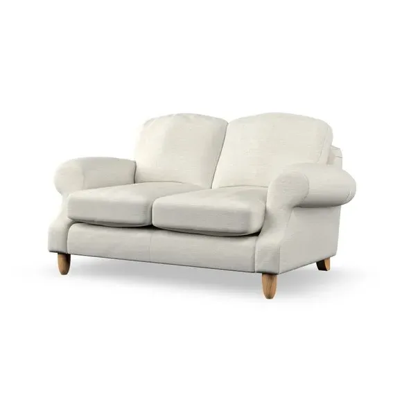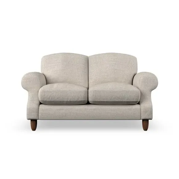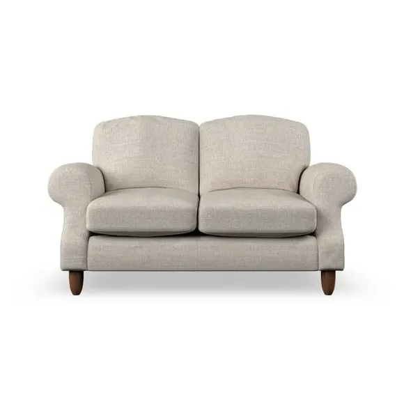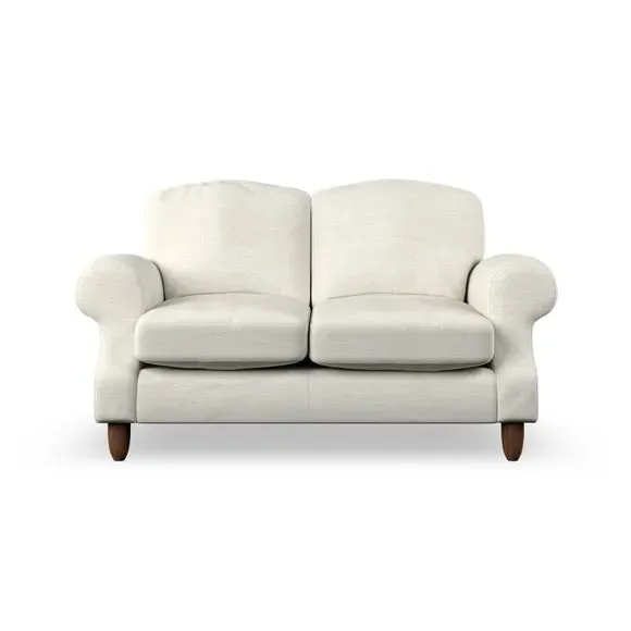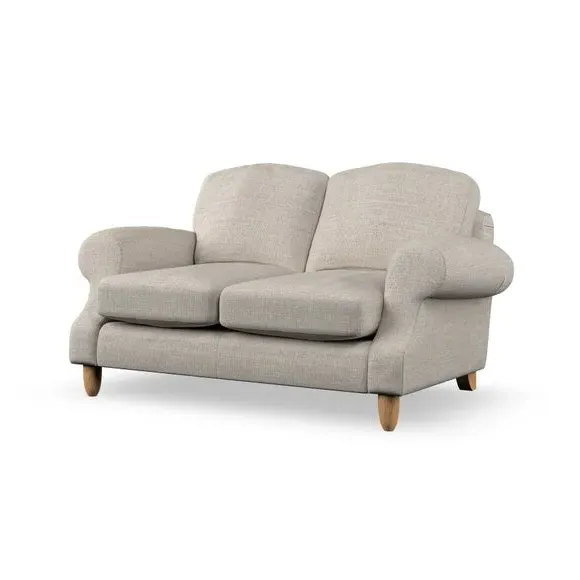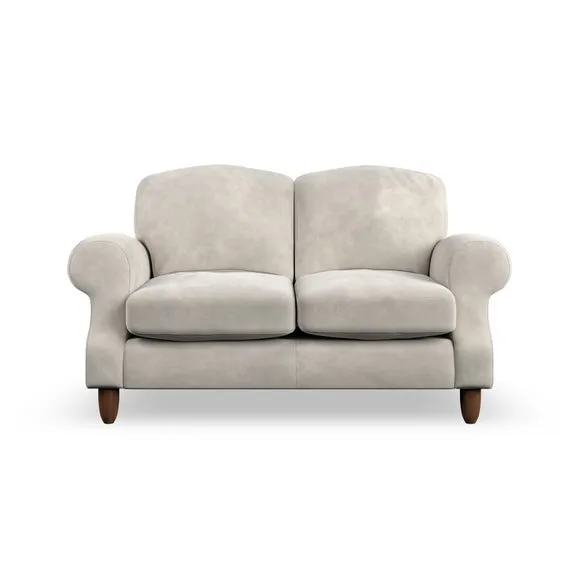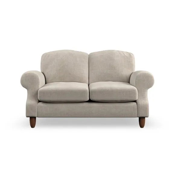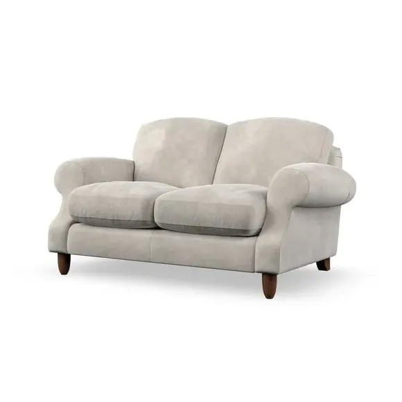 The 2-seater sofa combines comfort with its cut back scroll arms and gently arched back cushions. Its high back cushions with generous fibre filling provide excellent support for your back and shoulders, while the top-stitched detail on the arm front adds sophistication. The serpentine seat springs offer enhanced comfort, and the turned hardwood legs ensure durability and easy assembly.