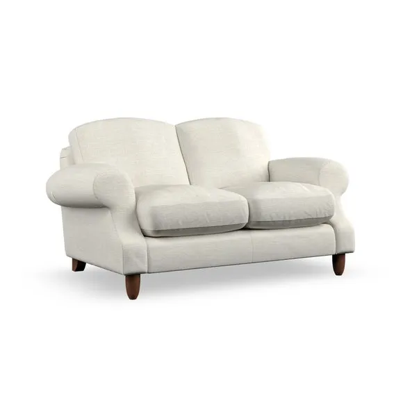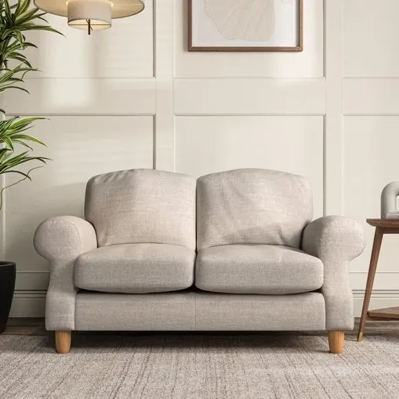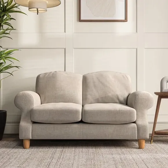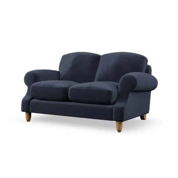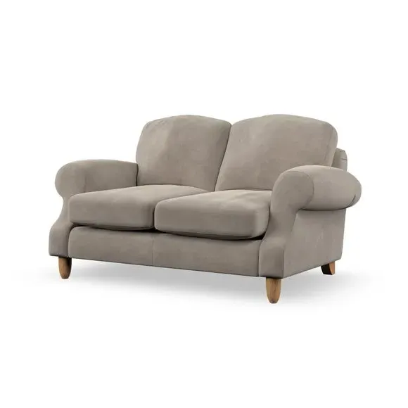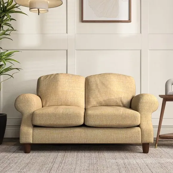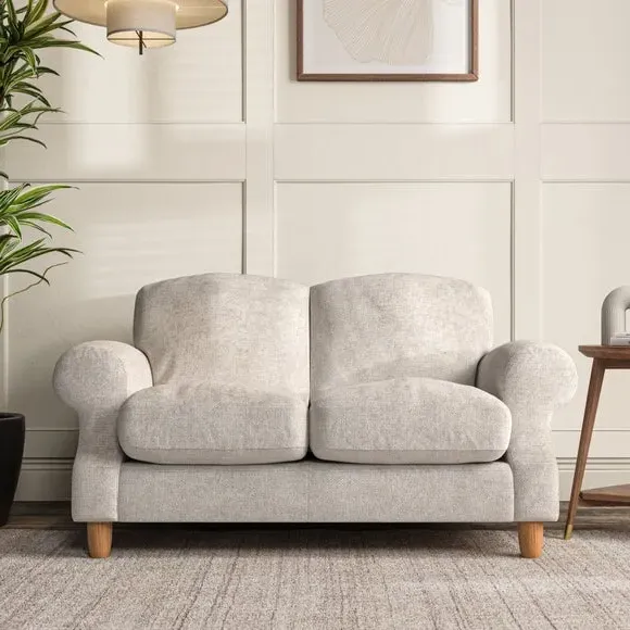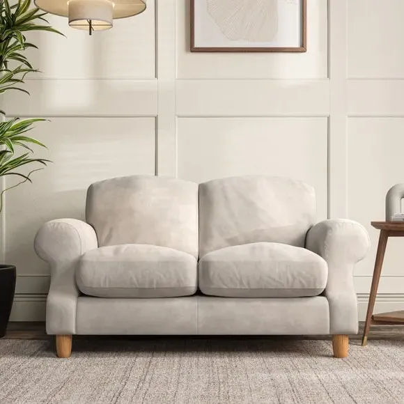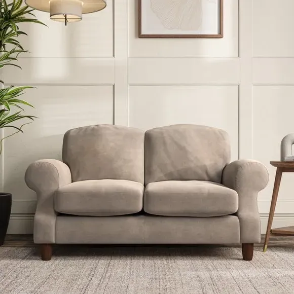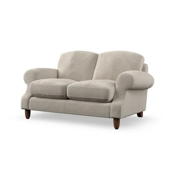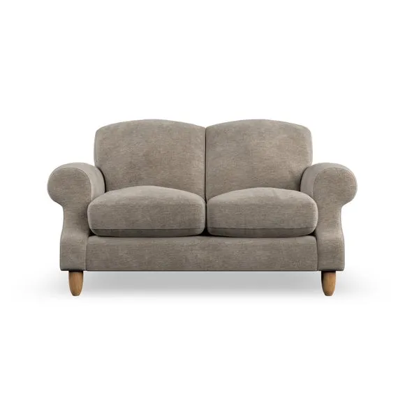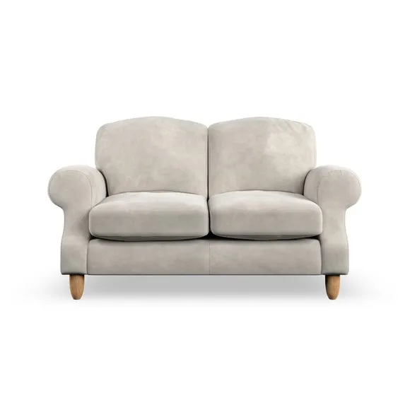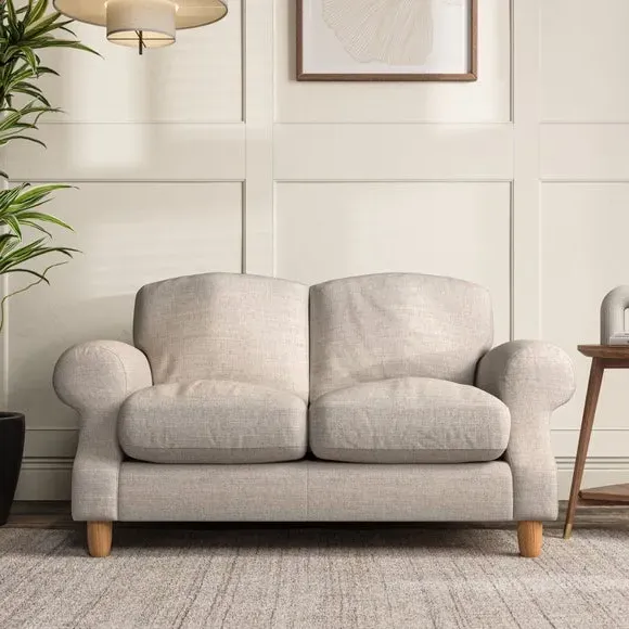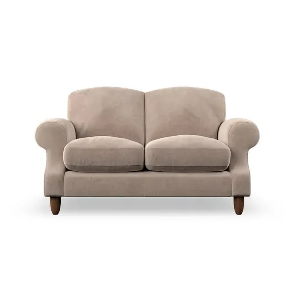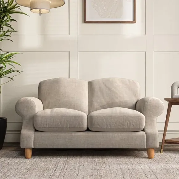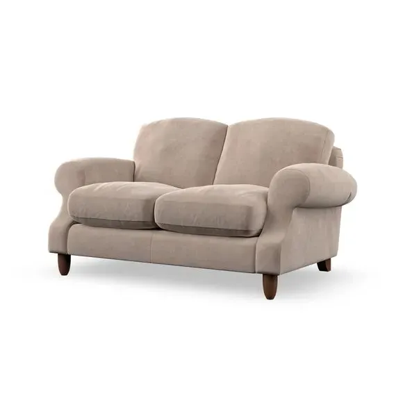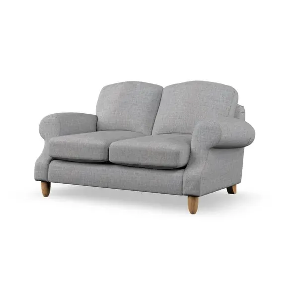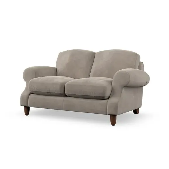 The 2-seater sofa combines comfort with its cut back scroll arms and gently arched back cushions. Its high back cushions with generous fibre filling provide excellent support for your back and shoulders, while the top-stitched detail on the arm front adds sophistication. The serpentine seat springs offer enhanced comfort, and the turned hardwood legs ensure durability and easy assembly.