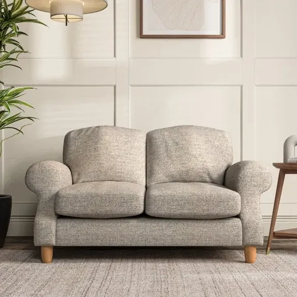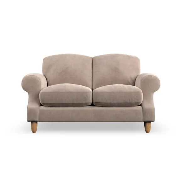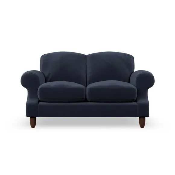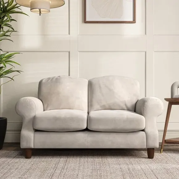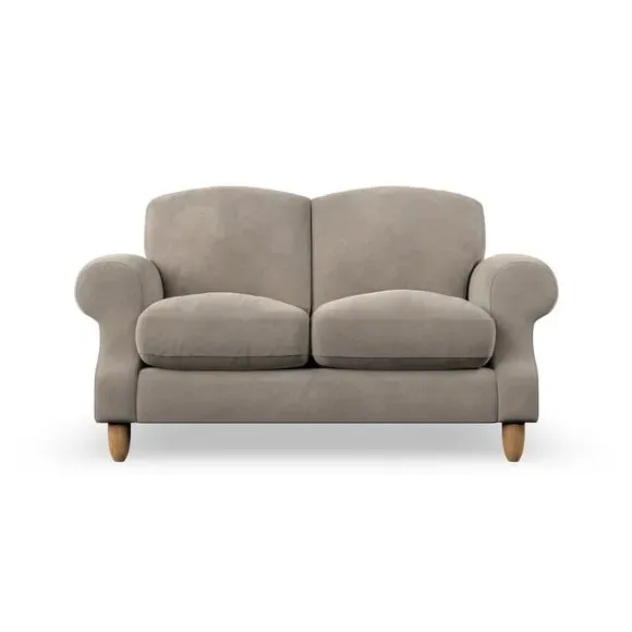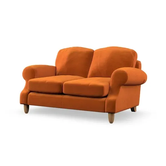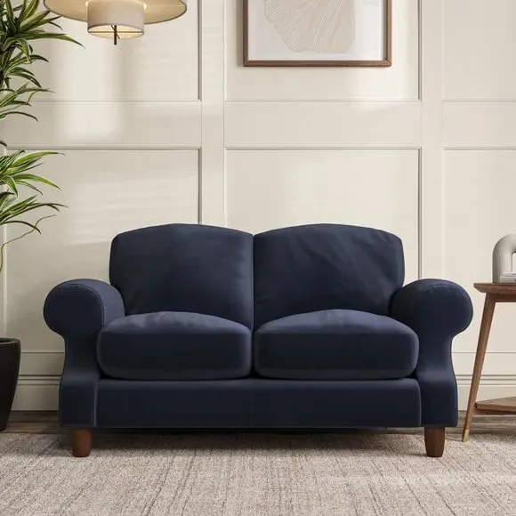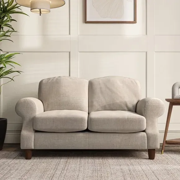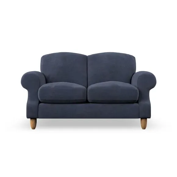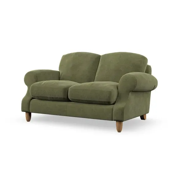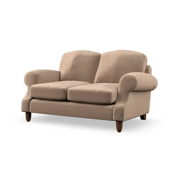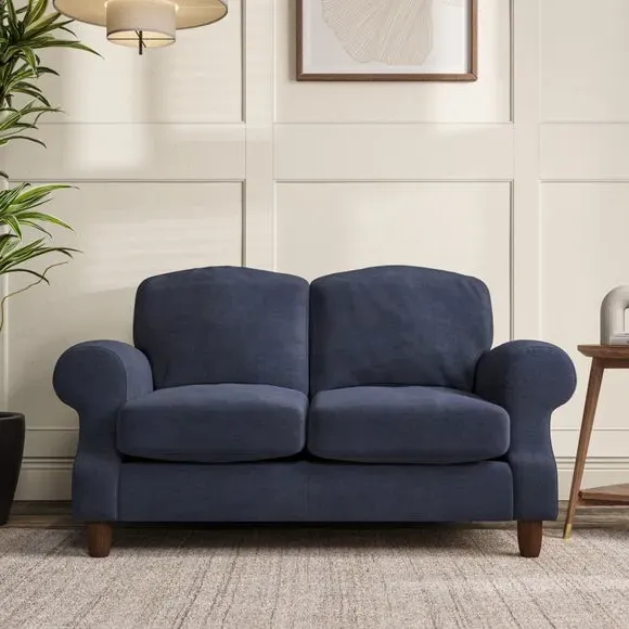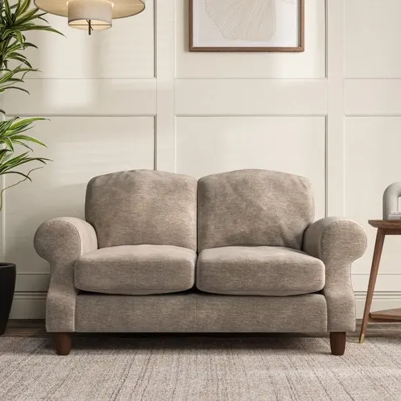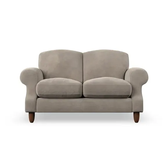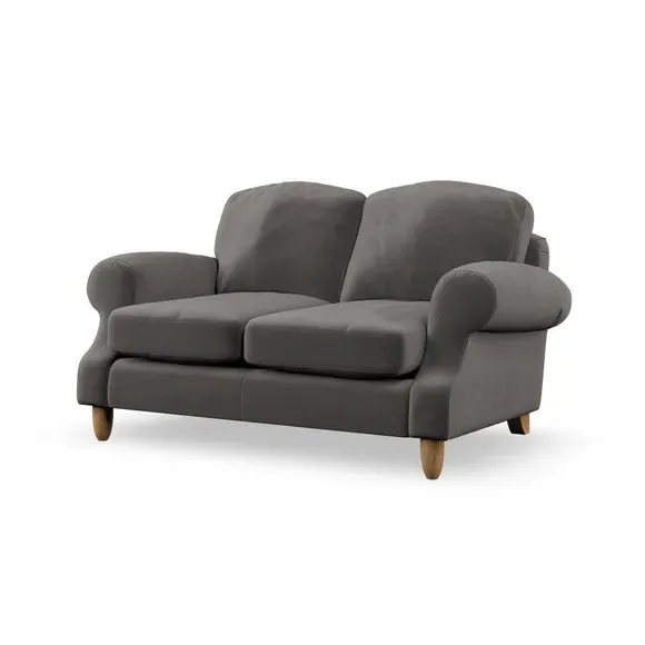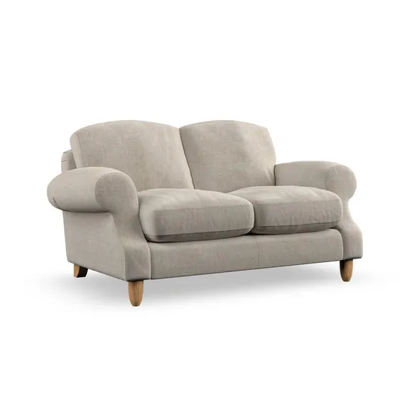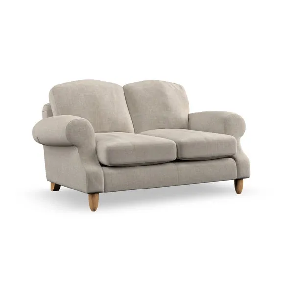 The 2-seater sofa combines comfort with its cut back scroll arms and gently arched back cushions. Its high back cushions with generous fibre filling provide excellent support for your back and shoulders, while the top-stitched detail on the arm front adds sophistication. The serpentine seat springs offer enhanced comfort, and the turned hardwood legs ensure durability and easy assembly.