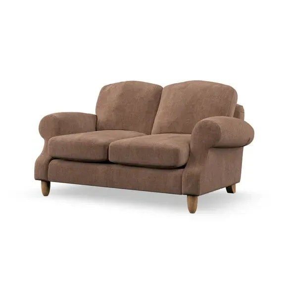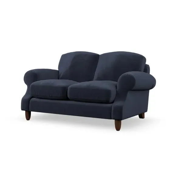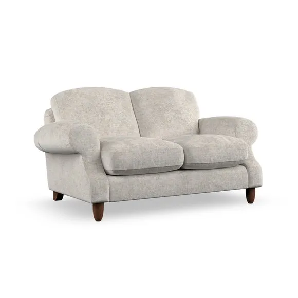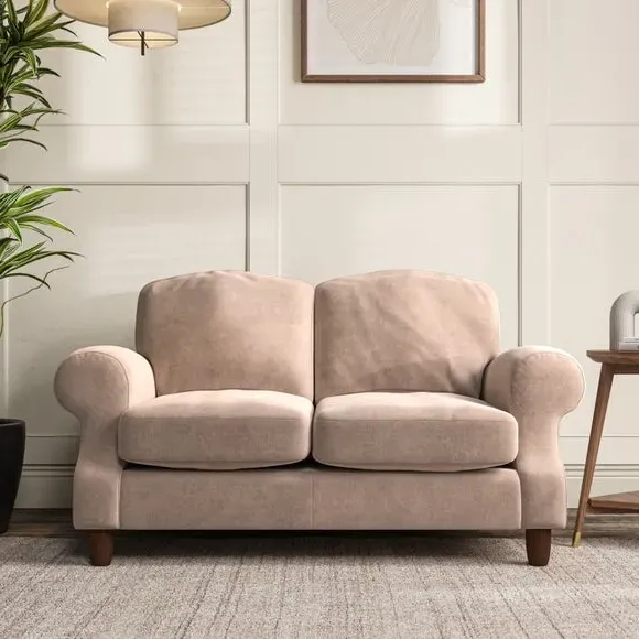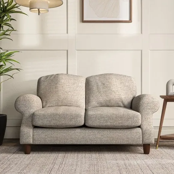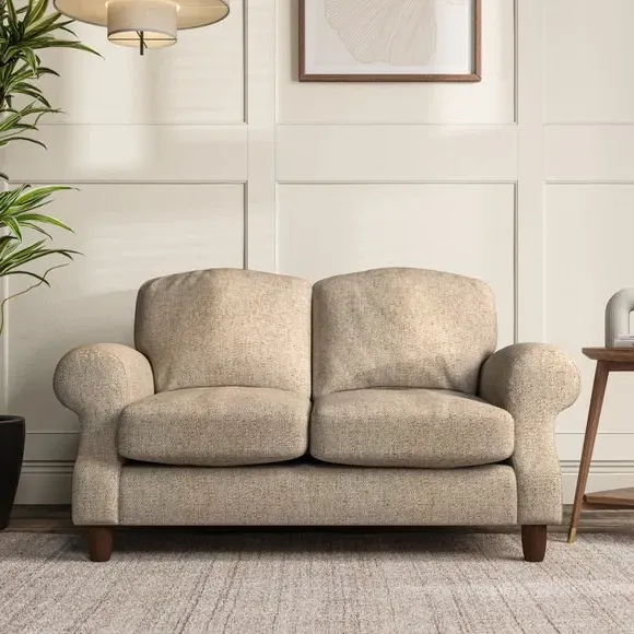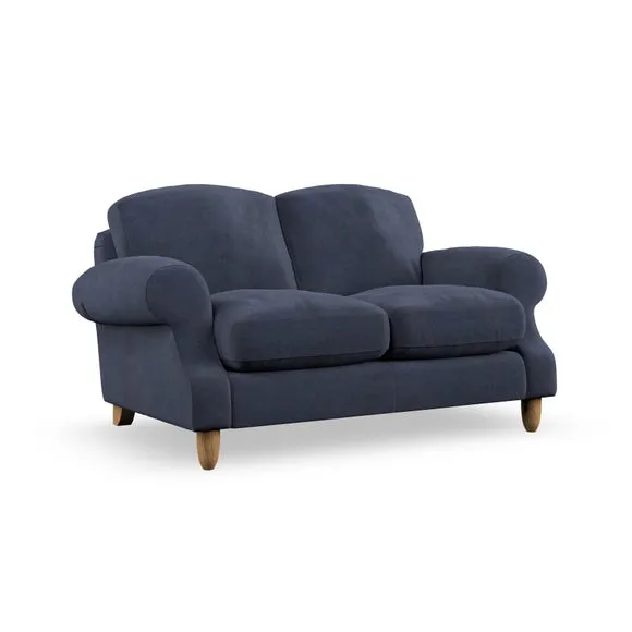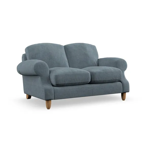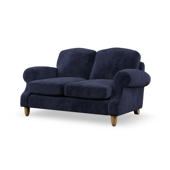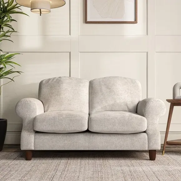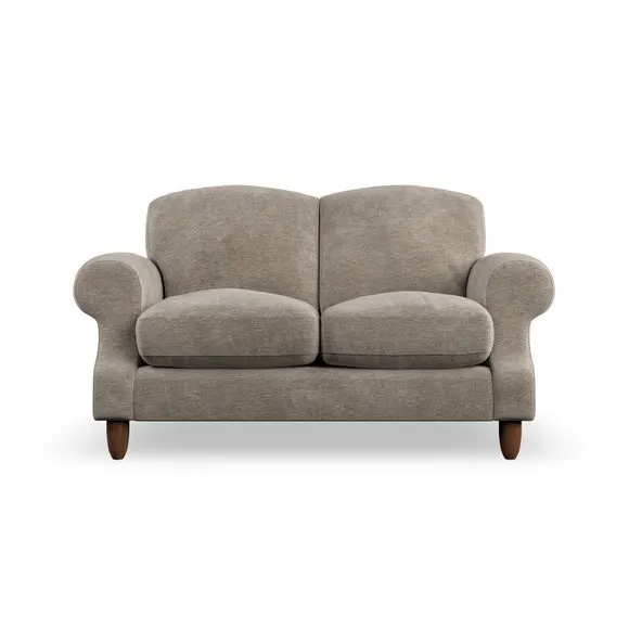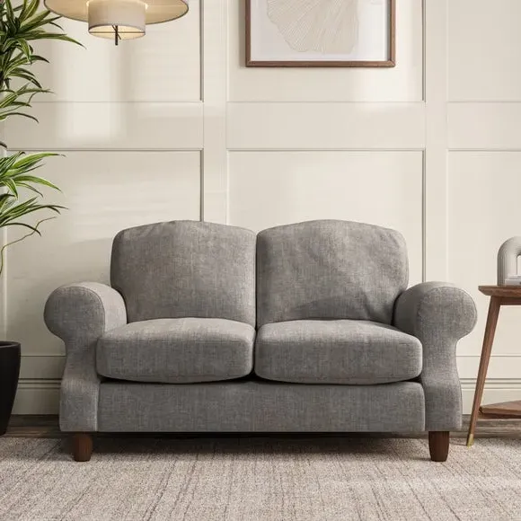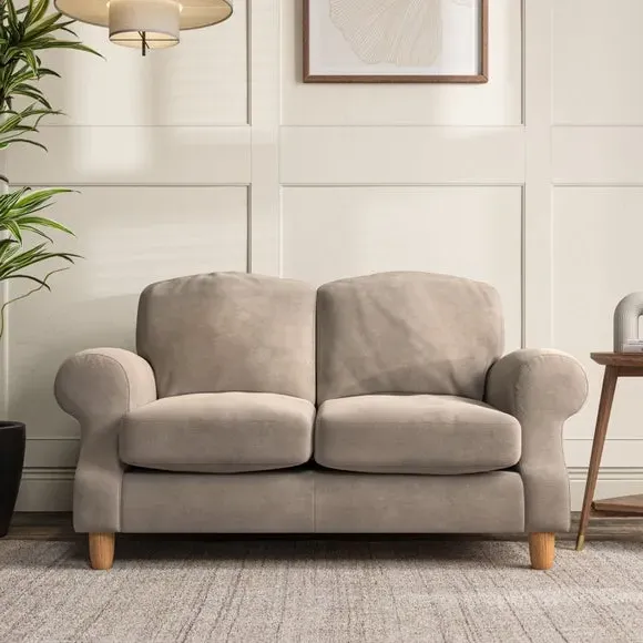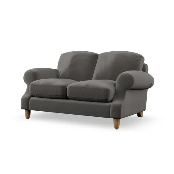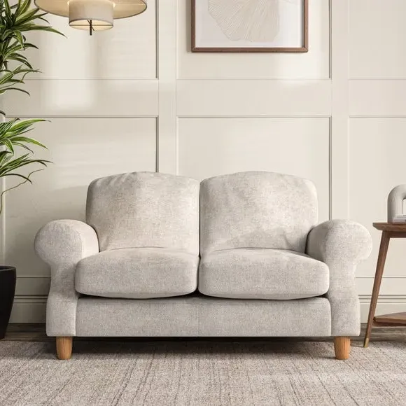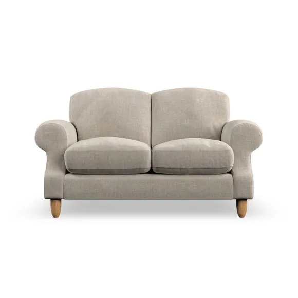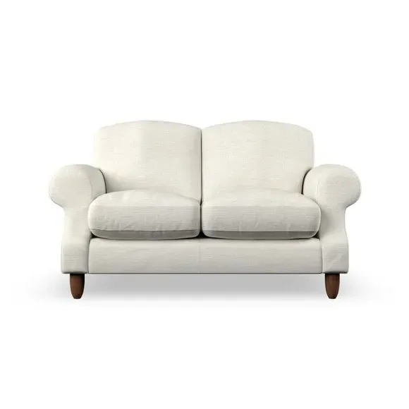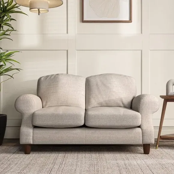 The 2-seater sofa combines comfort with its cut back scroll arms and gently arched back cushions. Its high back cushions with generous fibre filling provide excellent support for your back and shoulders, while the top-stitched detail on the arm front adds sophistication. The serpentine seat springs offer enhanced comfort, and the turned hardwood legs ensure durability and easy assembly.