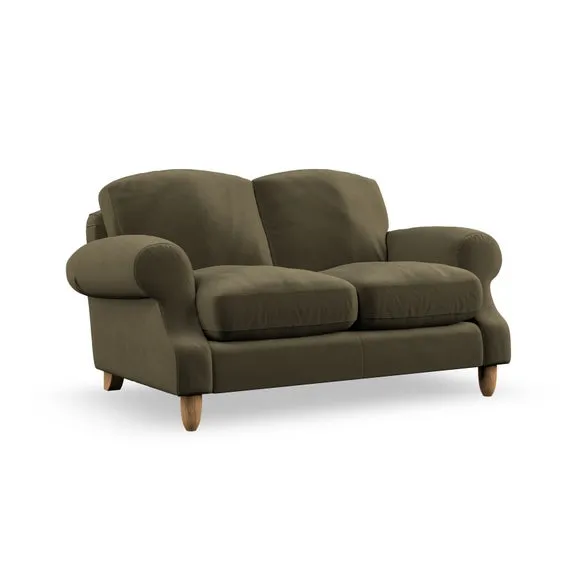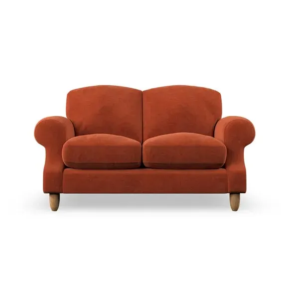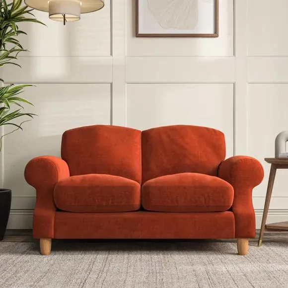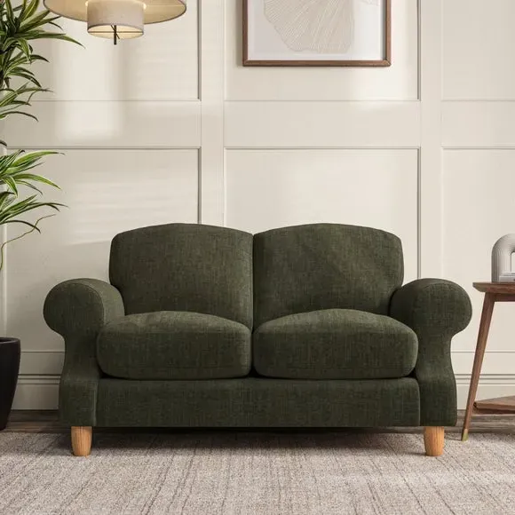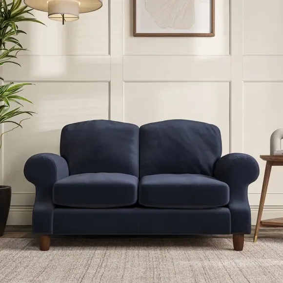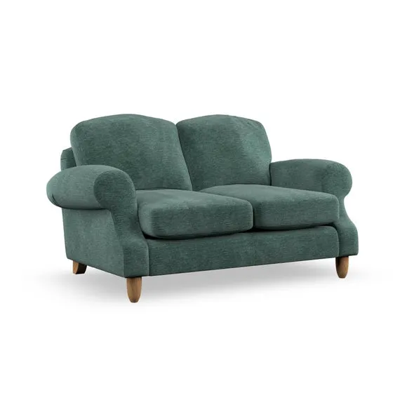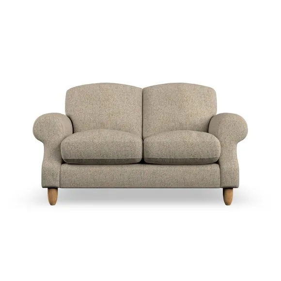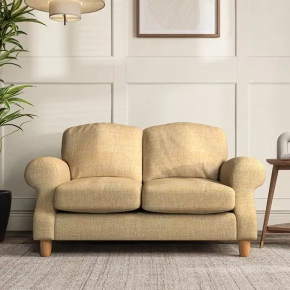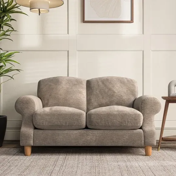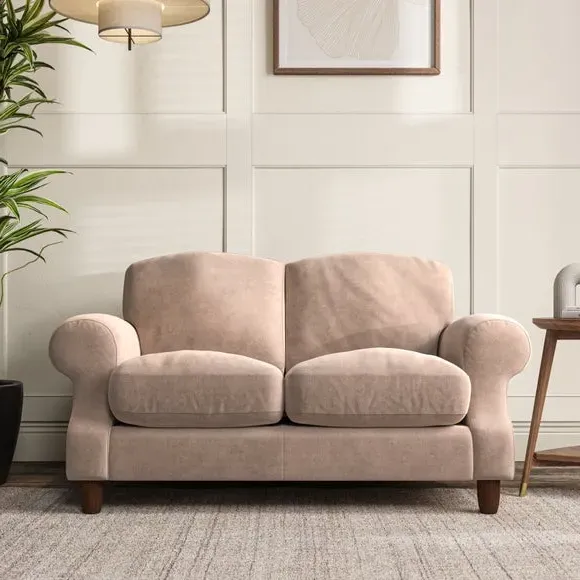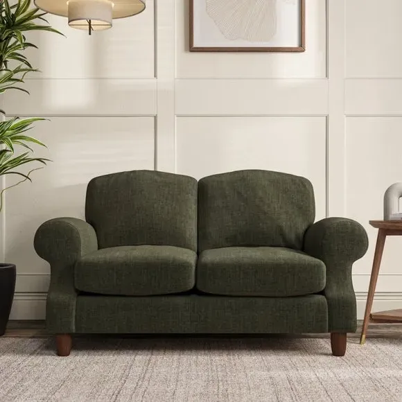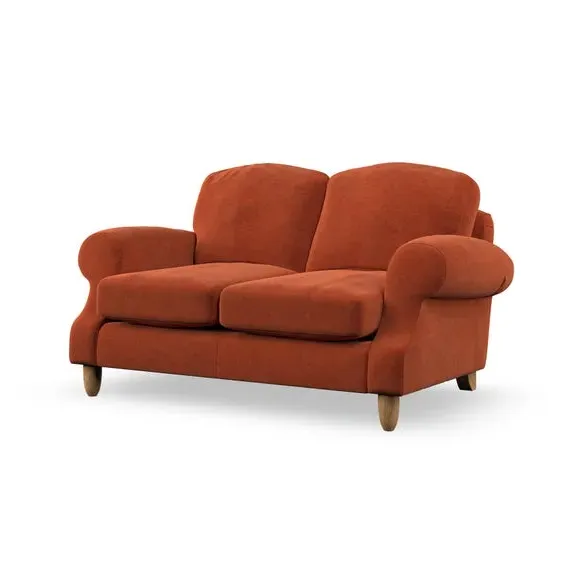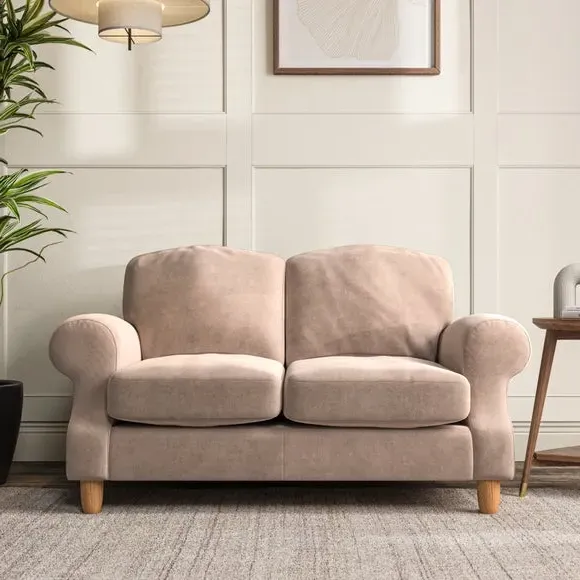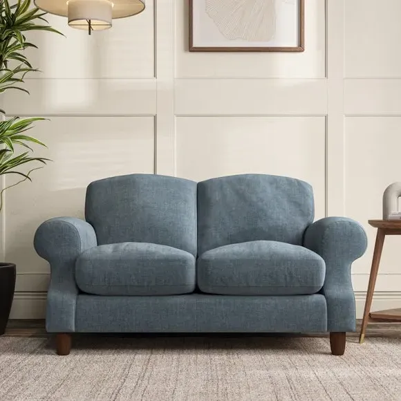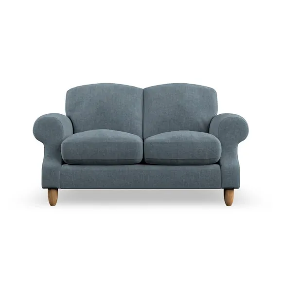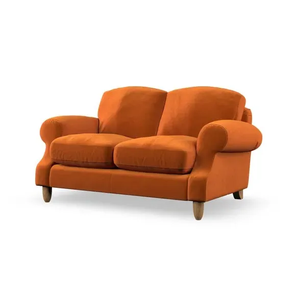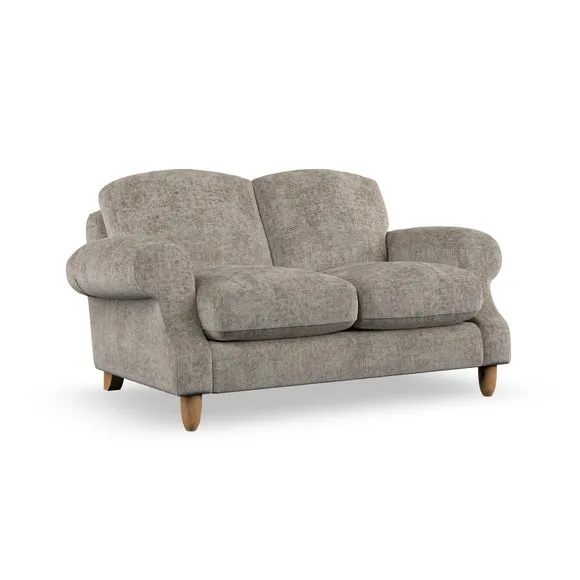 The 2-seater sofa combines comfort with its cut back scroll arms and gently arched back cushions. Its high back cushions with generous fibre filling provide excellent support for your back and shoulders, while the top-stitched detail on the arm front adds sophistication. The serpentine seat springs offer enhanced comfort, and the turned hardwood legs ensure durability and easy assembly.