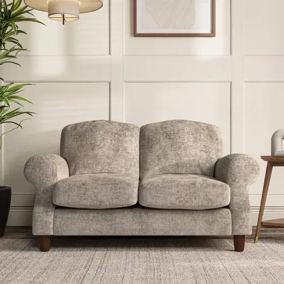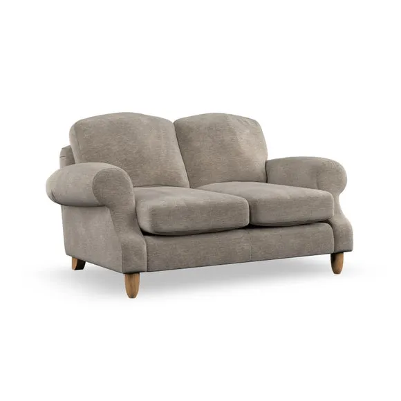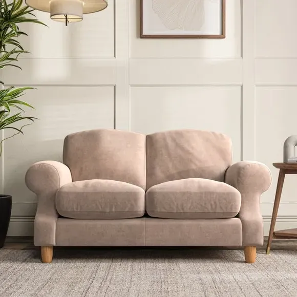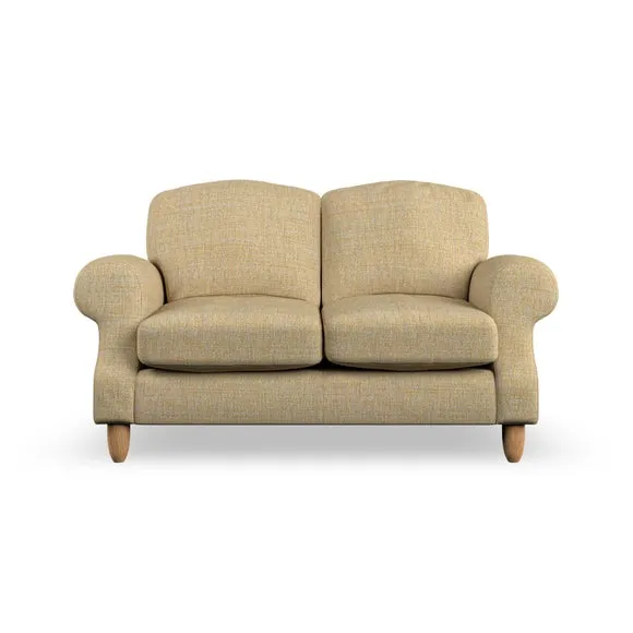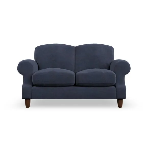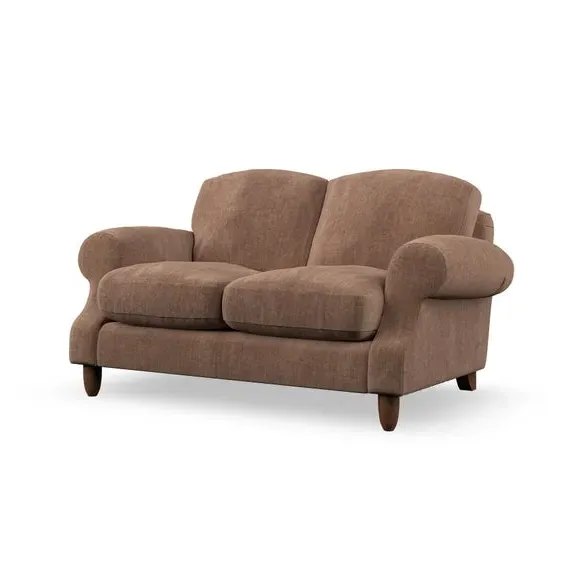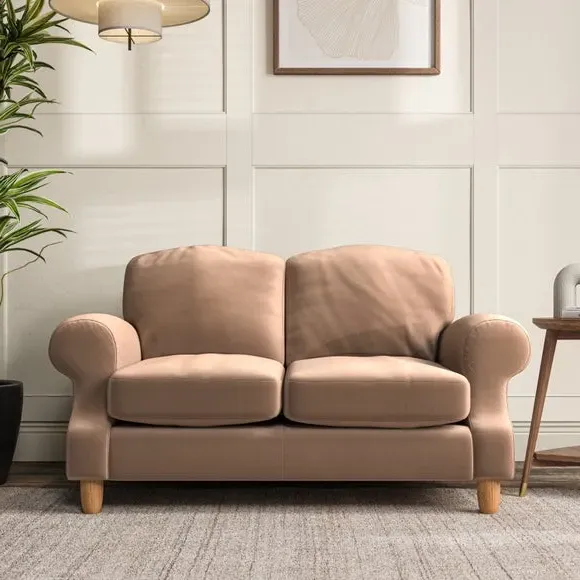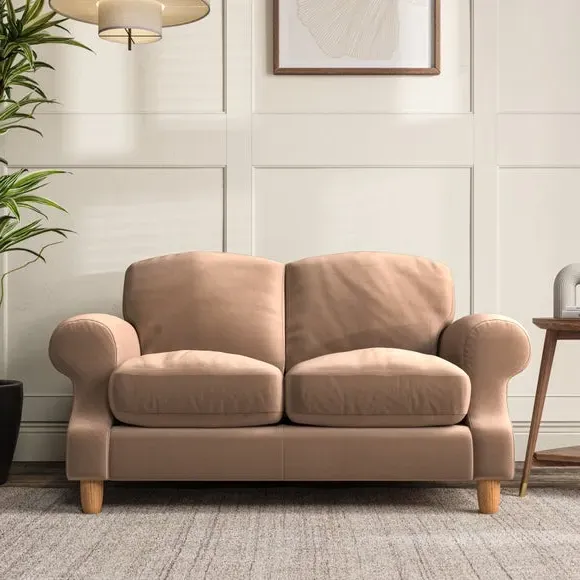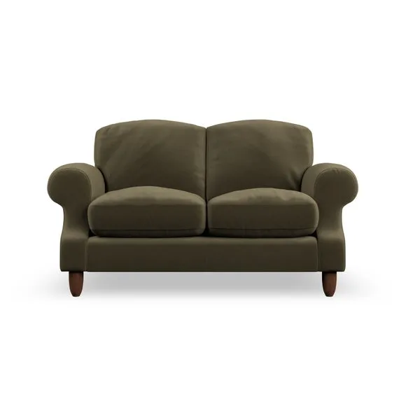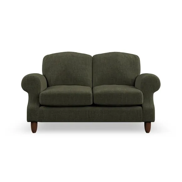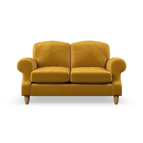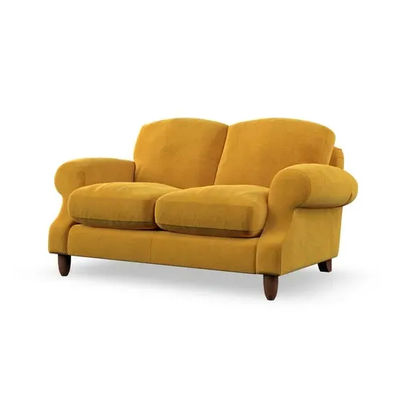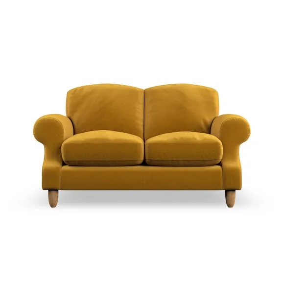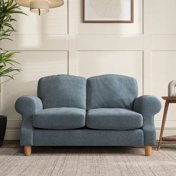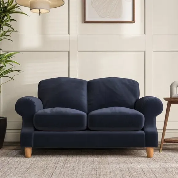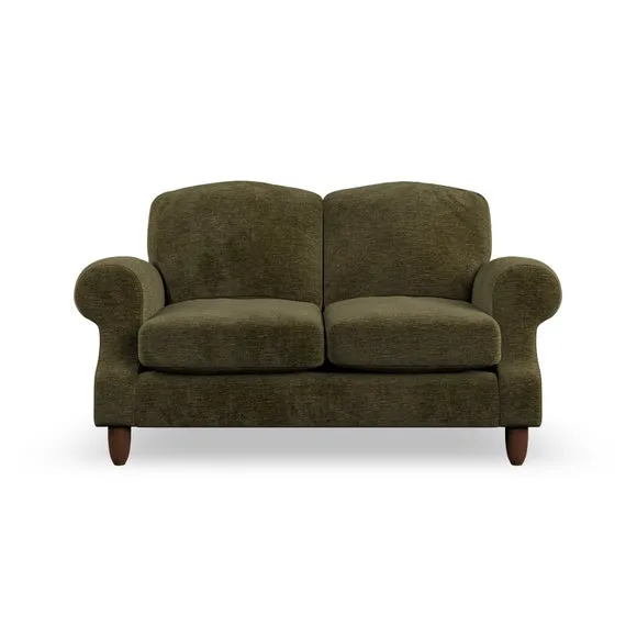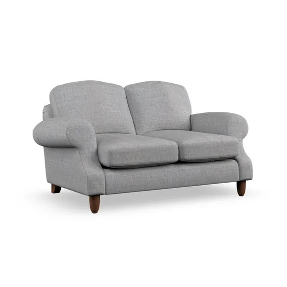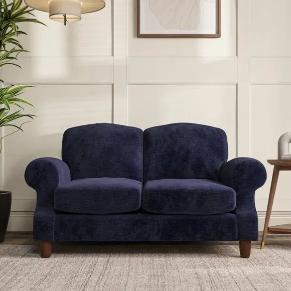 The 2-seater sofa combines comfort with its cut back scroll arms and gently arched back cushions. Its high back cushions with generous fibre filling provide excellent support for your back and shoulders, while the top-stitched detail on the arm front adds sophistication. The serpentine seat springs offer enhanced comfort, and the turned hardwood legs ensure durability and easy assembly.
