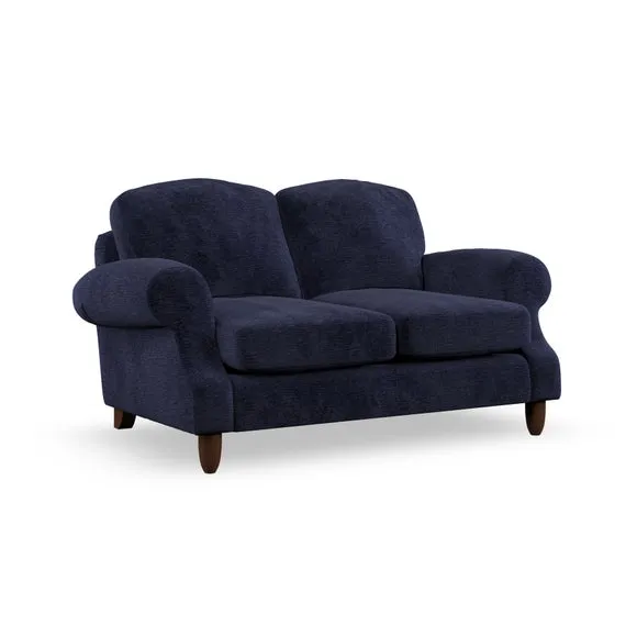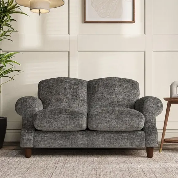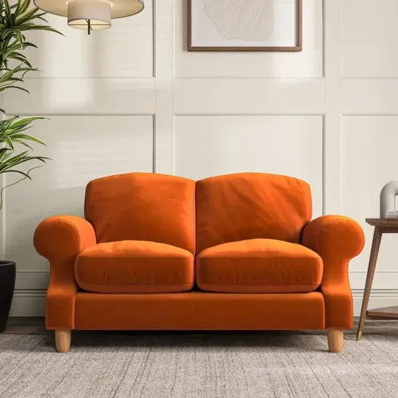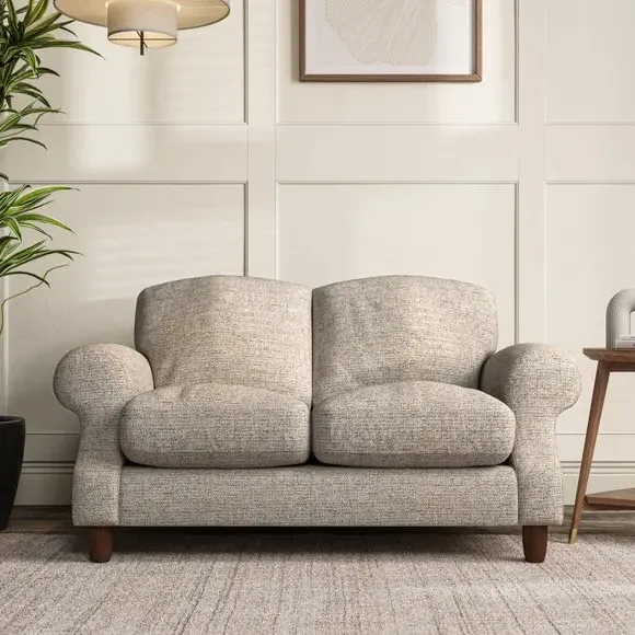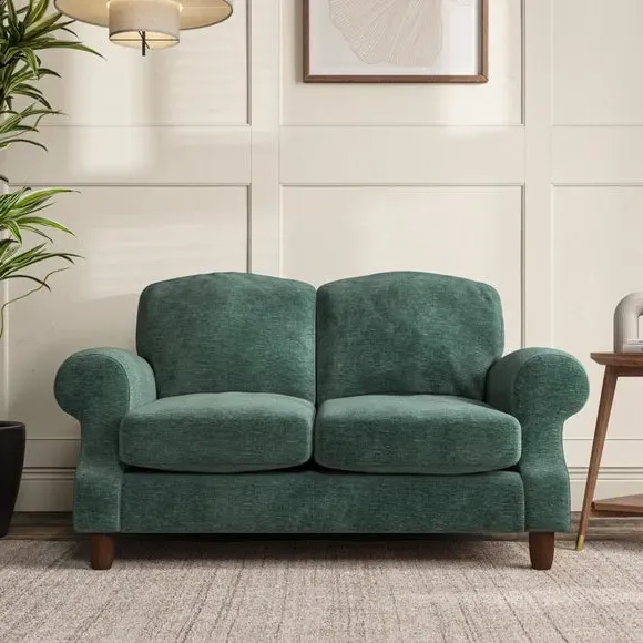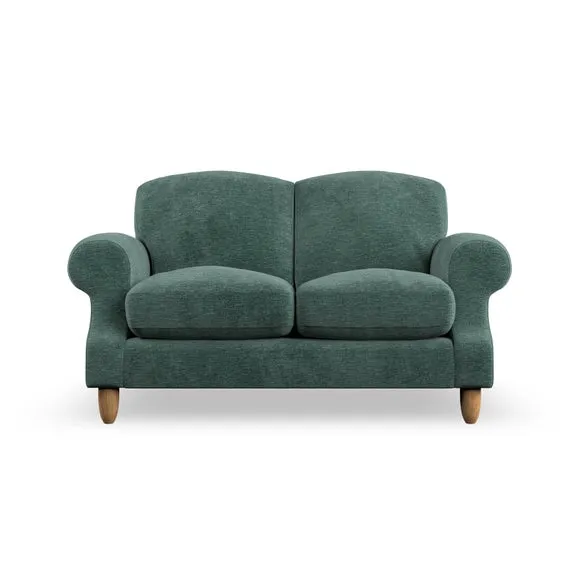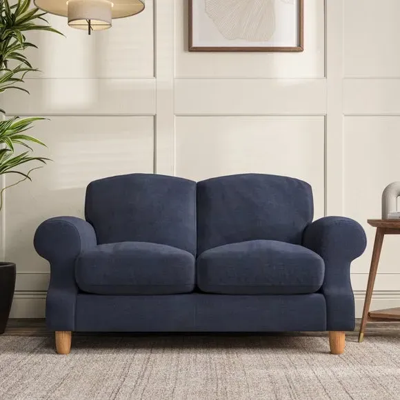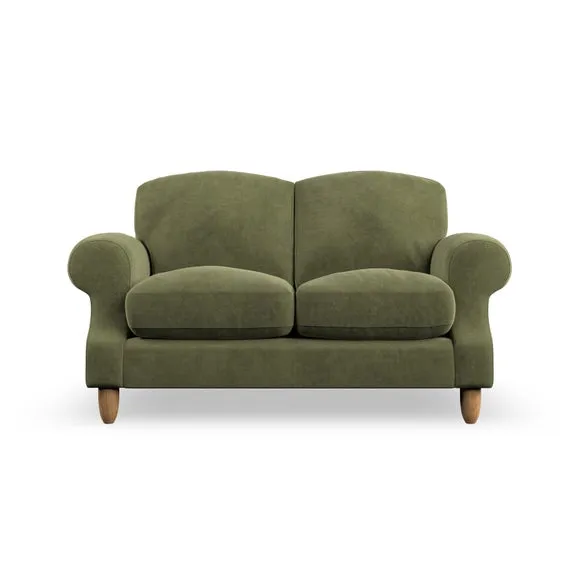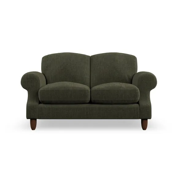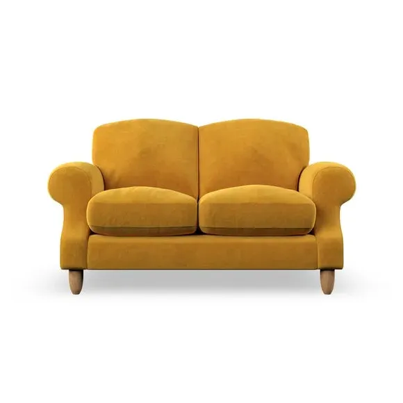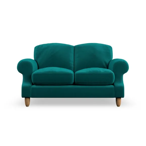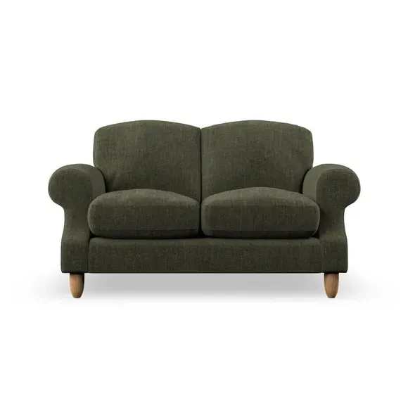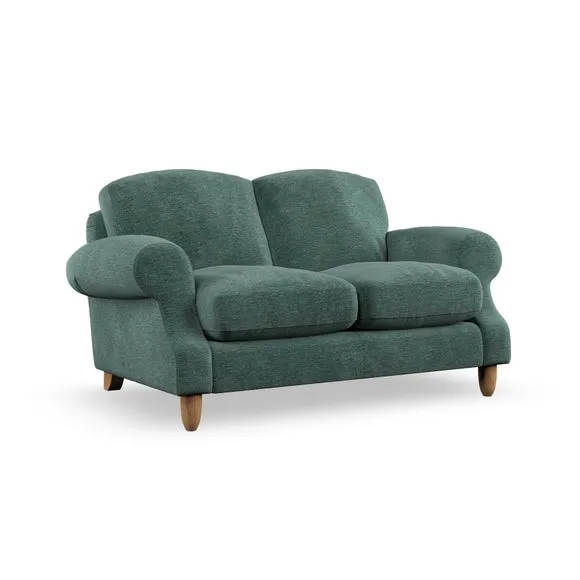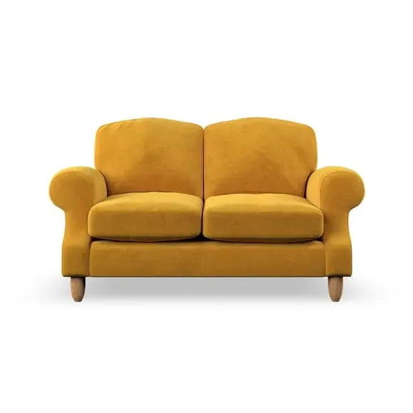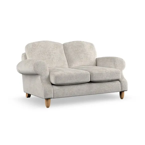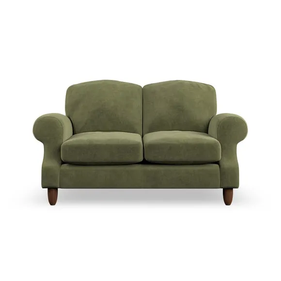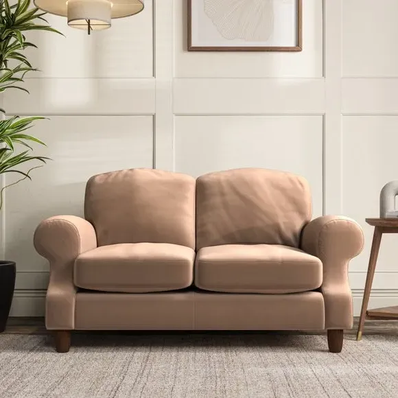 The 2-seater sofa combines comfort with its cut back scroll arms and gently arched back cushions. Its high back cushions with generous fibre filling provide excellent support for your back and shoulders, while the top-stitched detail on the arm front adds sophistication. The serpentine seat springs offer enhanced comfort, and the turned hardwood legs ensure durability and easy assembly.