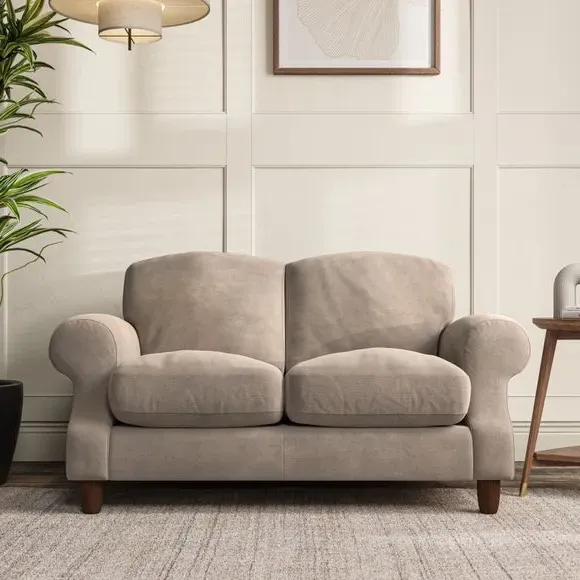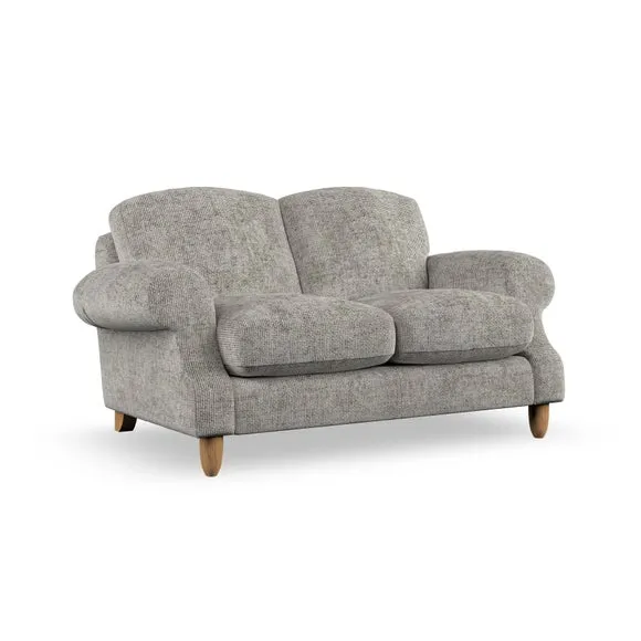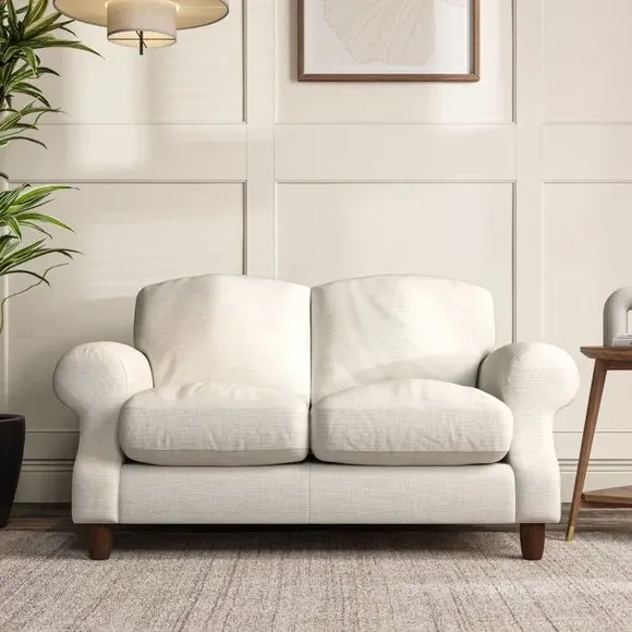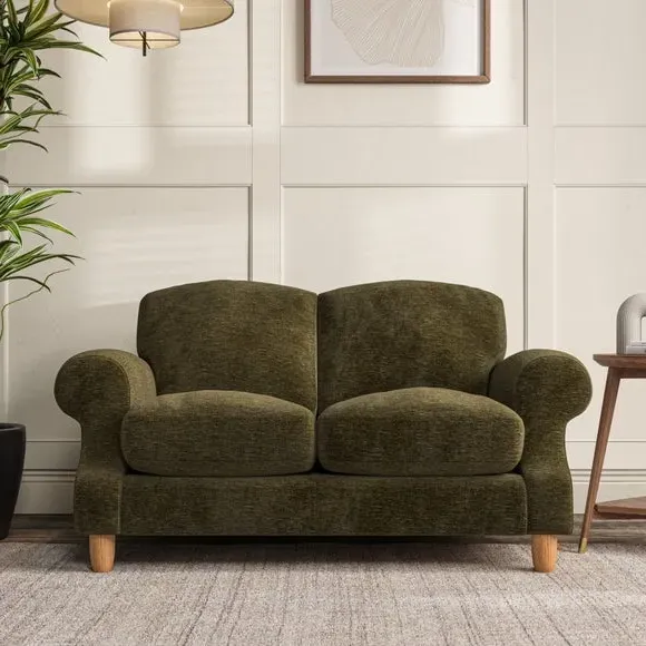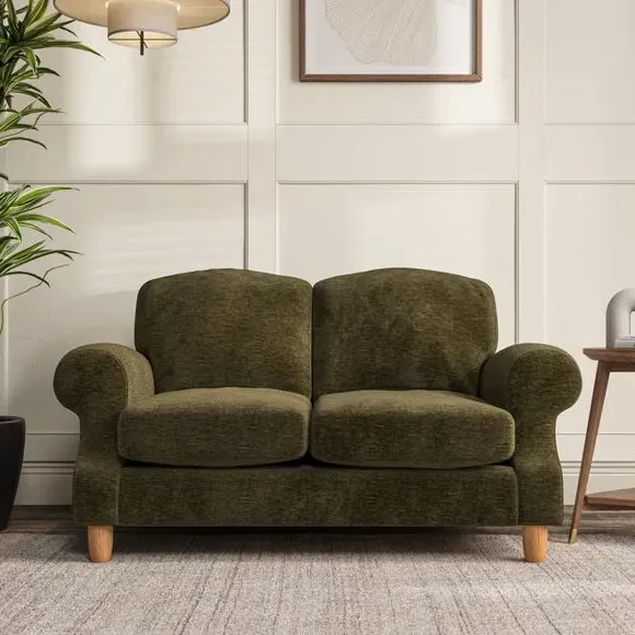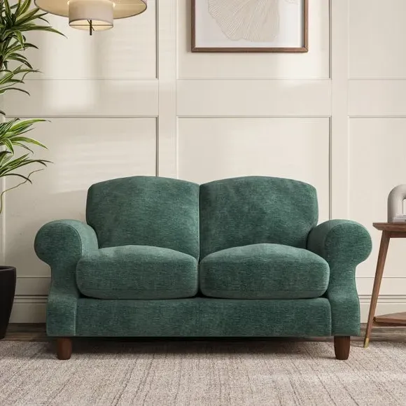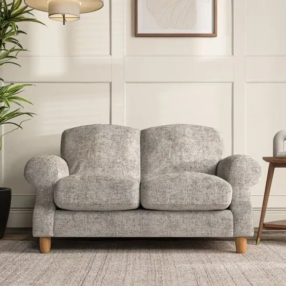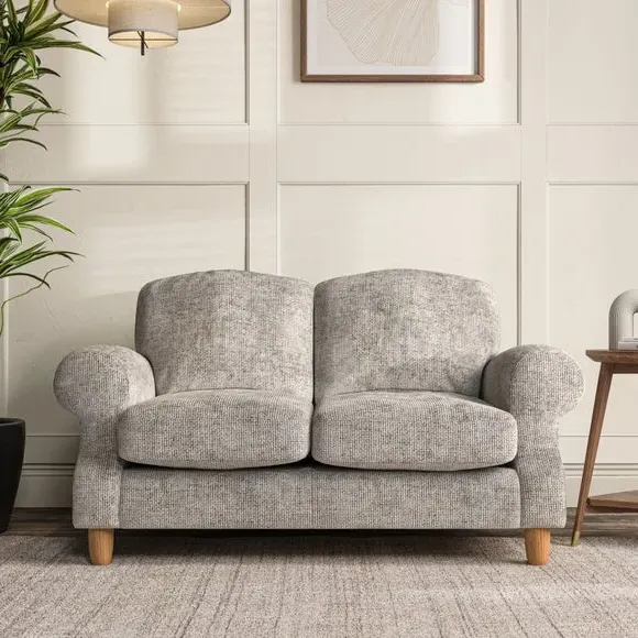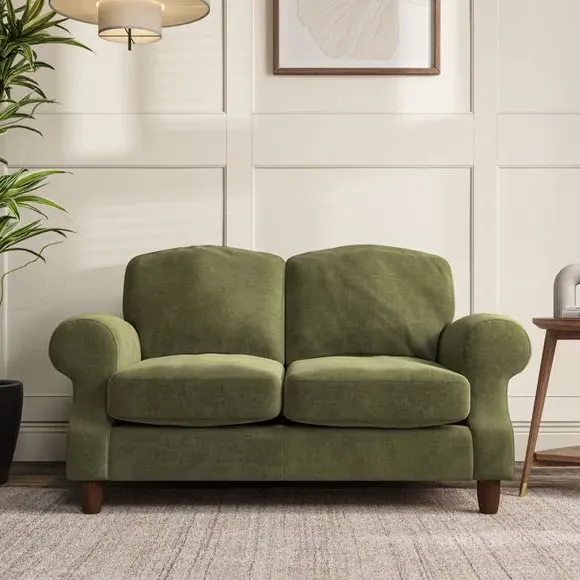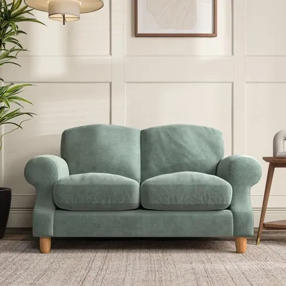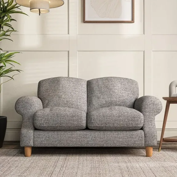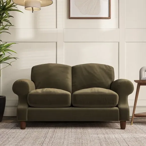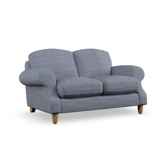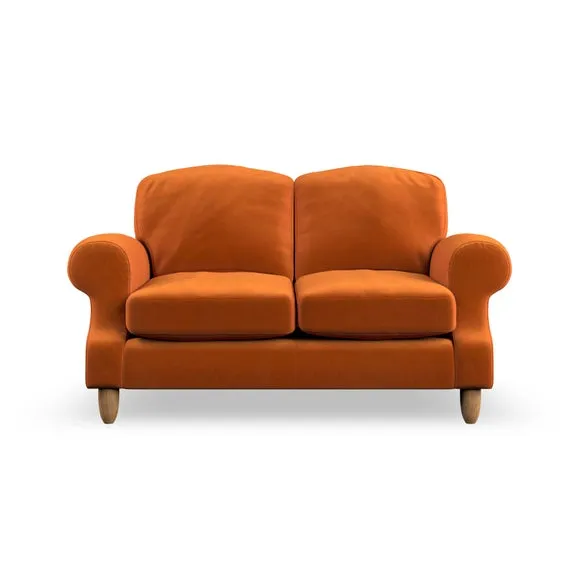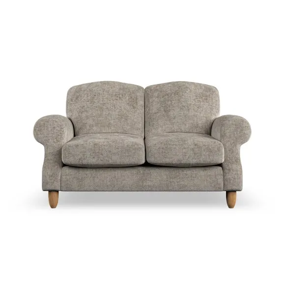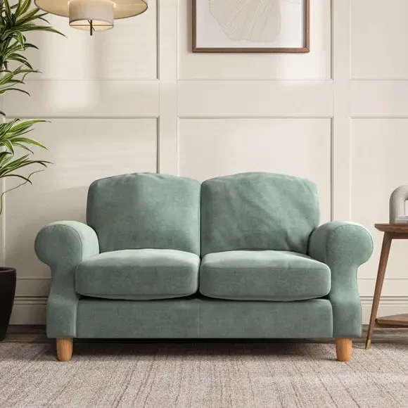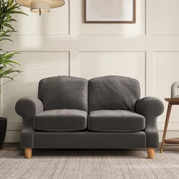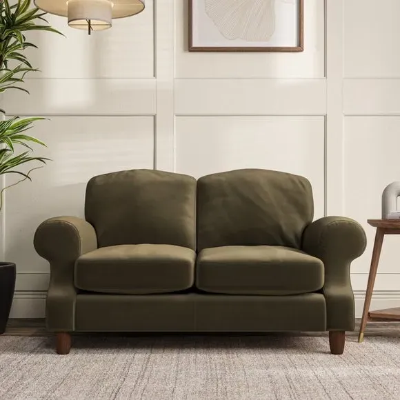 The 2-seater sofa combines comfort with its cut back scroll arms and gently arched back cushions. Its high back cushions with generous fibre filling provide excellent support for your back and shoulders, while the top-stitched detail on the arm front adds sophistication. The serpentine seat springs offer enhanced comfort, and the turned hardwood legs ensure durability and easy assembly.