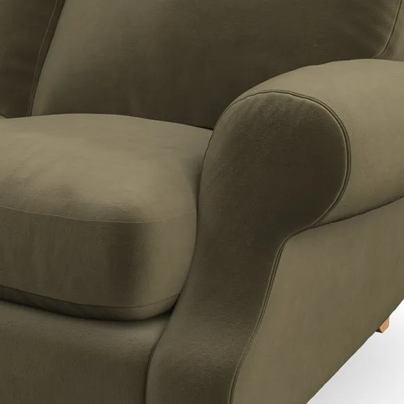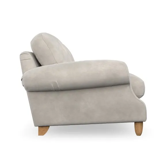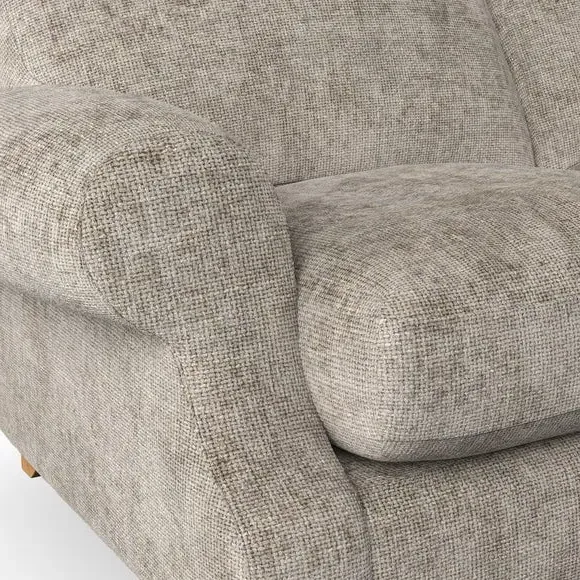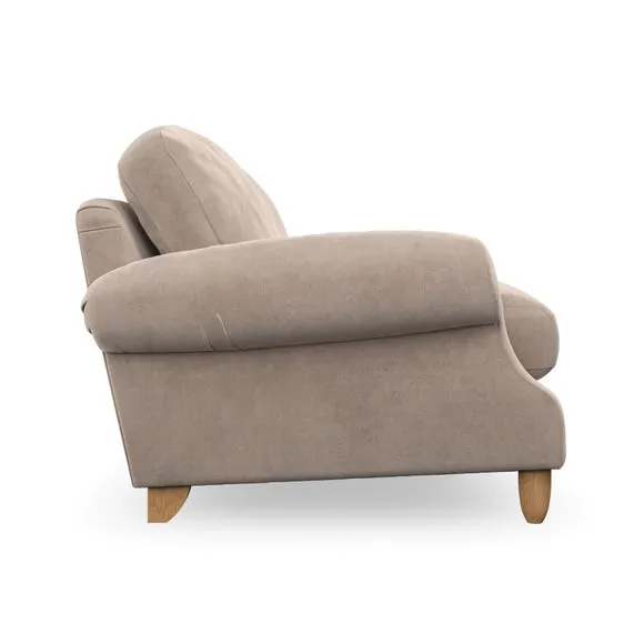 * Elegant style* Top stitched detail* High back cushions* Serpentine seat springs* Choose your support, fabric and leg colour This sofa features a cut back scroll arm and elegant, gently arched back cushions, providing both style and comfort. The top-stitched detail on the arm front adds a touch of sophistication. Higher back cushions with generous fibre filling offer excellent support for your back and shoulders. Customise your comfort by choosing between a low-maintenance foam seat or the inviting ‘Qualofill Blue’ fibre seat, made from 100% recycled polyester. Built for longevity, it includes serpentine seat springs for added comfort. The turned hardwood legs, available in two finishes, are easy to fit.