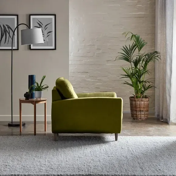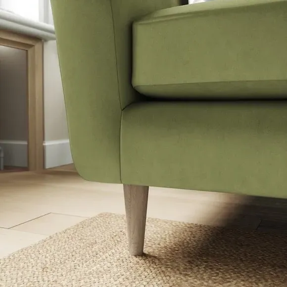 The snuggle chair combines comfort with sustainable design, featuring soft-touch velvet upholstery made from 100% recycled polyester. Its buttoned back cushions create a modern aesthetic, while the foam and fibre-wrap seat provides lasting comfort. The compact design suits smaller spaces without compromising on relaxation.