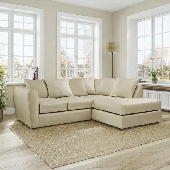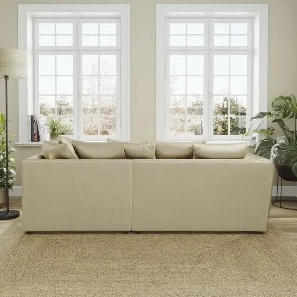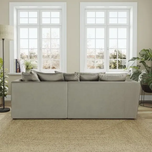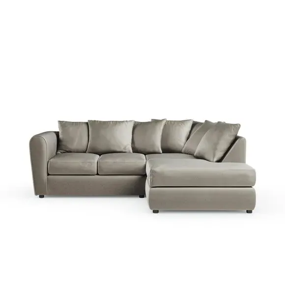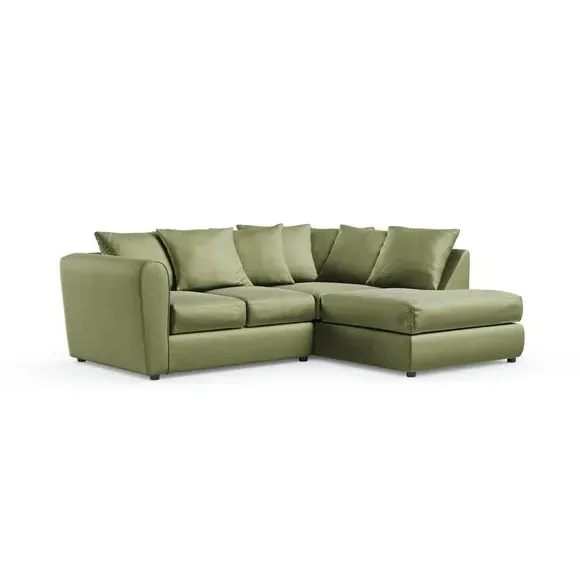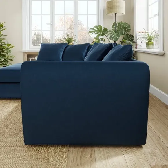 The corner chaise sofa combines contemporary style with its curved arms and luxurious velvet upholstery. Its soft foam-filled seats provide comfortable support, while the fibre-filled scatter back cushions add cosy relaxation. Made from 100% recycled polyester velvet fabric, this low-maintenance piece offers both durability and sustainability. Available in left or right-hand corner configurations to suit different layouts.