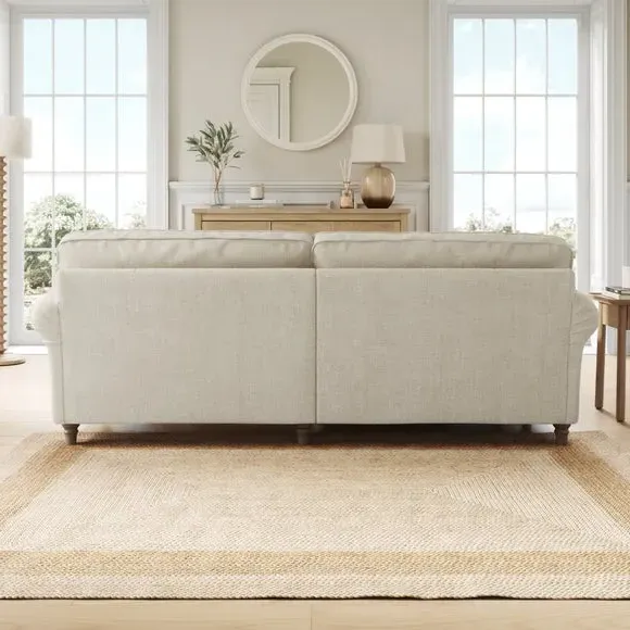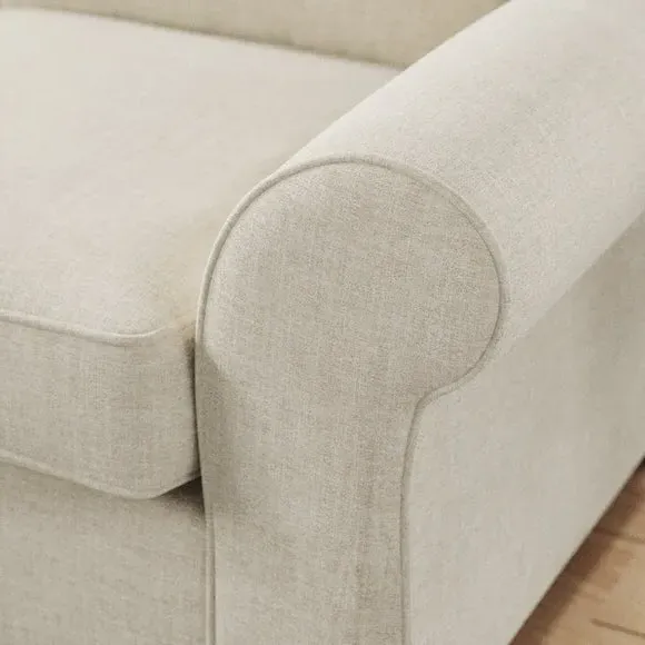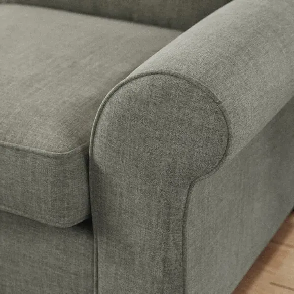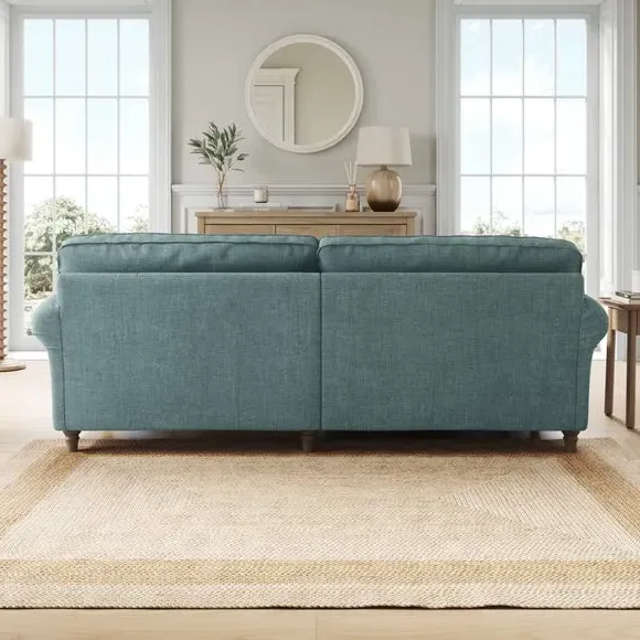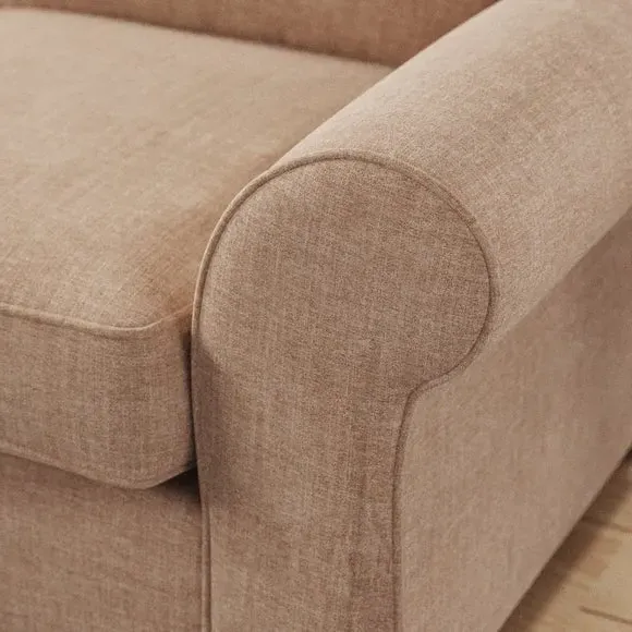 * Classic Shape* Curved arms* Foam and Fibre filled* Turned wooden feet With gracefully scrolled arms and elegantly turned wooden feet, this sofa radiates timeless elegance that effortlessly elevates any room. Available in a selection of colour palettes, the plush chenille upholstery is adorned with piped edge detailing for a touch of refinement. Enhanced with brand-new foam seat and back cushions, it promises luxurious comfort and lasting support. This product has fibre filled seat cushions. This means they require vigorous plumped by shaking and redistributing the fibres daily. This will add air back into the fibres and preventing clumping, flattening and the seat dipping.