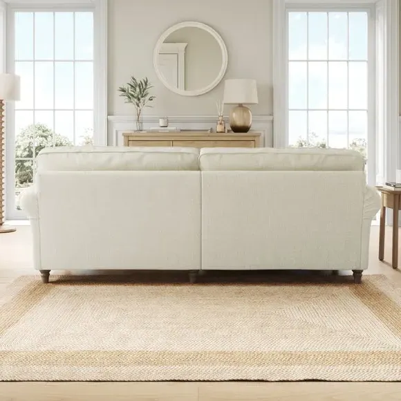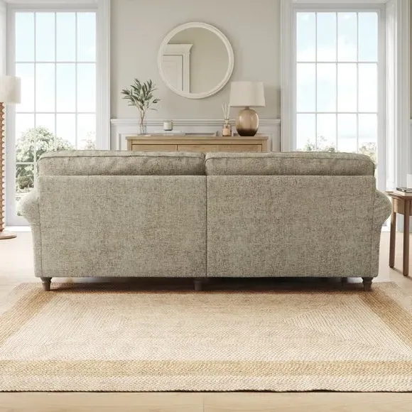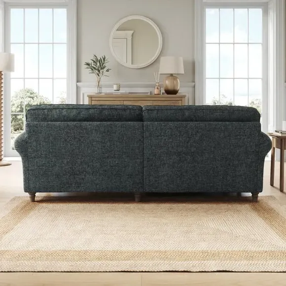 * Classic Shape* Curved arms* Foam and Fibre filled* Turned wooden feet Featuring gracefully curved arms and robust wooden feet, this sofa embodies timeless sophistication that effortlessly enhances any living space. Available in a range of rich hues, the chunky chenille upholstery is complemented by elegant piping detail, adding a refined touch to its design. Enhanced with freshly filled foam cushions, it promises superior comfort and lasting support. This product has fibre filled seat cushions. This means they require vigorous plumped by shaking and redistributing the fibres daily. This will add air back into the fibres and preventing clumping, flattening and the seat dipping.
