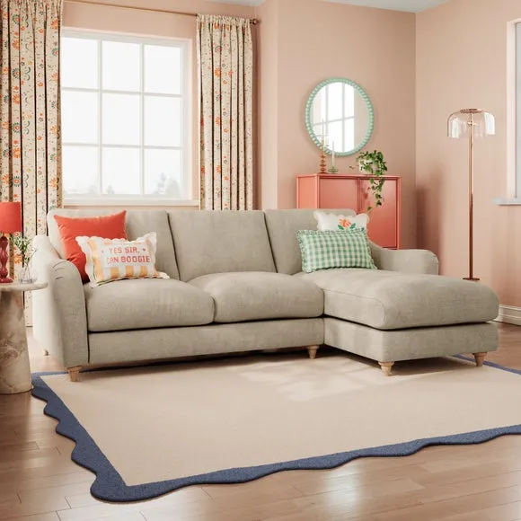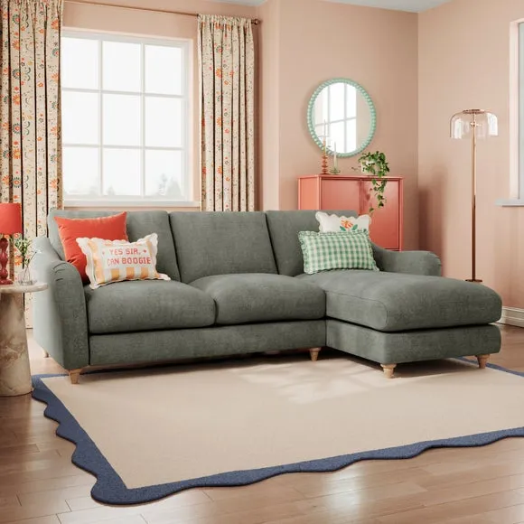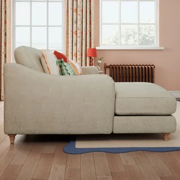 * Contemporary Sofa* Soft Upholstery* Curved Arms* Extra Pleat Detail* Left or Right Hand Facing Options With elegantly curved arms and an extra pleat detail, this corner chaise boasts a sumptuously deep fibre-filled seat crafted with precision and care. The exquisite Tonal Plush Chenille provides a diverse array of beautiful shades to complement any interior. Choose between left or right-hand facing to tailor the sofa to your space. This product has fibre filled seat cushions. This means they require vigorous plumped by shaking and redistributing the fibres daily. This will add air back into the fibres and preventing clumping, flattening and the seat dipping.