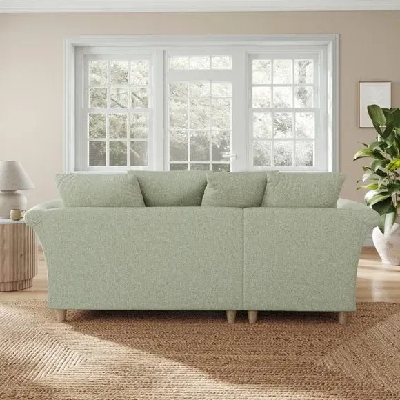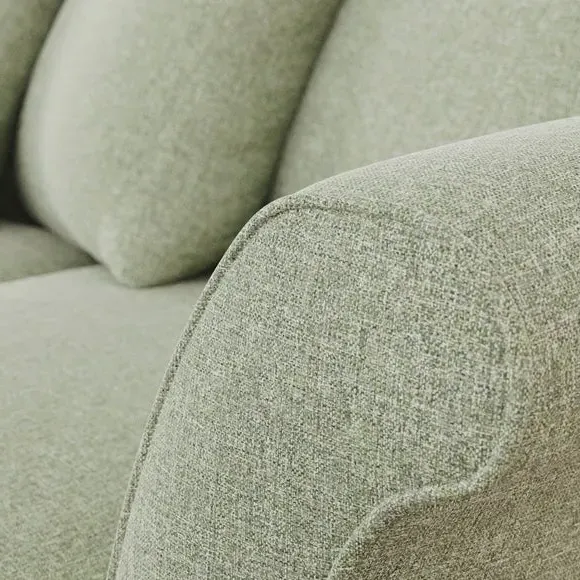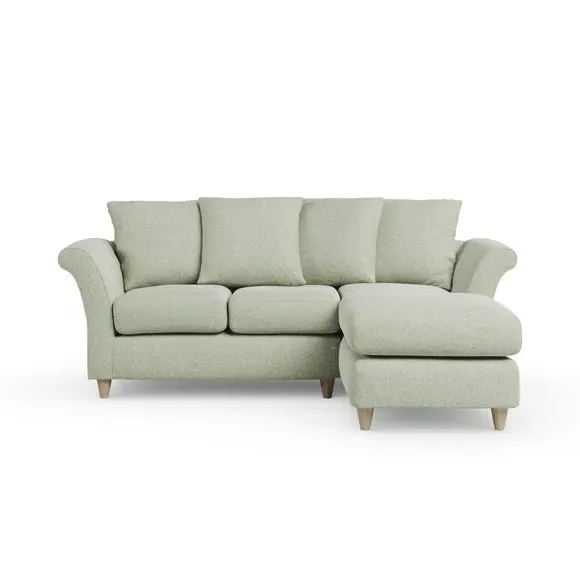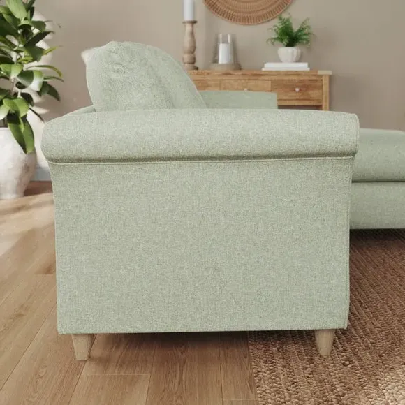 The corner chaise sofa combines contemporary style with plush comfort through its soft textured fabric upholstery. Its curved arms and scatter back cushions provide relaxed support, while the foam-filled seats offer lasting comfort. The chaise section can be configured as left or right hand facing to suit your space. The soft green fabric adds fresh appeal with its soft texture and durable construction.
