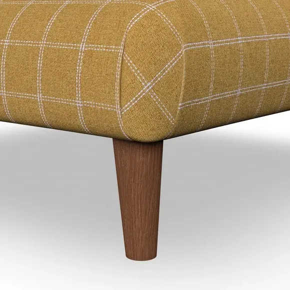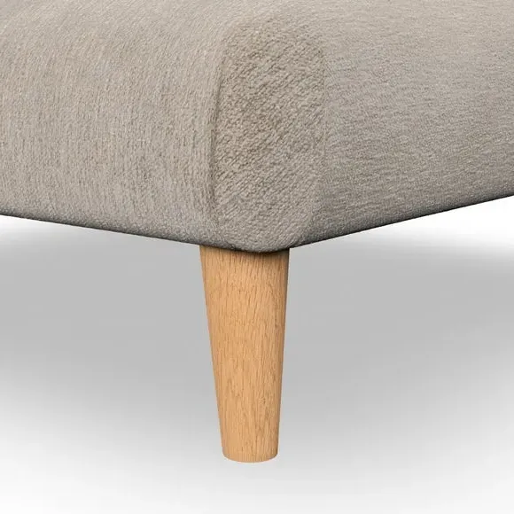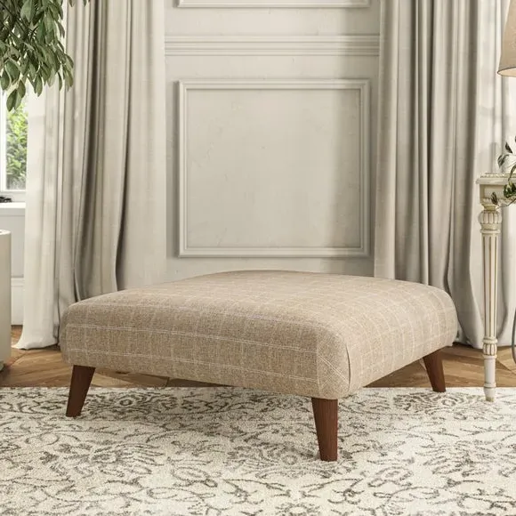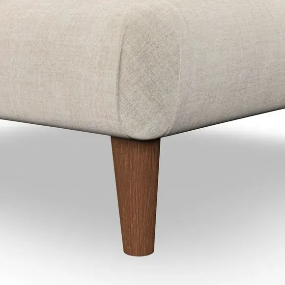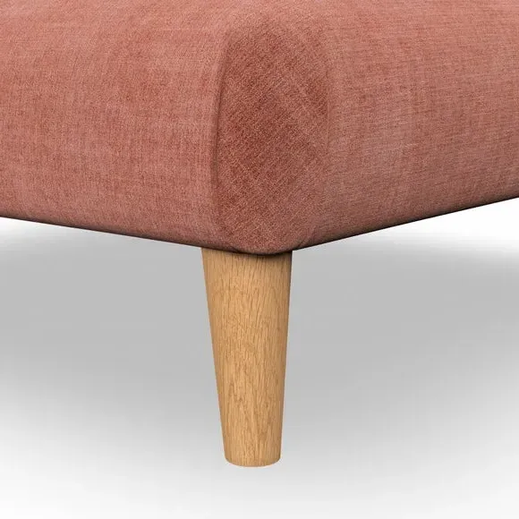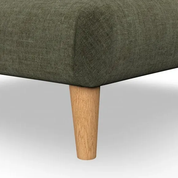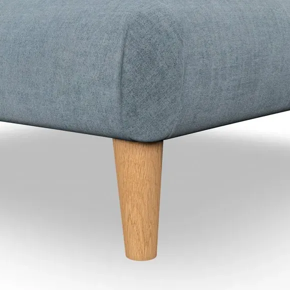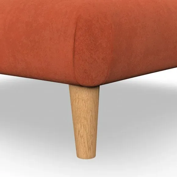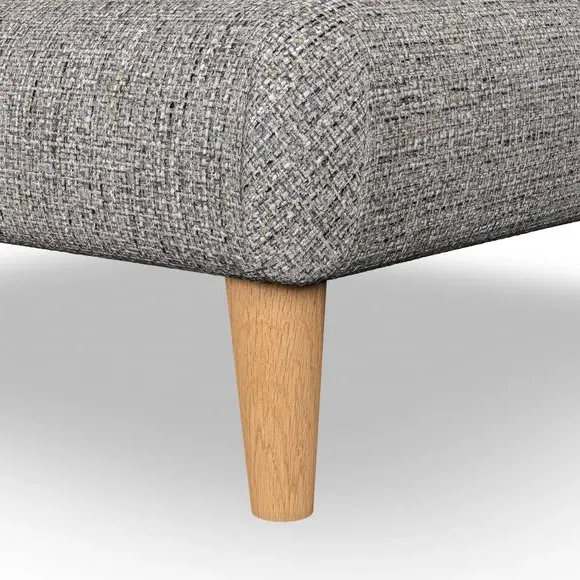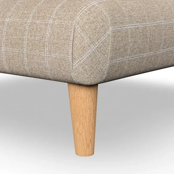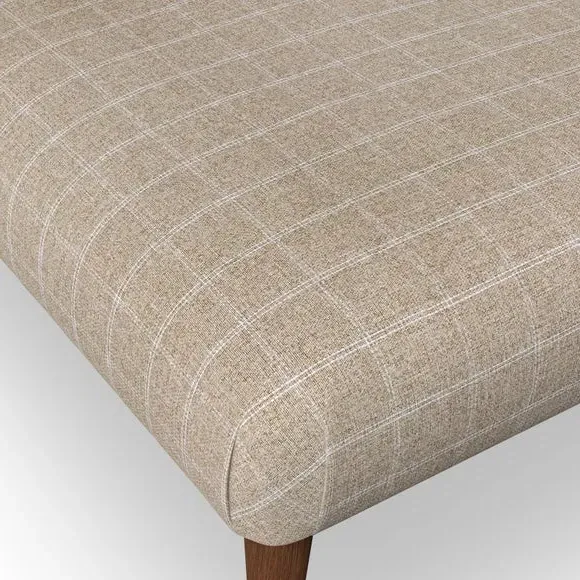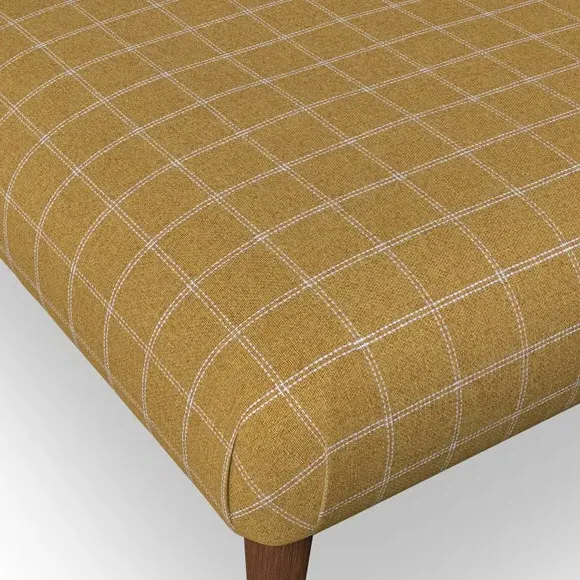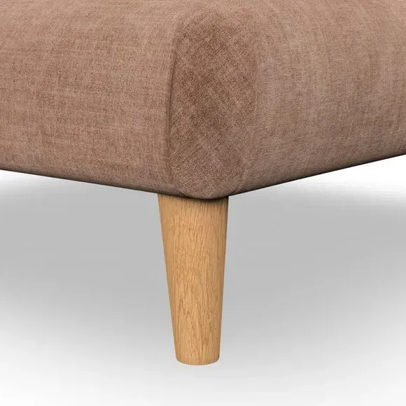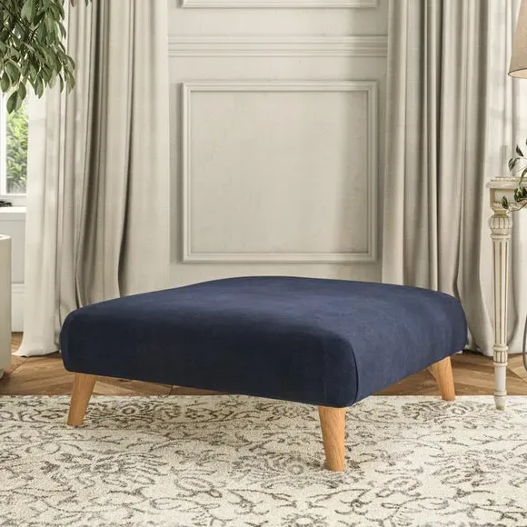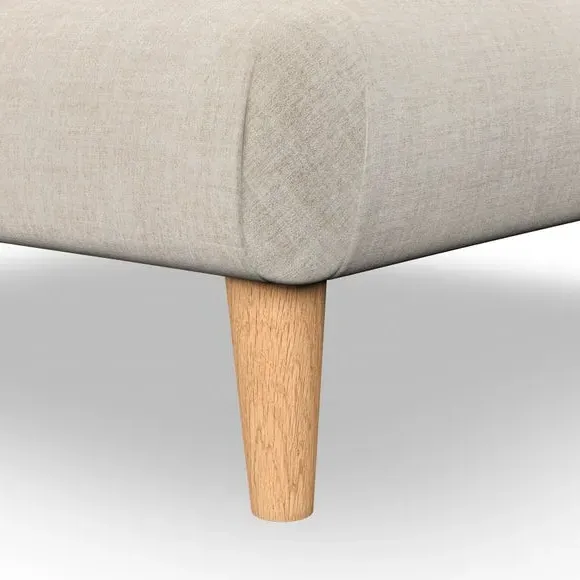 The footstool offers customisable comfort with its plush cushion top that can be tailored with your choice of fabric and colour. Its sturdy base provides lasting durability, while the turned hardwood legs add sophistication with two available finishes. The versatile design serves as both a footrest and extra seating, and the made-to-order construction ensures quality craftsmanship.