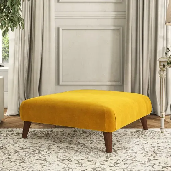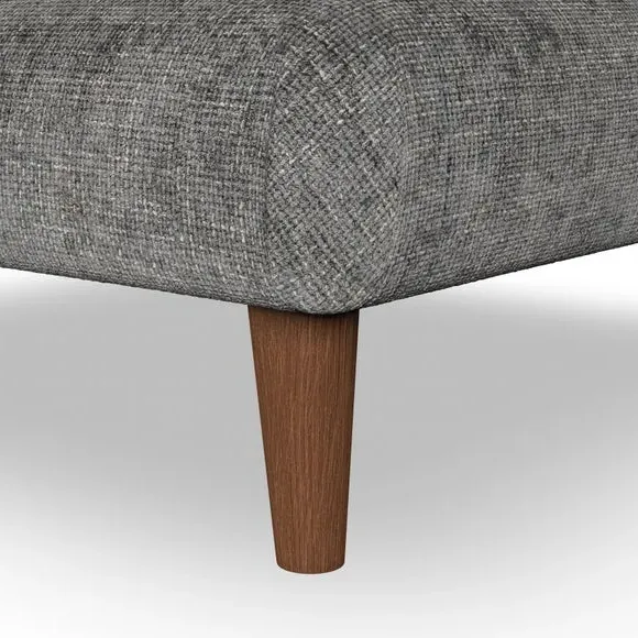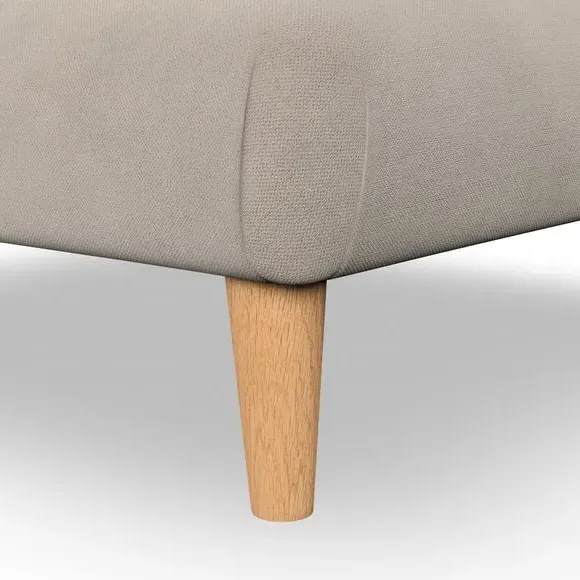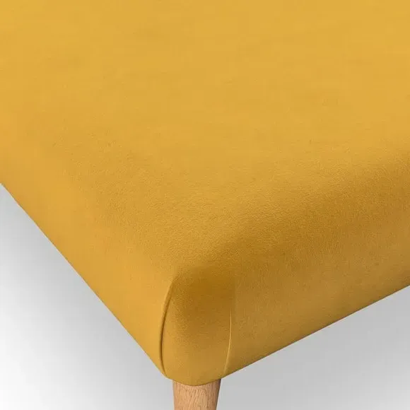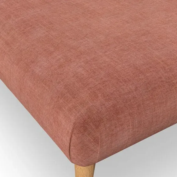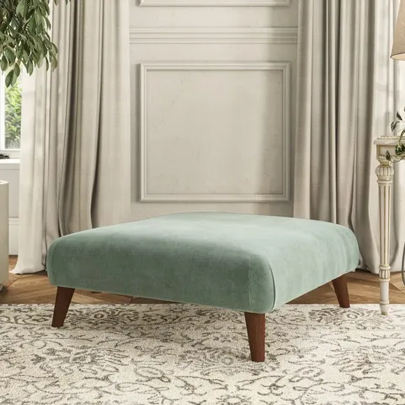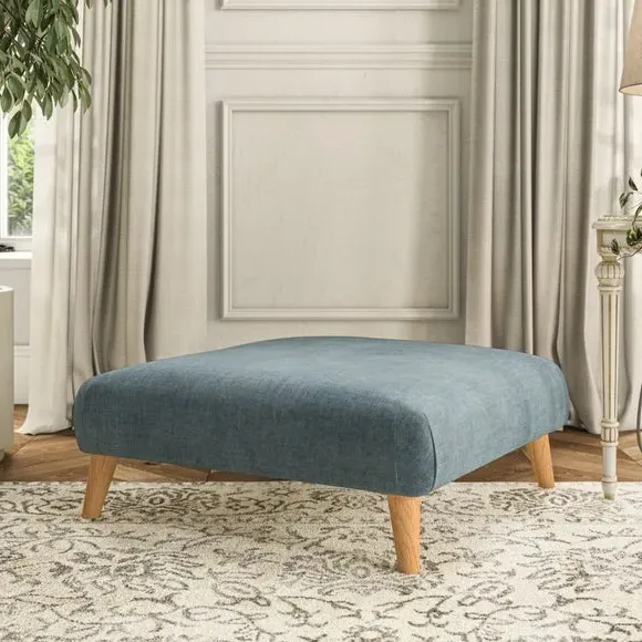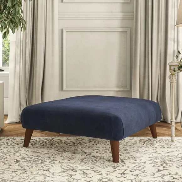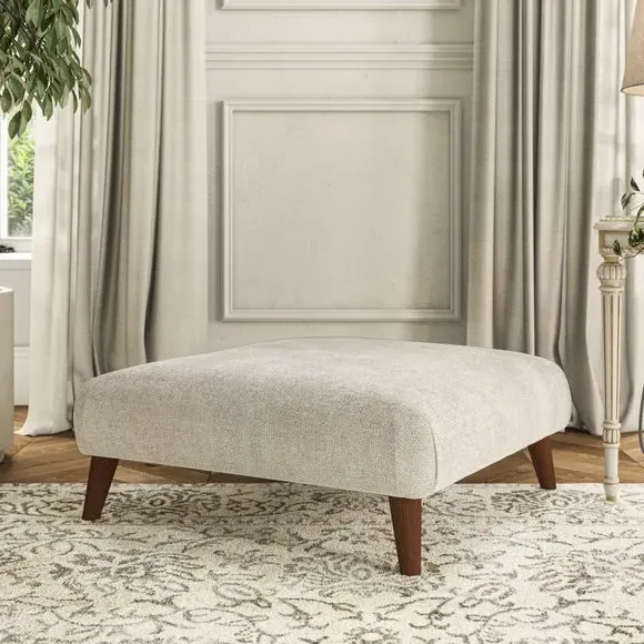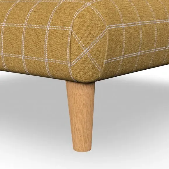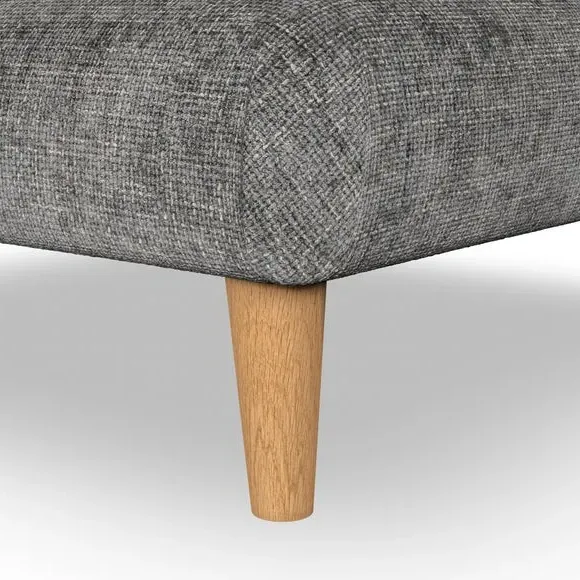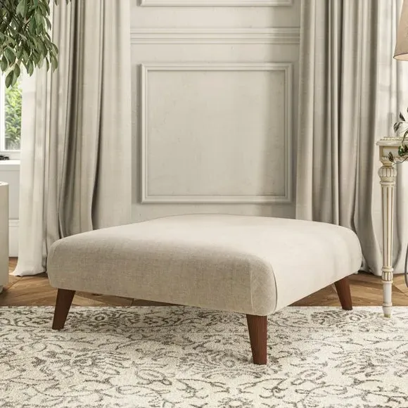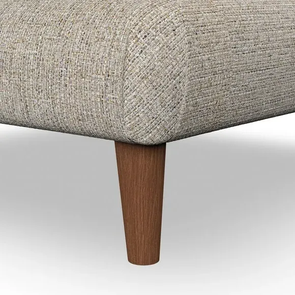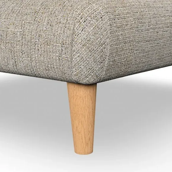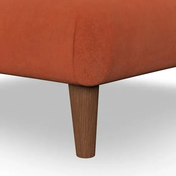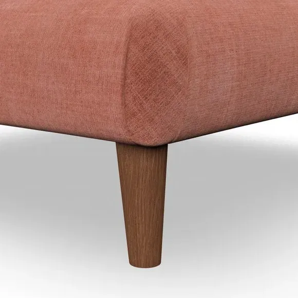 The footstool offers customisable comfort with its plush cushion top that can be tailored with your choice of fabric and colour. Its sturdy base provides lasting durability, while the turned hardwood legs add sophistication with two available finishes. The versatile design serves as both a footrest and extra seating, and the made-to-order construction ensures quality craftsmanship.