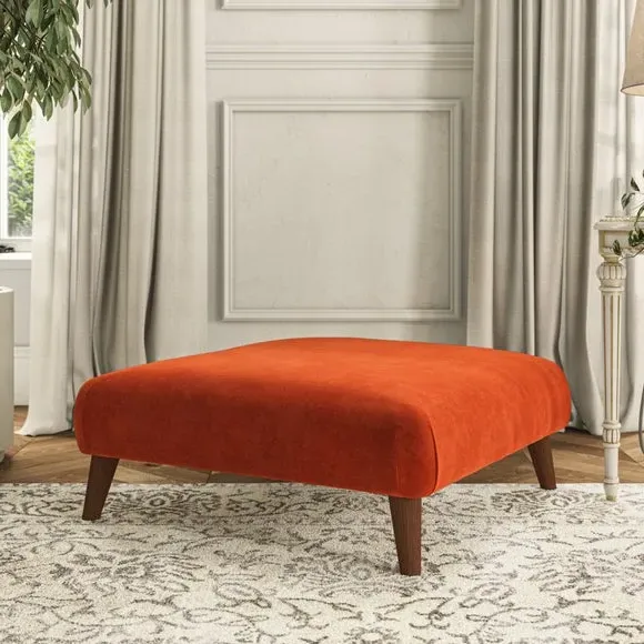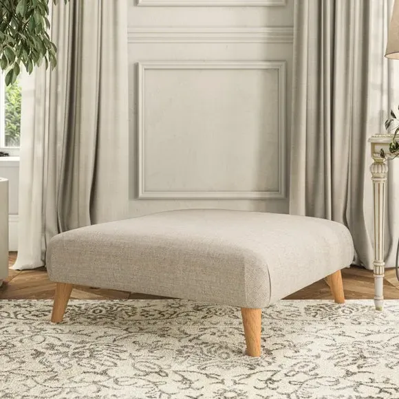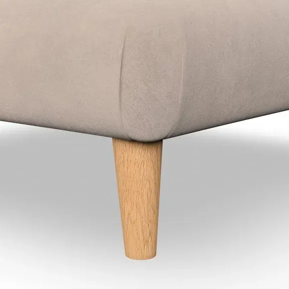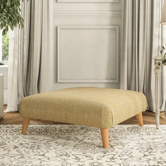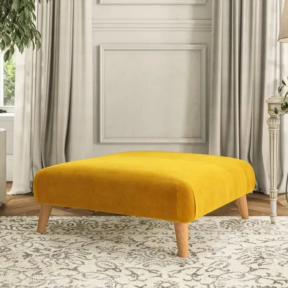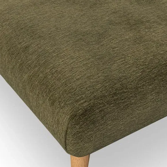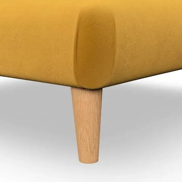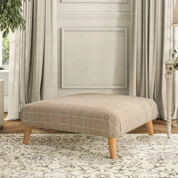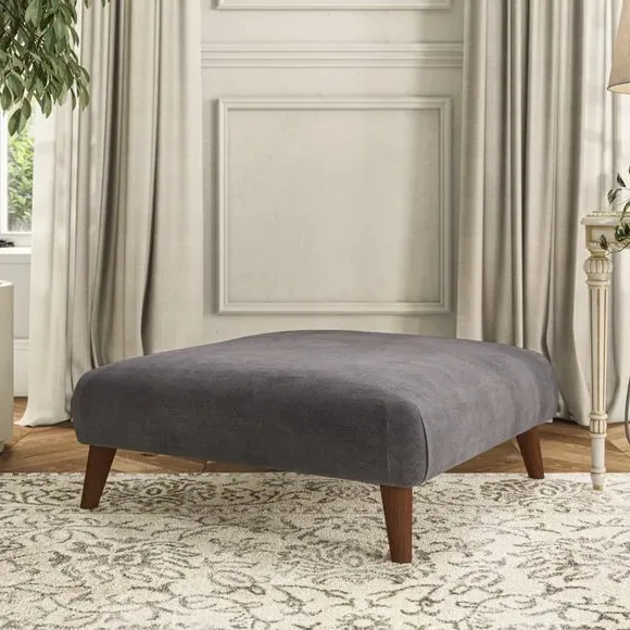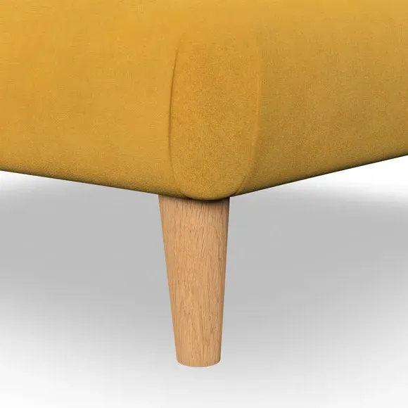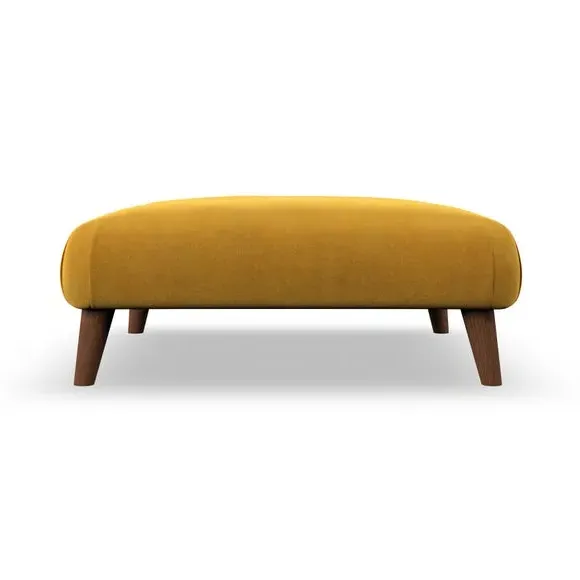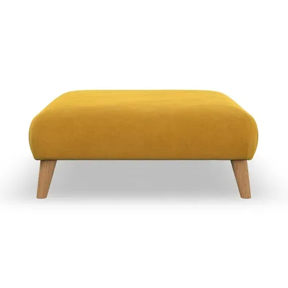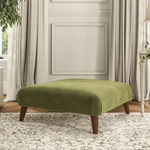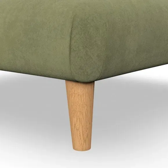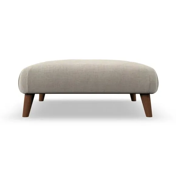 The footstool offers customisable comfort with its plush cushion top that can be tailored with your choice of fabric and colour. Its sturdy base provides lasting durability, while the turned hardwood legs add sophistication with two available finishes. The versatile design serves as both a footrest and extra seating, and the made-to-order construction ensures quality craftsmanship.