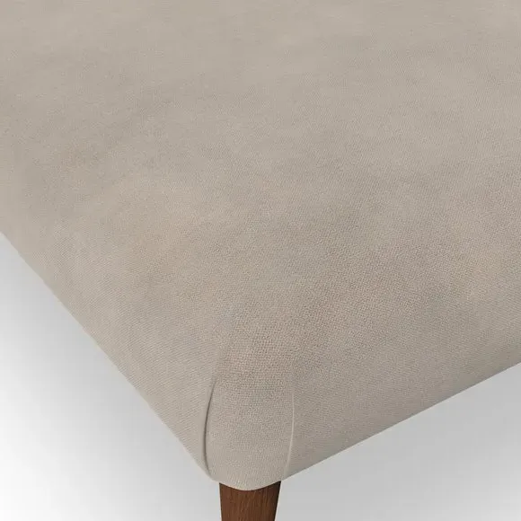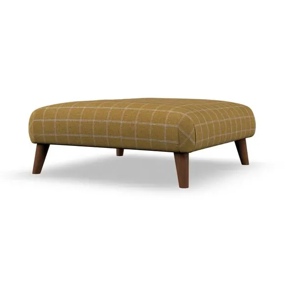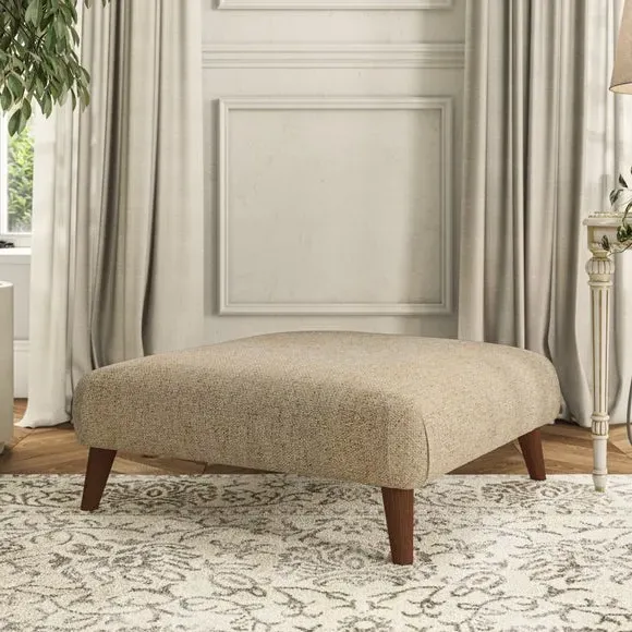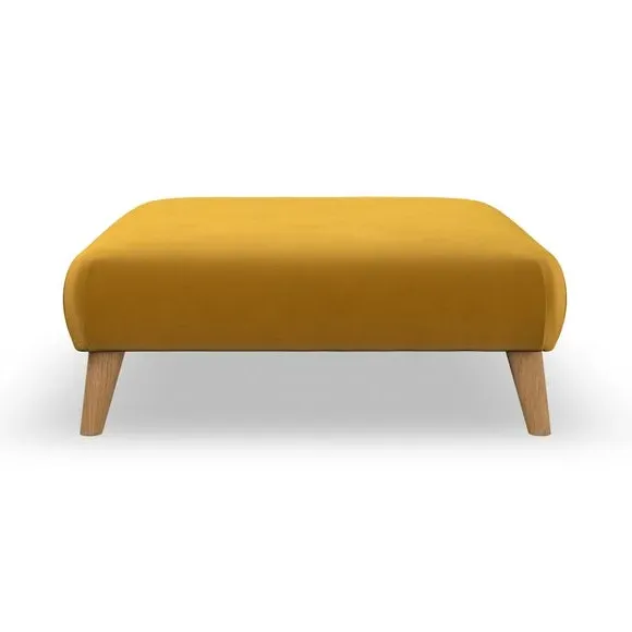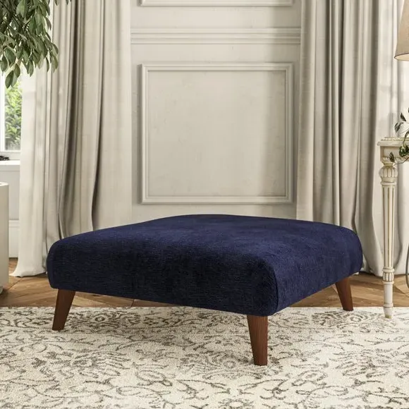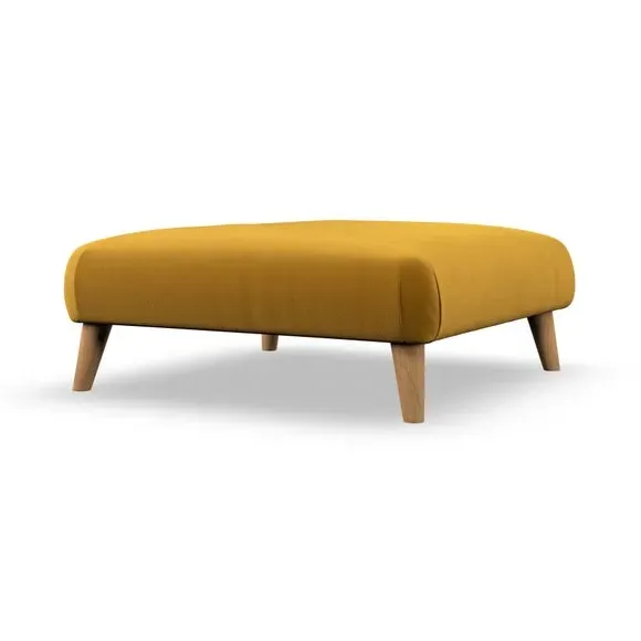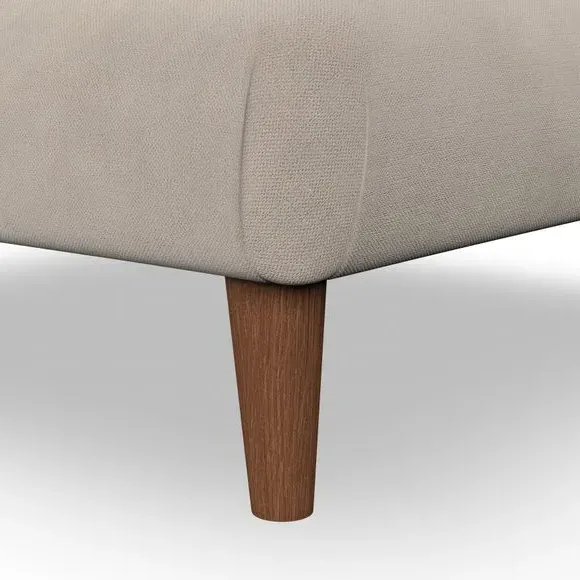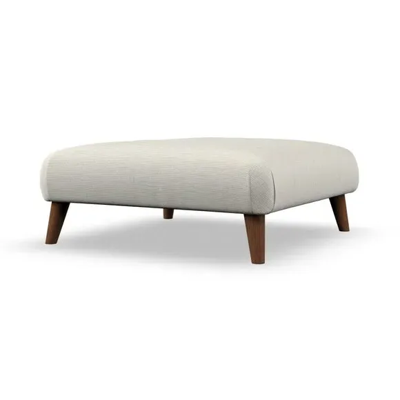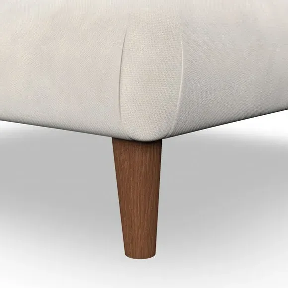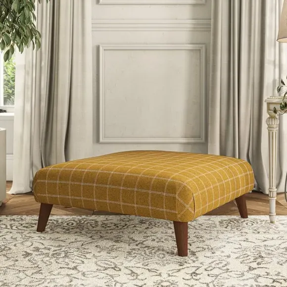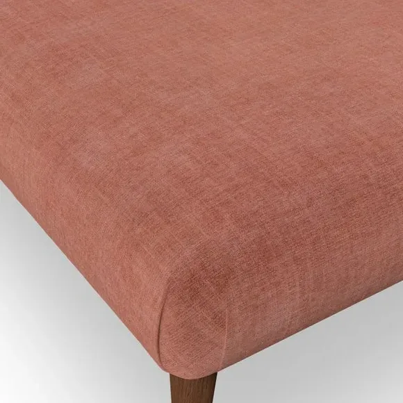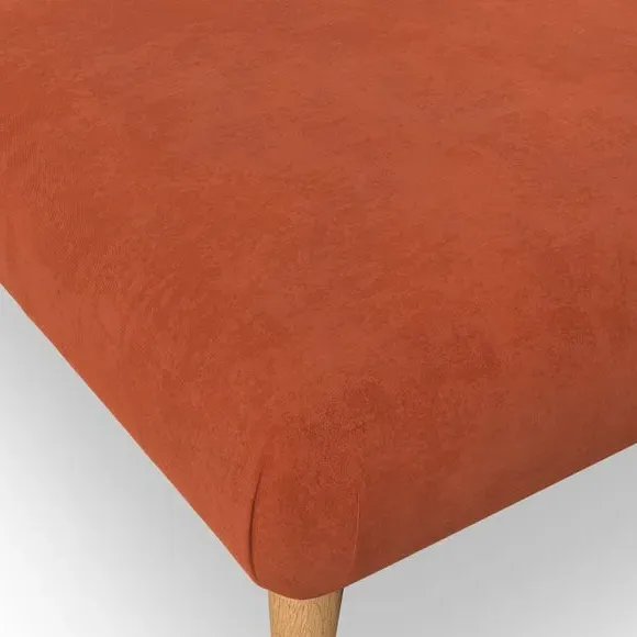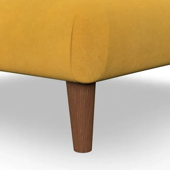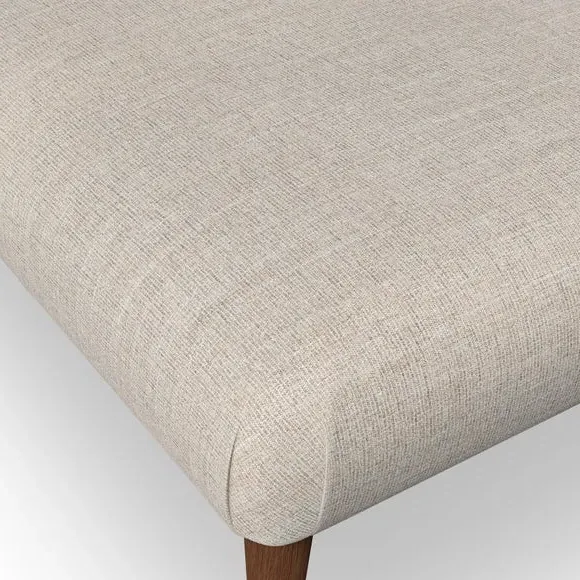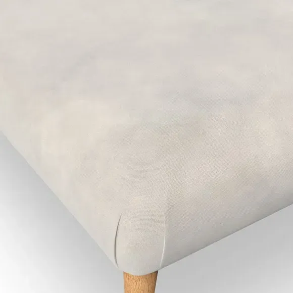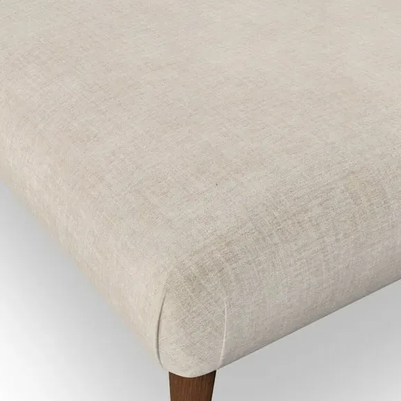 The footstool offers customisable comfort with its plush cushion top that can be tailored with your choice of fabric and colour. Its sturdy base provides lasting durability, while the turned hardwood legs add sophistication with two available finishes. The versatile design serves as both a footrest and extra seating, and the made-to-order construction ensures quality craftsmanship.