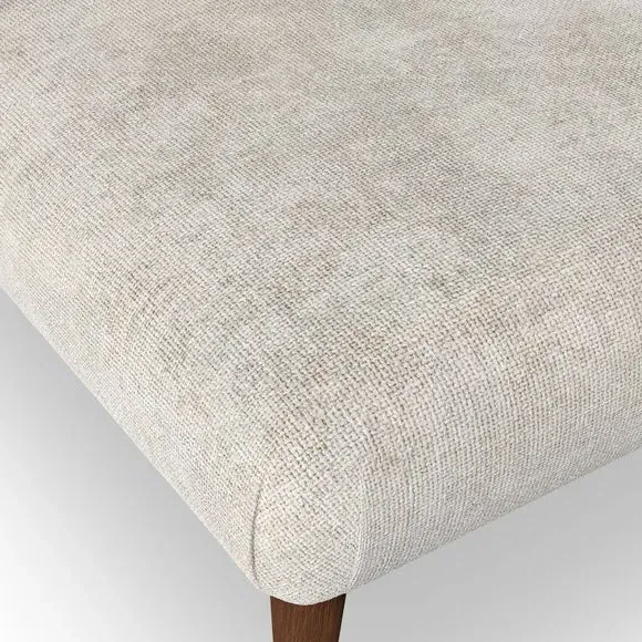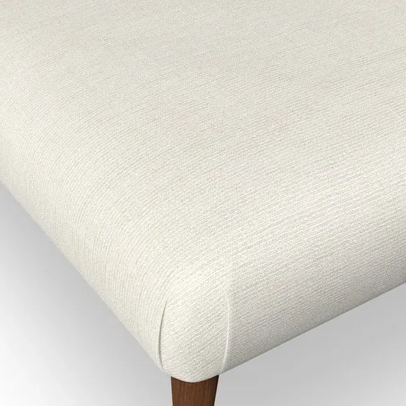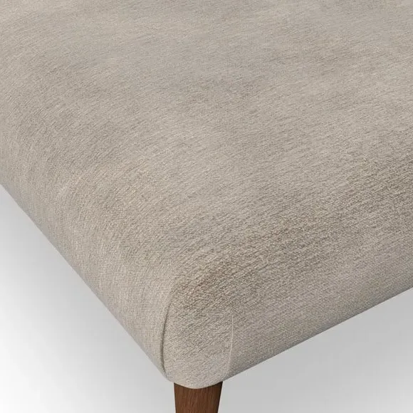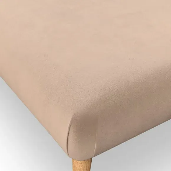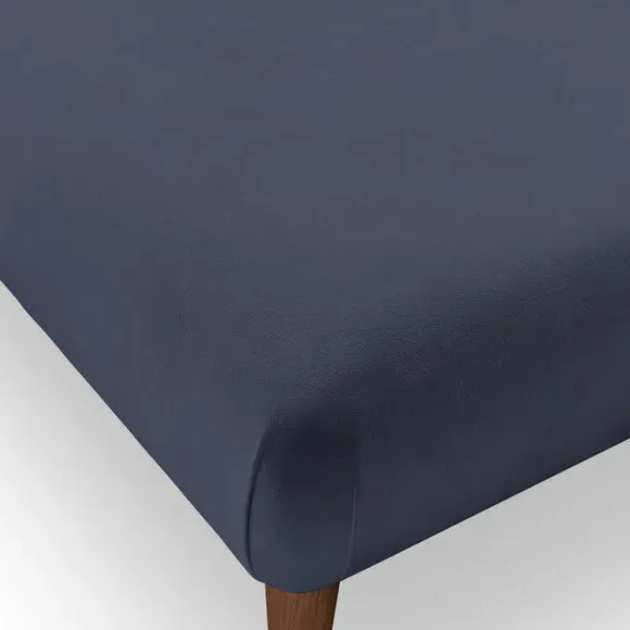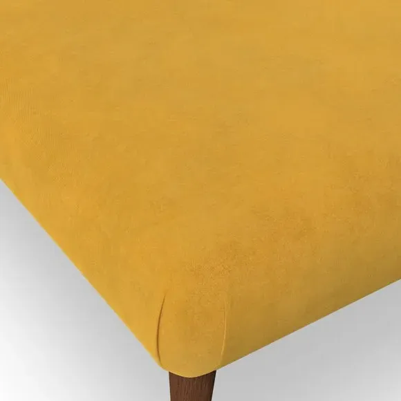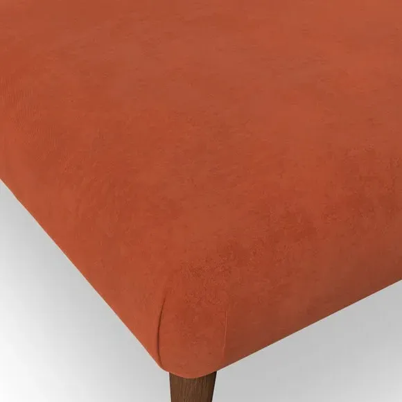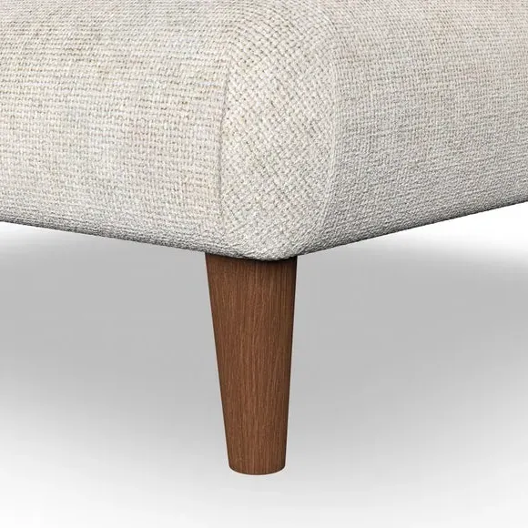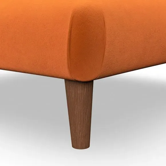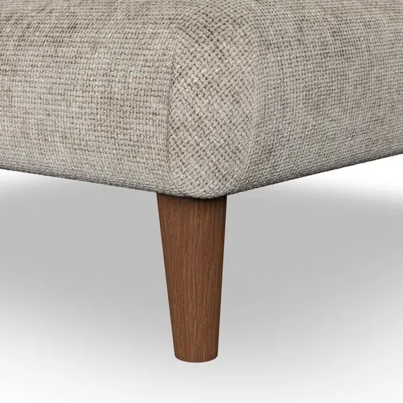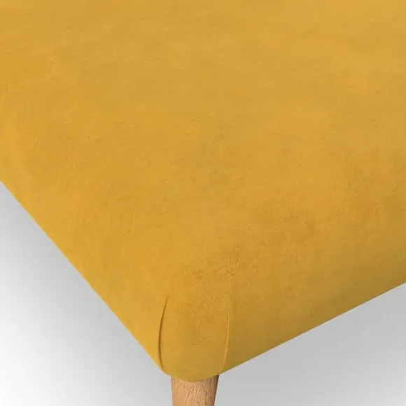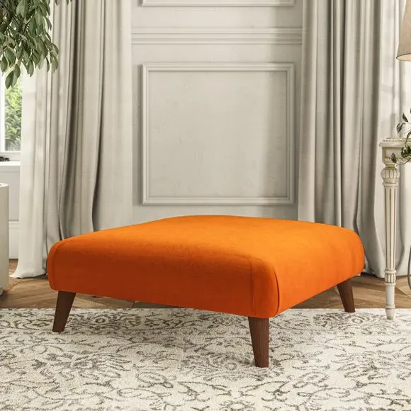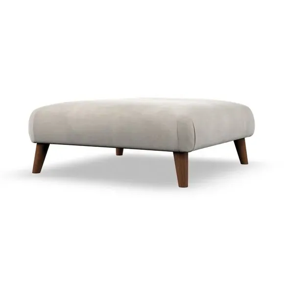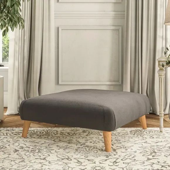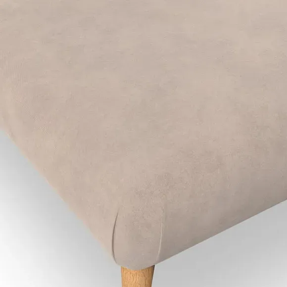 The footstool offers customisable comfort with its plush cushion top that can be tailored with your choice of fabric and colour. Its sturdy base provides lasting durability, while the turned hardwood legs add sophistication with two available finishes. The versatile design serves as both a footrest and extra seating, and the made-to-order construction ensures quality craftsmanship.
